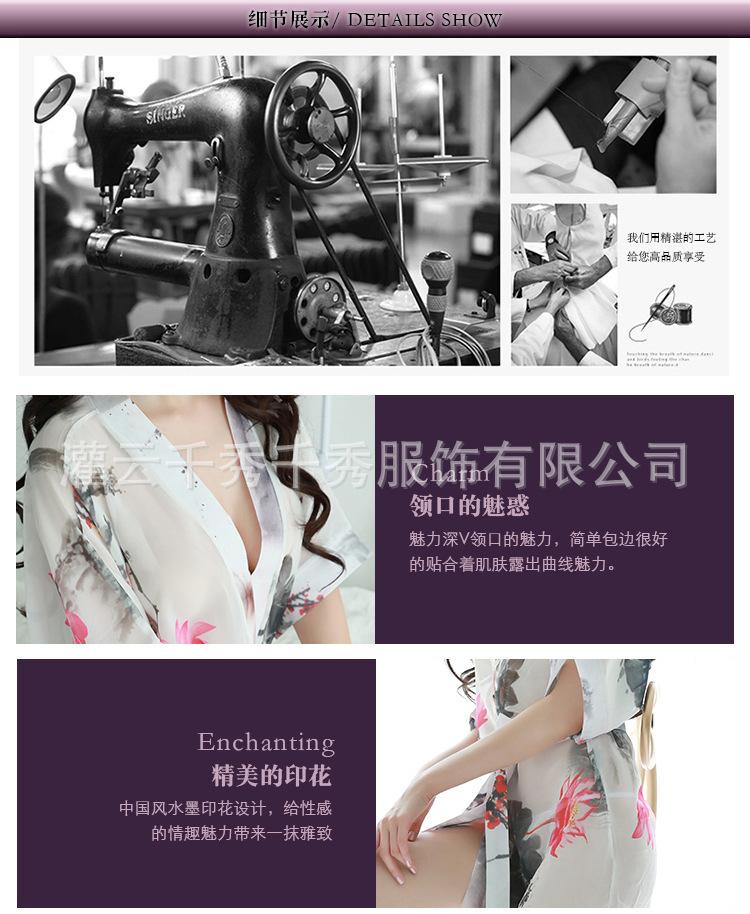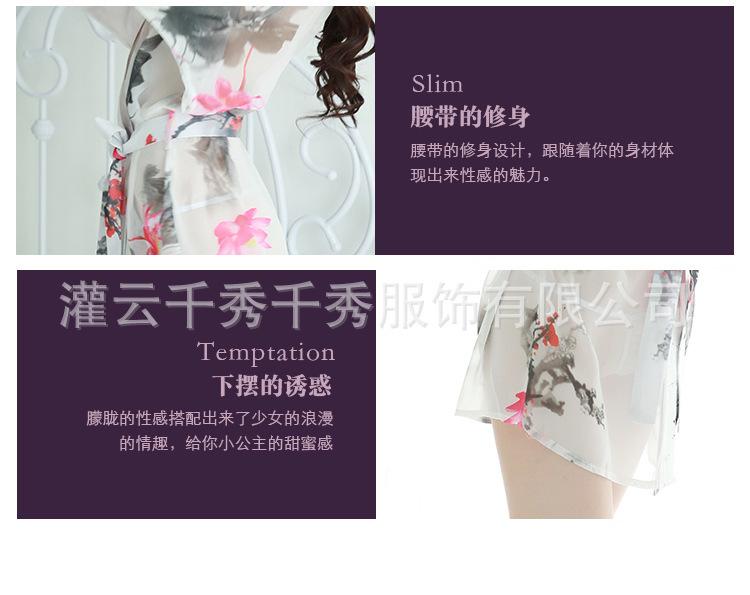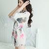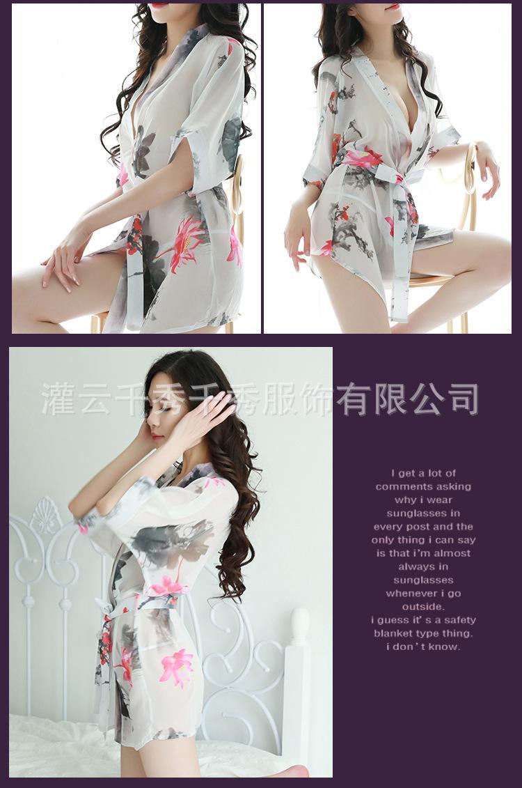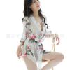 Lencería Sexy para Mujer Transparente Estampado Color Contrastante Bata Exterior Camisón Tentación Sexy Bata Cárdigan de Chifón Kimono para Mujer 1477