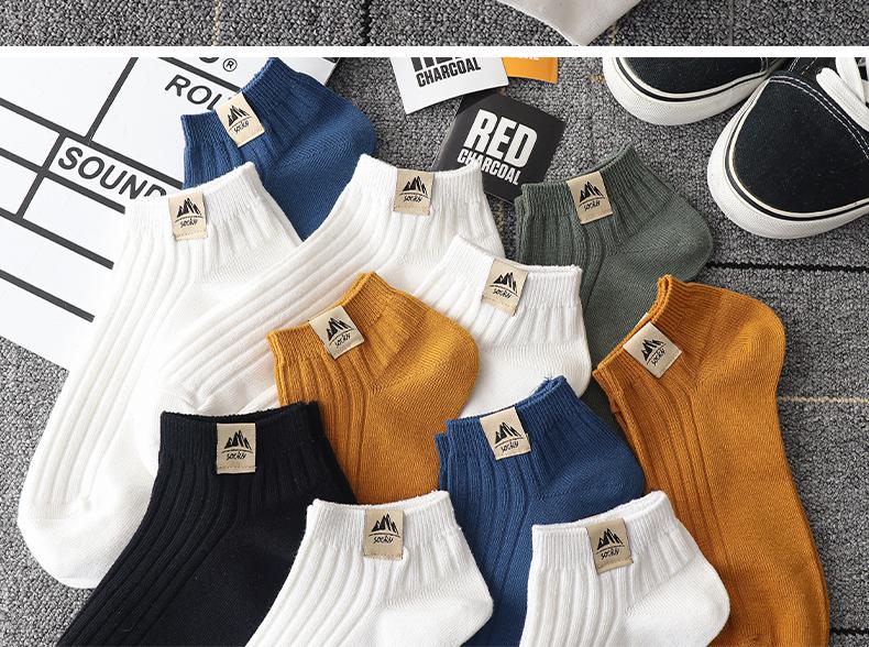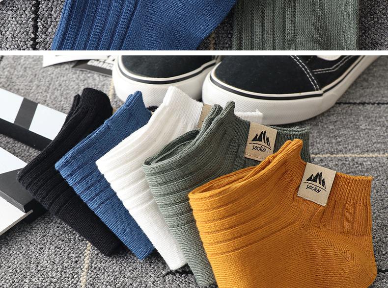 Calcetines Cortos para Hombre, Estilo Otoñal, Color Sólido, Rayas Verticales, Versátiles, Absorbentes del Sudor, Transpirables, Calcetines Deportivos de Corte Bajo, Calcetines Invisibles para Hombre