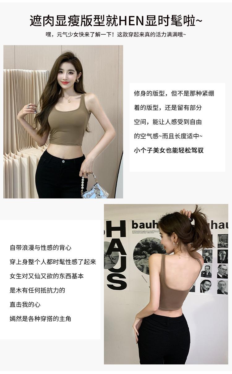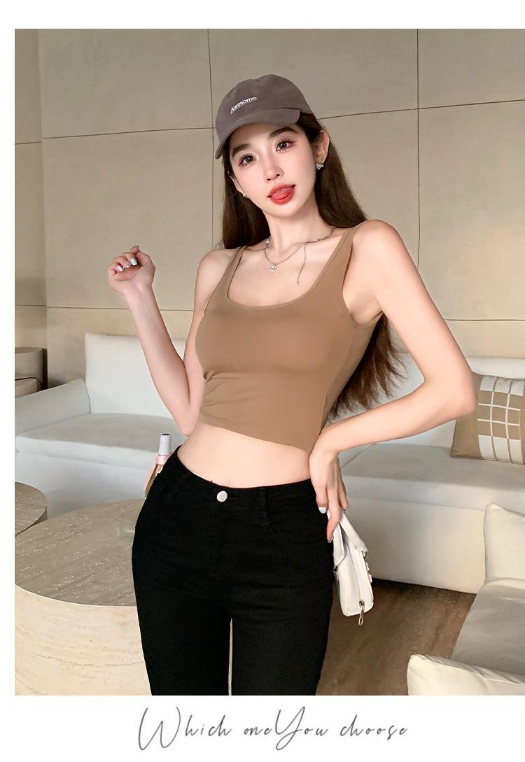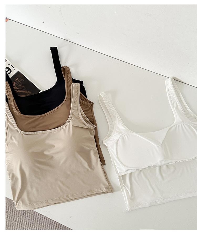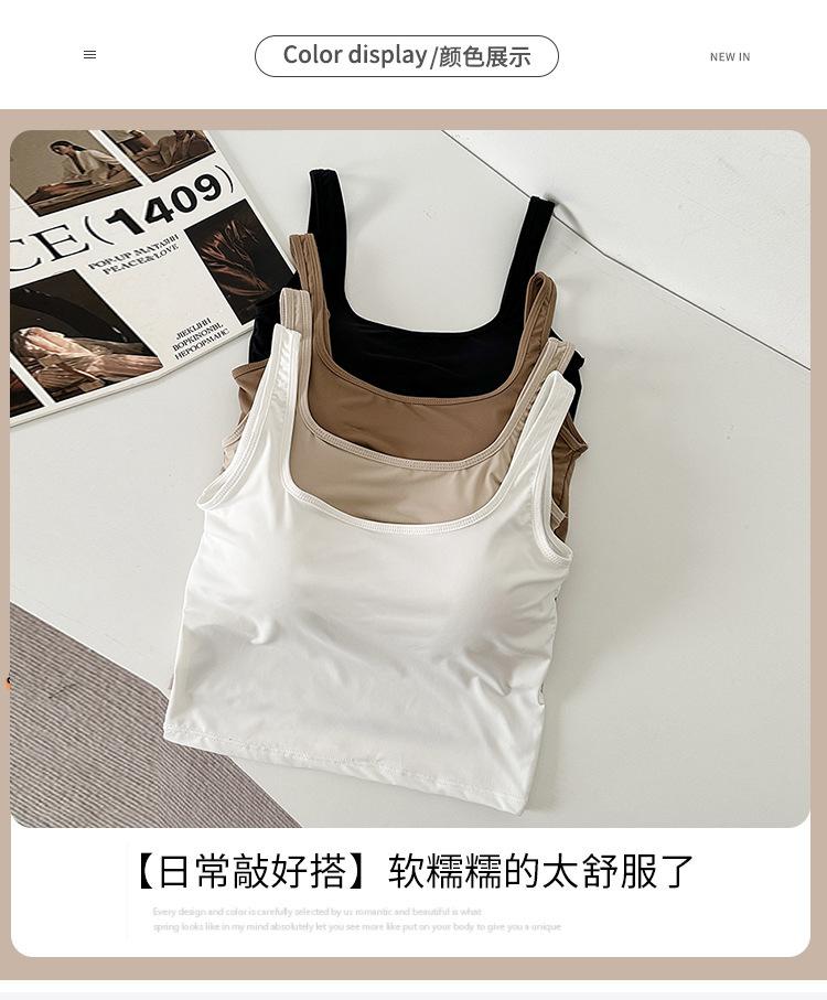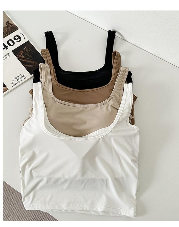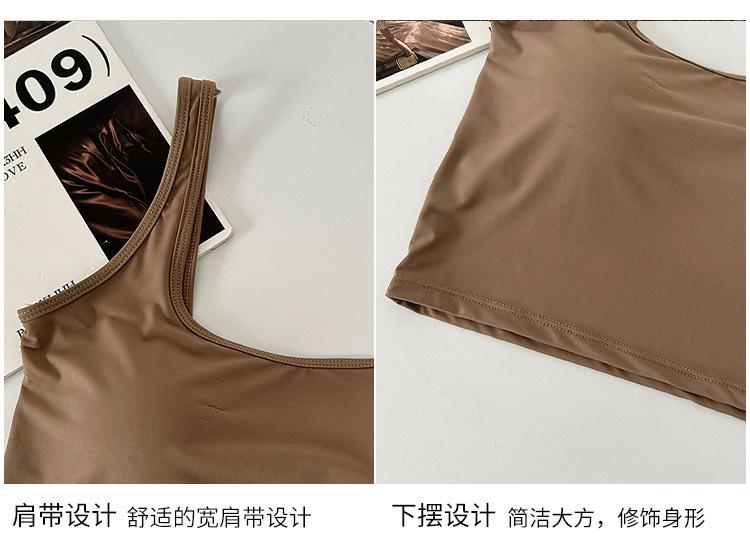 Nuevo Chaleco Sling Fresco de Seda de Hielo Sin Costuras Cinturón Almohadilla para el Pecho Tirante Ancho de Hombro Color Sólido Top Tubo Interior Hermosa Espalda Top de Uso Exterior