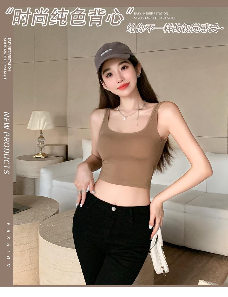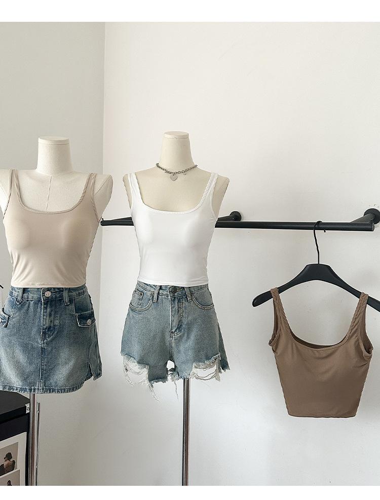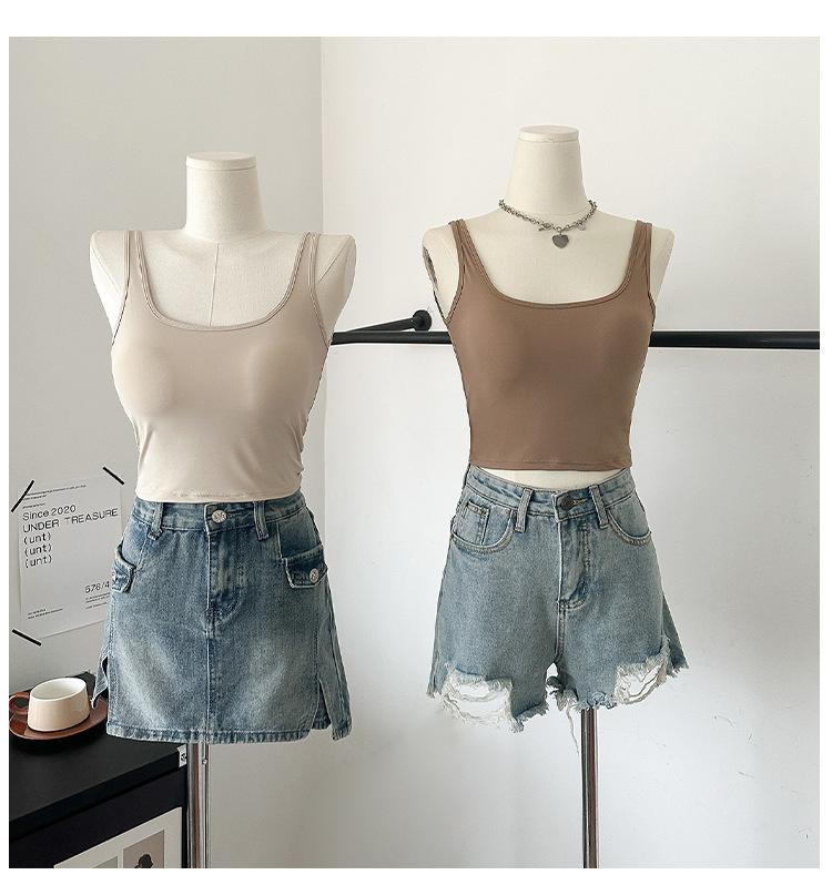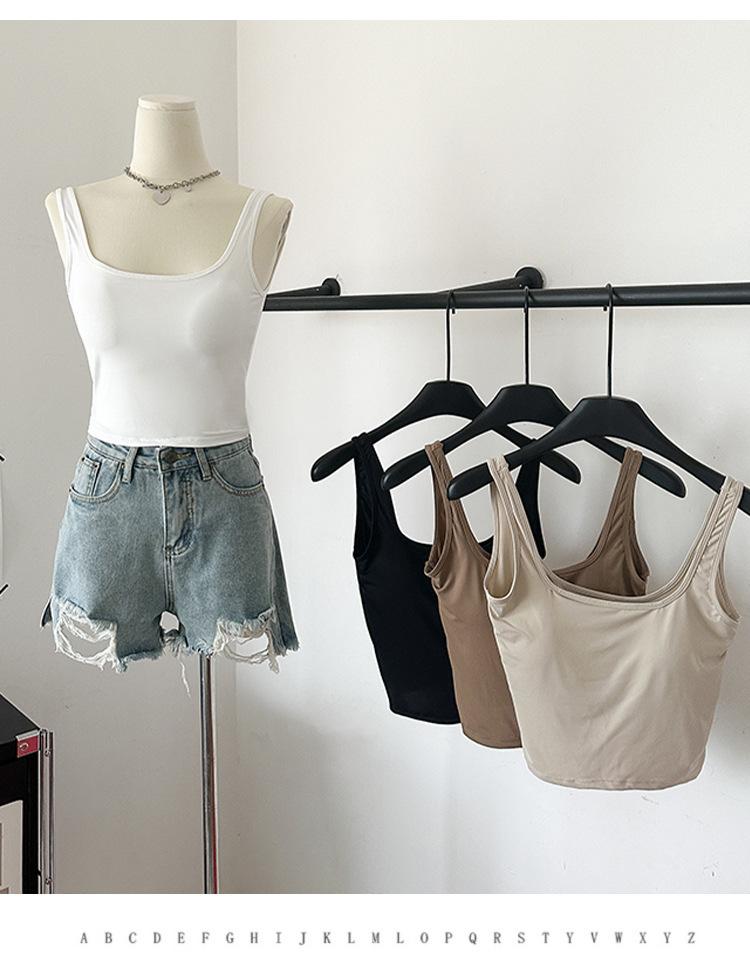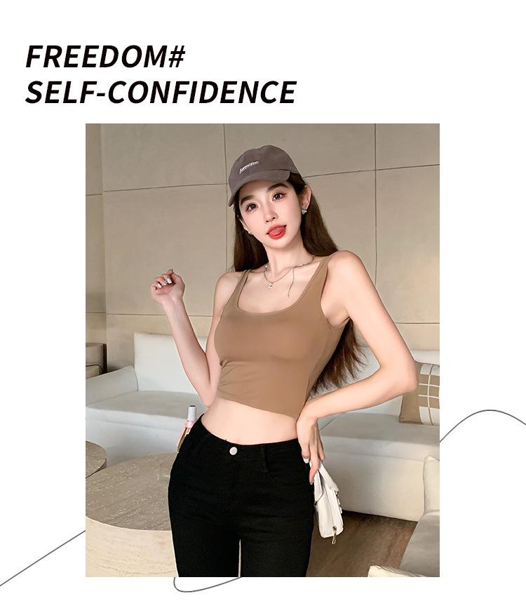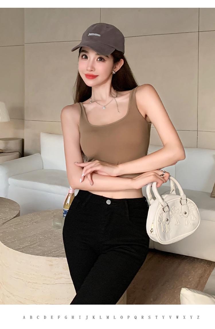 Nuevo Chaleco Sling Fresco de Seda de Hielo Sin Costuras Cinturón Almohadilla para el Pecho Tirante Ancho de Hombro Color Sólido Top Tubo Interior Hermosa Espalda Top de Uso Exterior