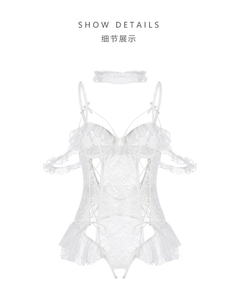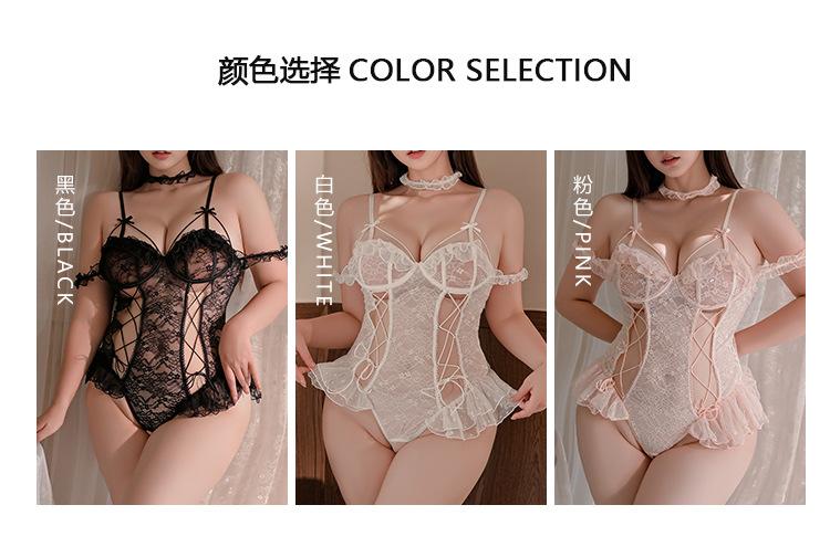 Compra Lencería Sexy Rosa Talla Grande Dulce Encaje Transparente Apasionado Caliente Espalda Descubierta Sexy Traje Uniforme de Una Pieza 2390 al por mayor en Joom.pro