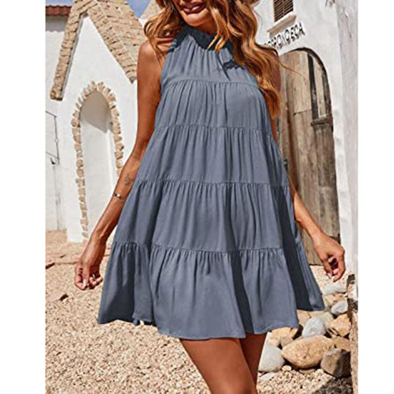 Vestido holgado sin mangas con cuello redondo y volantes, plisado y holgado, para primavera y verano, de Amazon, Europa y América, 2022