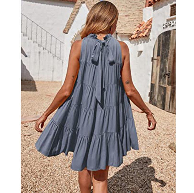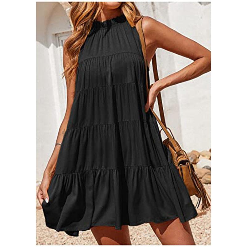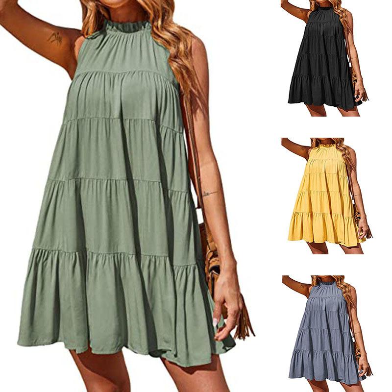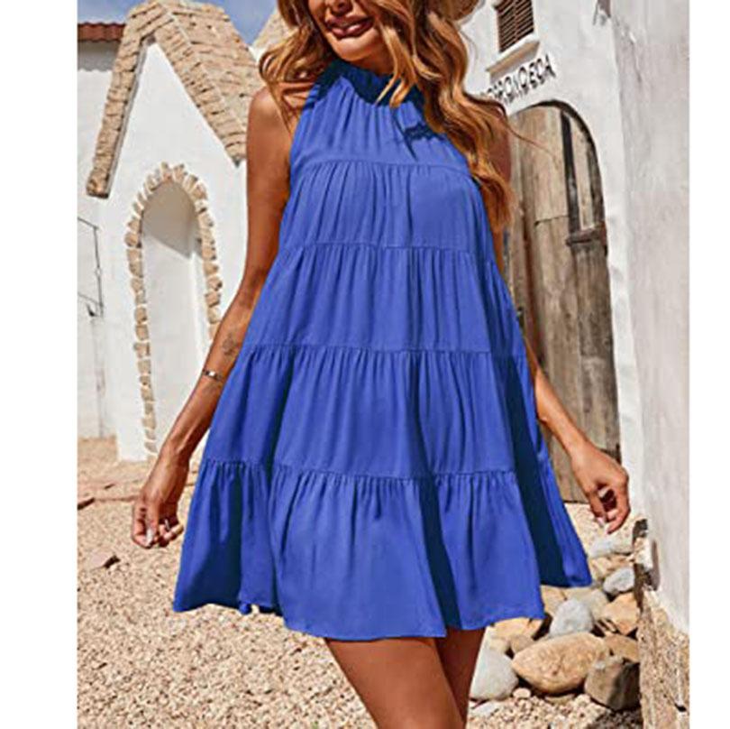 Compra Vestido holgado sin mangas con cuello redondo y volantes, plisado y holgado, para primavera y verano, de Amazon, Europa y América, 2022 al por mayor en Joom.pro