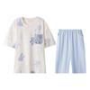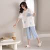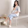 Pijamas de Verano para Mujer 100% Algodón Verano Manga Corta Pantalón Capri Traje de Ropa Dulce para el Hogar de Algodón para Mujer Ropa Exterior