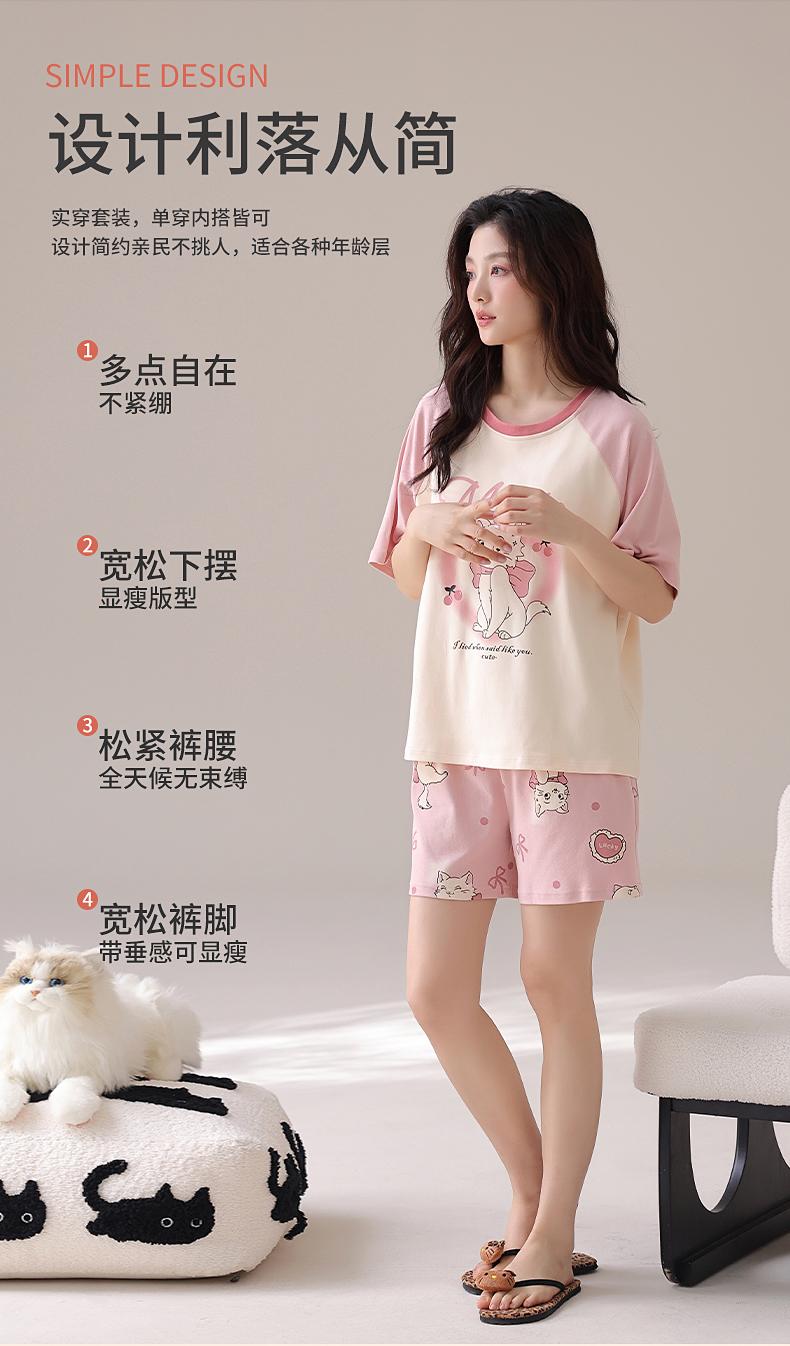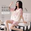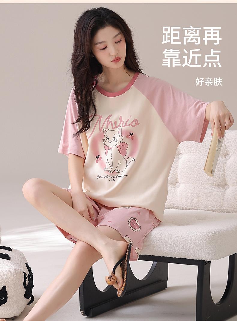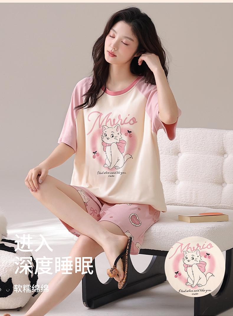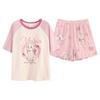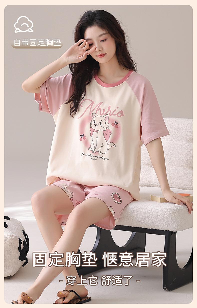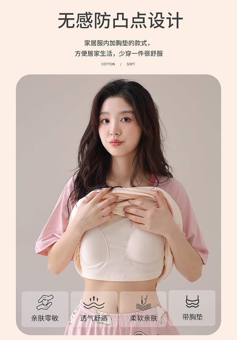 [Algodón Puro] Pijama de Verano para Mujer de Verano de Manga Corta con Shorts y Almohadilla en el Pecho Traje Talla Grande Ropa para el Hogar Dibujos Animados Casual