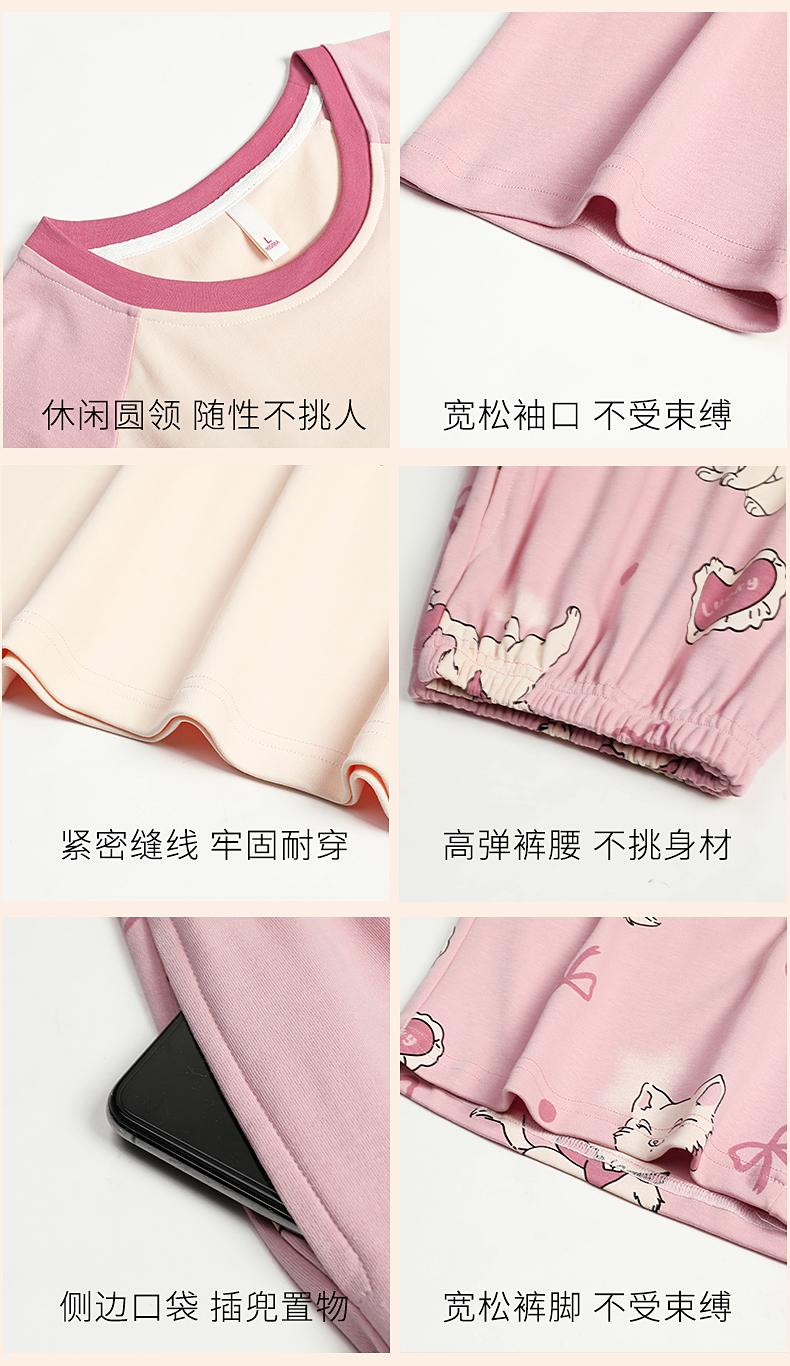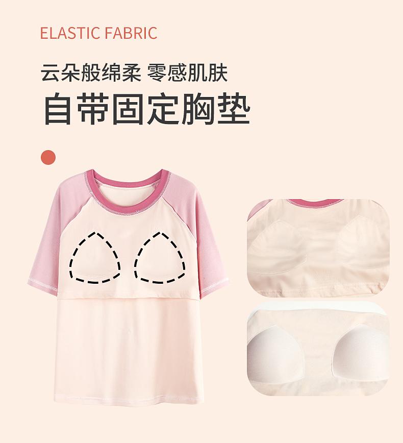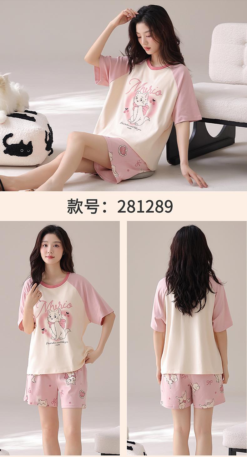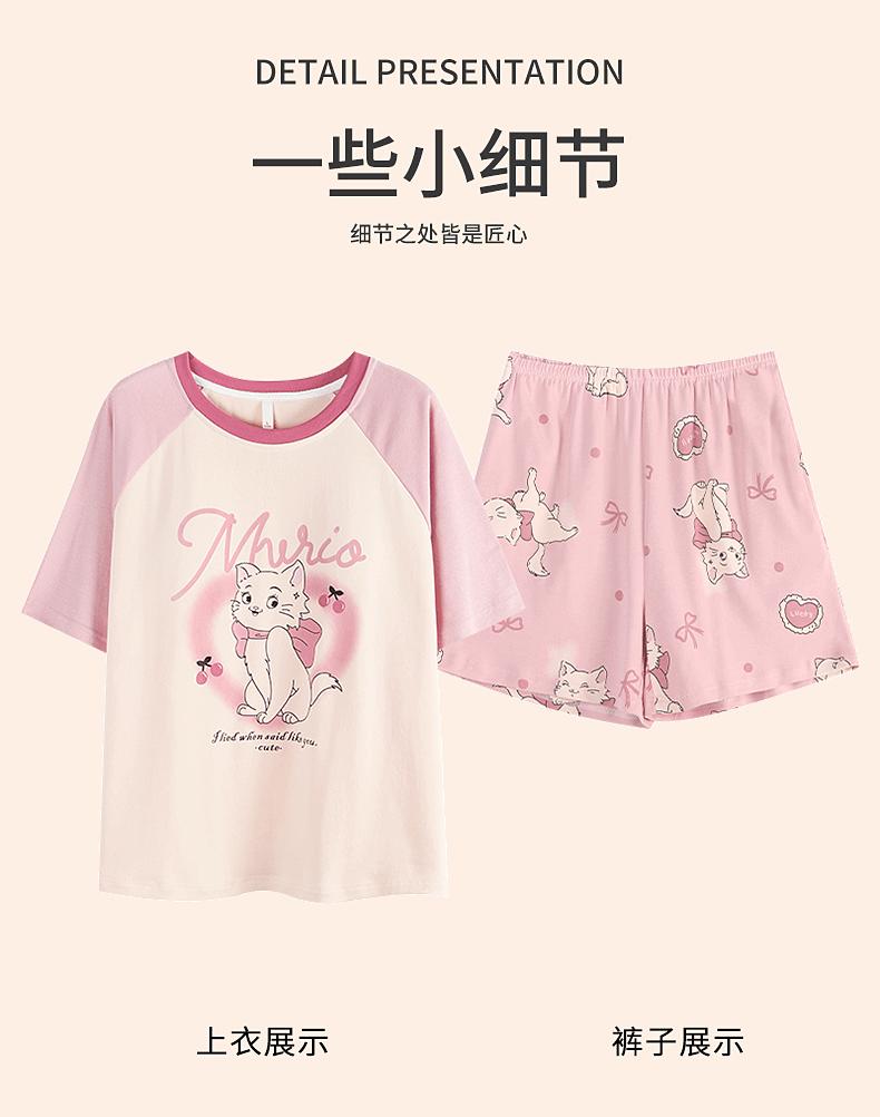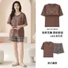 [Algodón Puro] Pijama de Verano para Mujer de Verano de Manga Corta con Shorts y Almohadilla en el Pecho Traje Talla Grande Ropa para el Hogar Dibujos Animados Casual