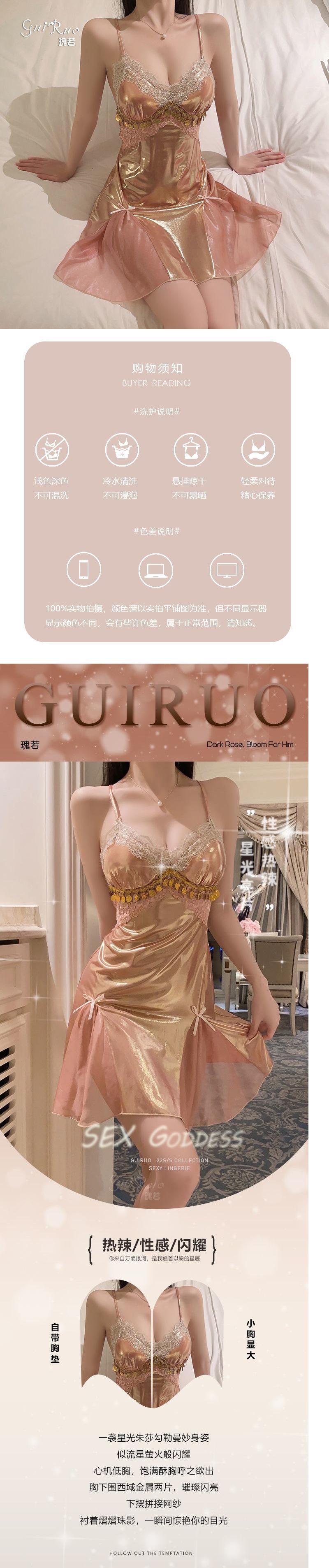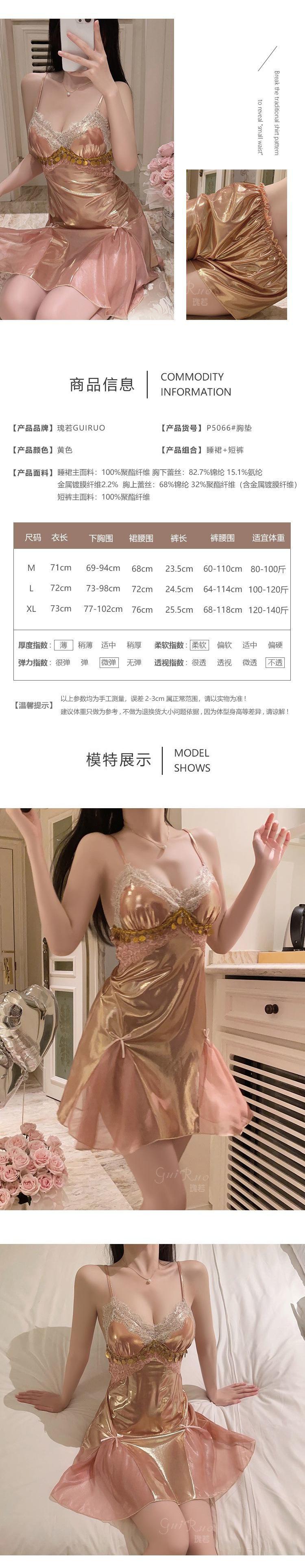 Pijama Sexy y Elegante de Nuevo Estilo, Tirantes Tentadores, Encaje sin Espalda Estilo Club Nocturno Camisón de Seda Helada, Cita Ropa para el Hogar