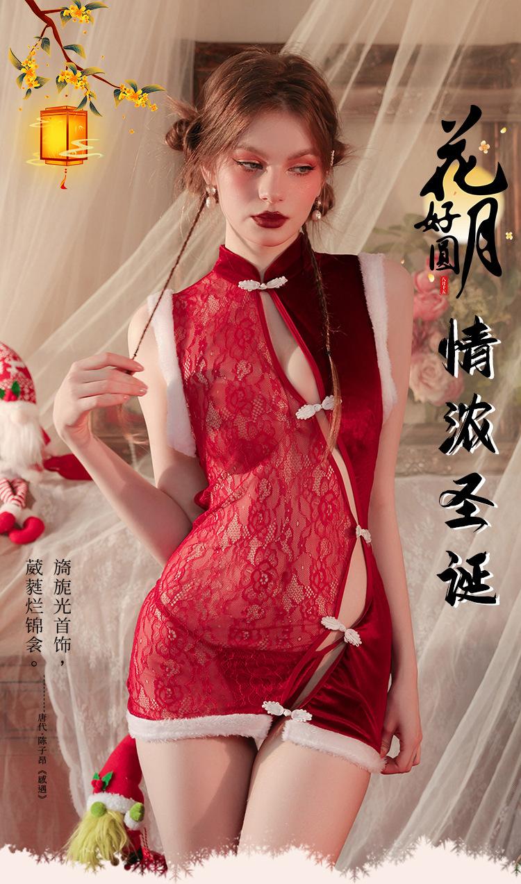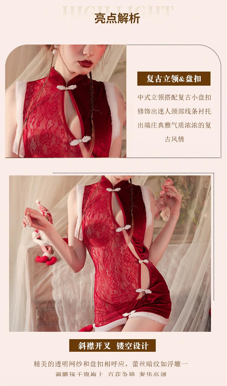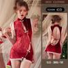Lencería Sexy Traje Navideño para Mujer Cheongsam Retro Uniforme de Mujer Tentación Sexy Espalda Descubierta Sin Quitar Pasión Traje 5209