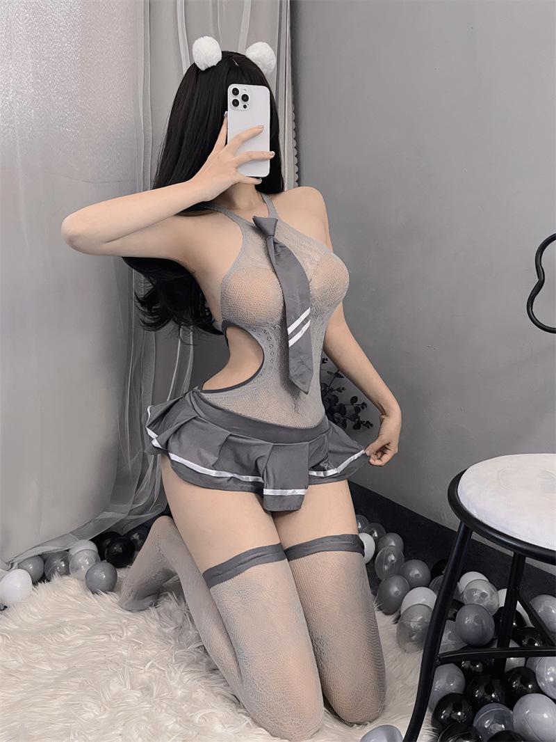 Compra Lencería Sexy Dulce Traje de Colegiala Estudiante Uniforme Hueco Medias de Seda Tentación Vestido de Malla de Una Pieza para Mujeres al por mayor en Joom.pro
