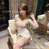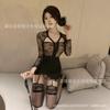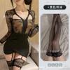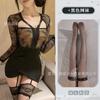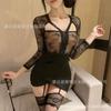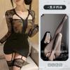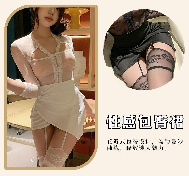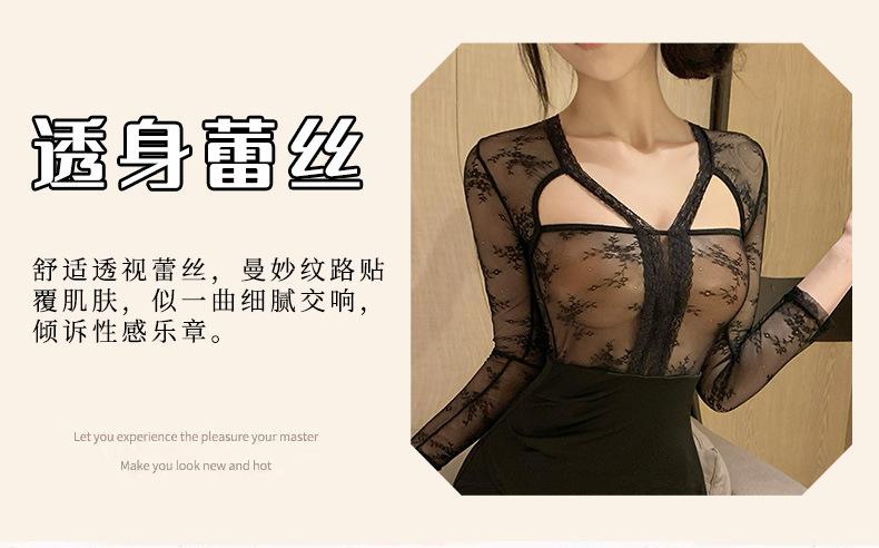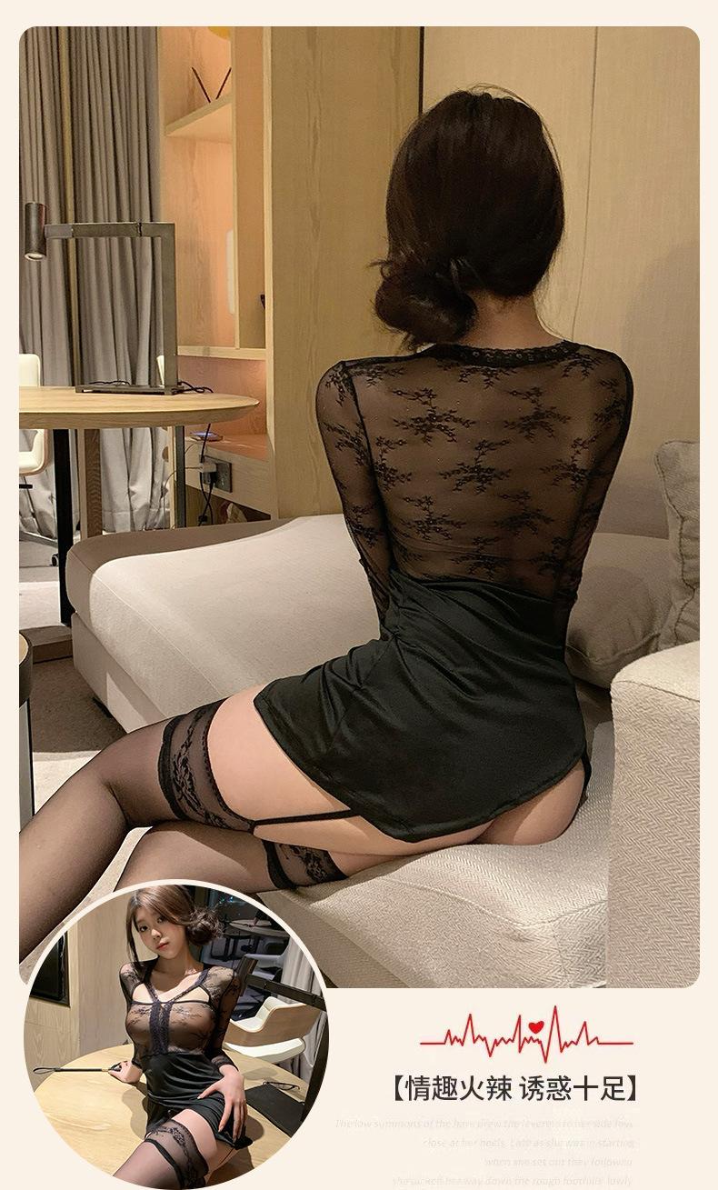 Sexy Transparente Hueco Manga Larga Look Adelgazante Falda Ajustada a la Cadera para Niñas con Pajitas, Lencería Sexy Caliente Empalme de Encaje 1488