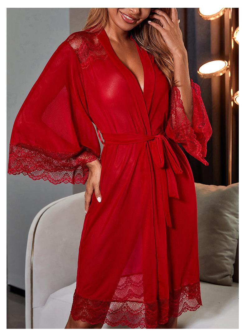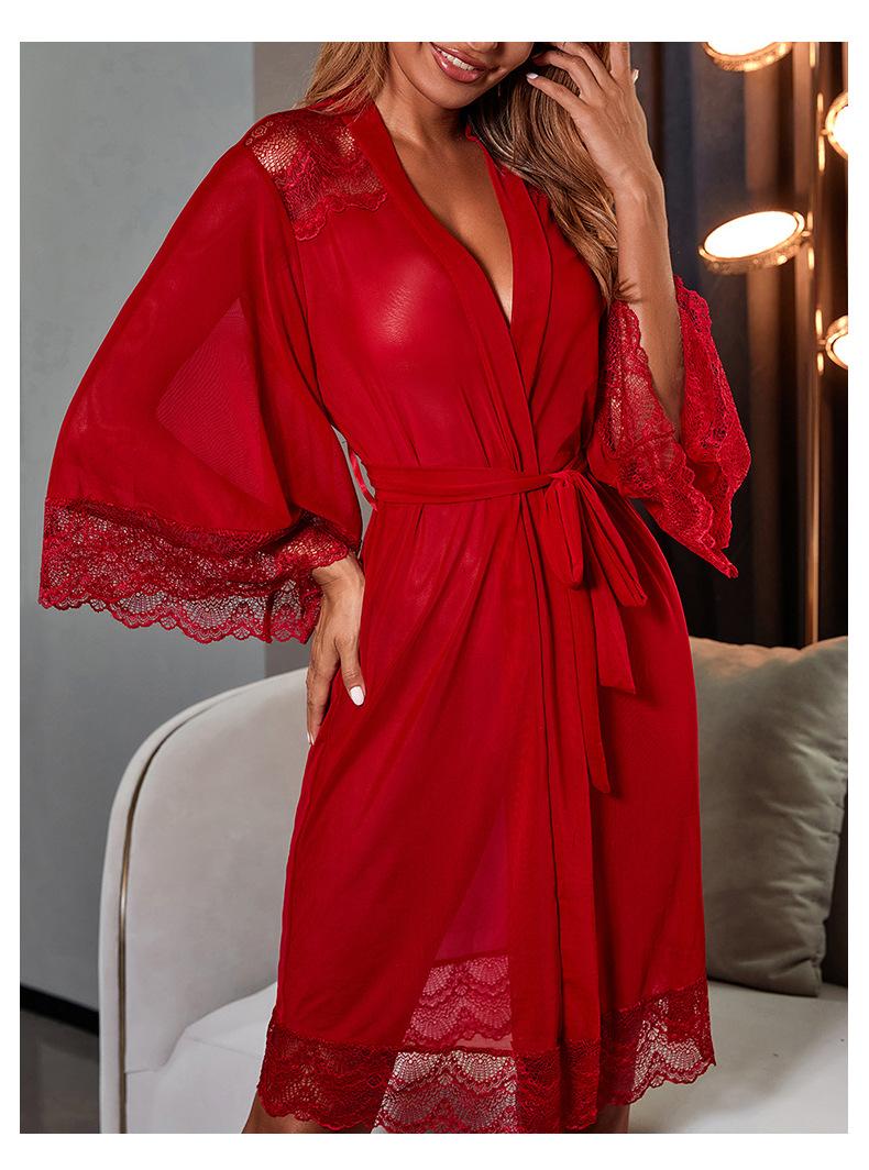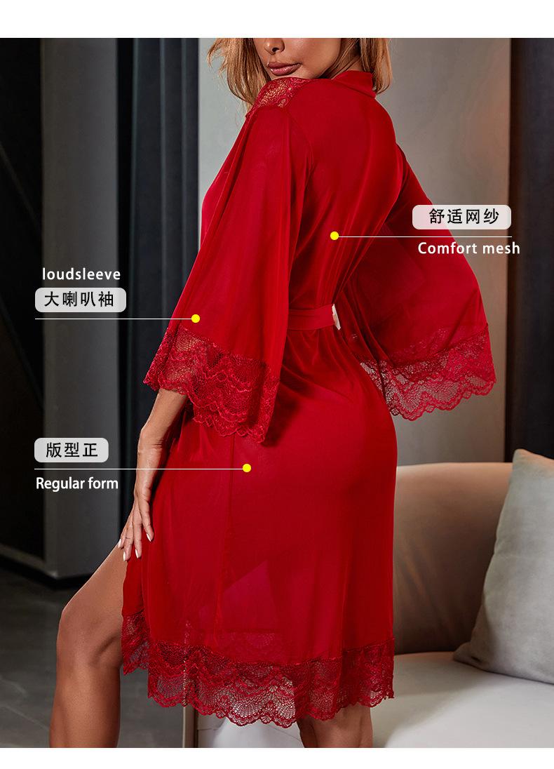 Camisón Nuevo de Malla Transparente para Exportación Transfronteriza Europea y Americana, Lencería Sexy con Encaje Empalmado, Bata Exterior para el Hogar 272