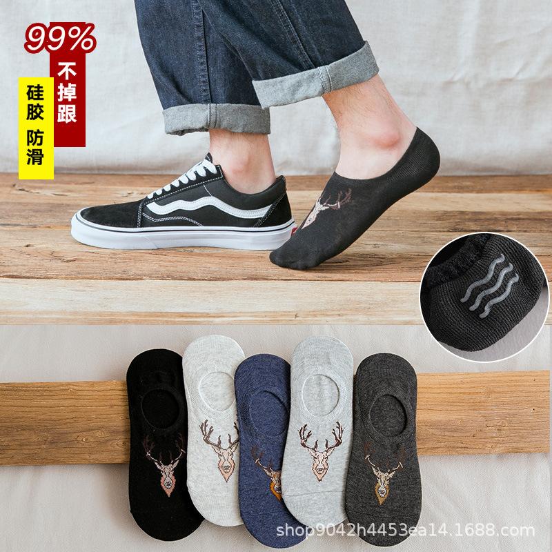 Calcetines de algodón de color sólido para hombre calcetines invisibles transpirables antideslizantes calcetines deportivos de barco de silicona de boca baja calcetines para zapatos Bean venta al por mayor
