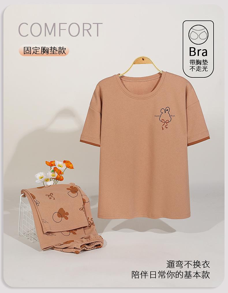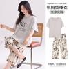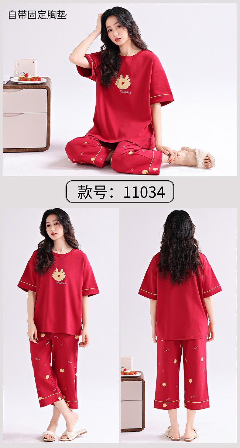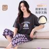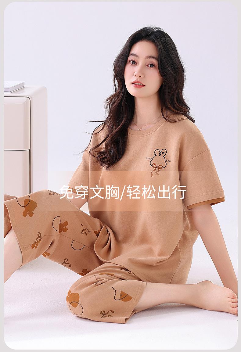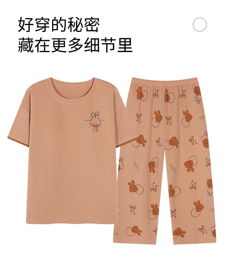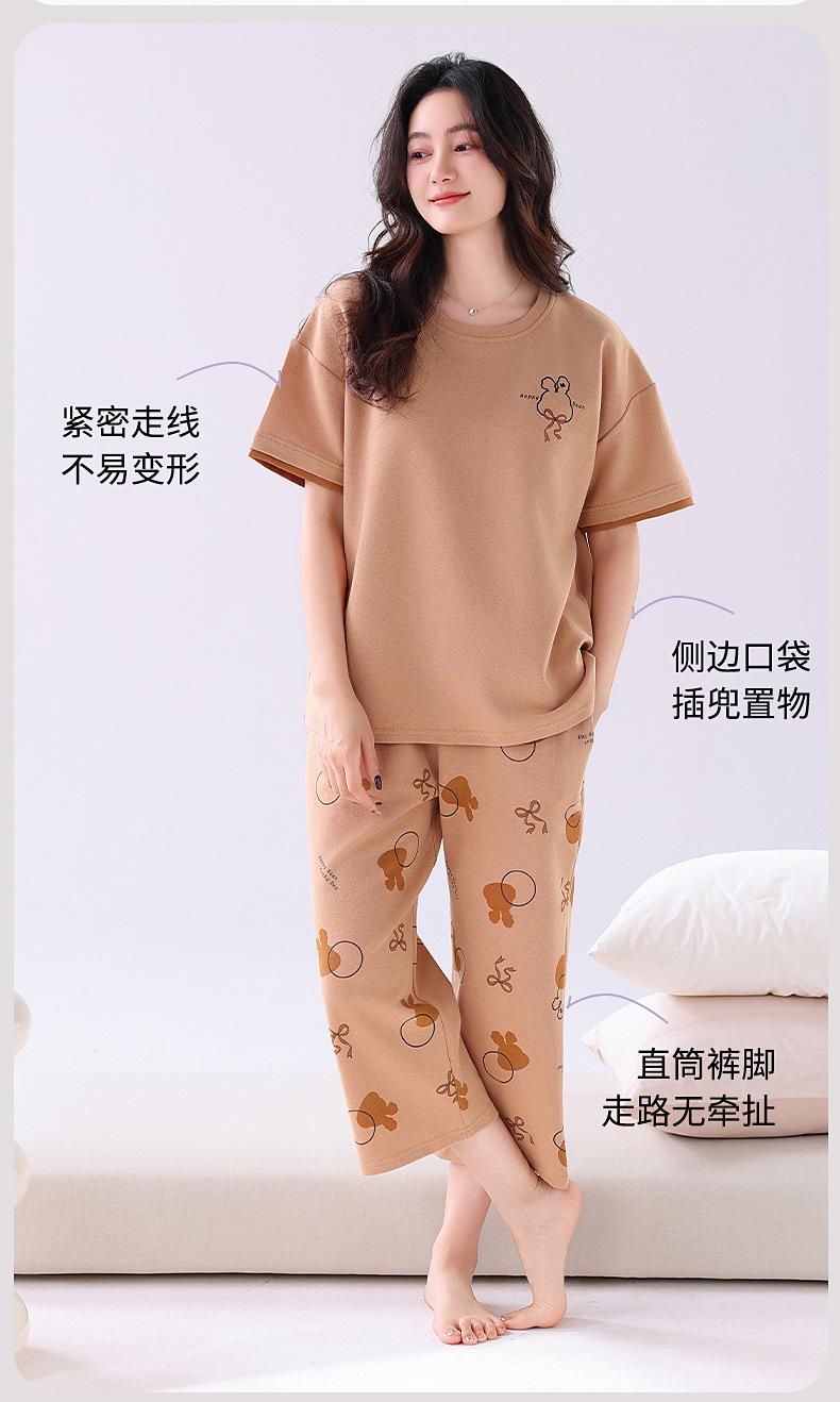 Pijama de Algodón para Mujer Dulce y Cómodo Delgado Suelto Traje Ropa de Casa de Verano Cuello Redondo Manga Corta Pantalones Recortados con Almohadilla en el Pecho