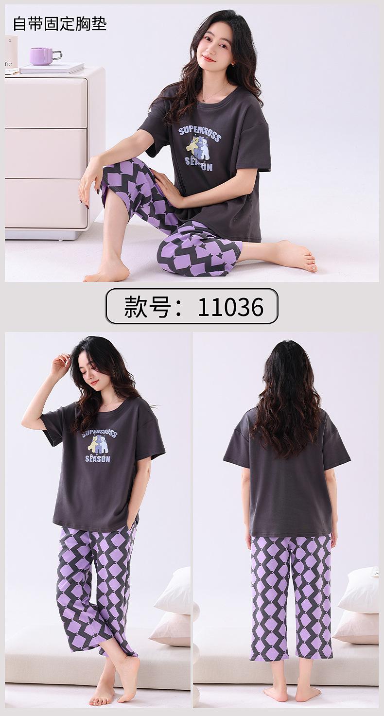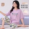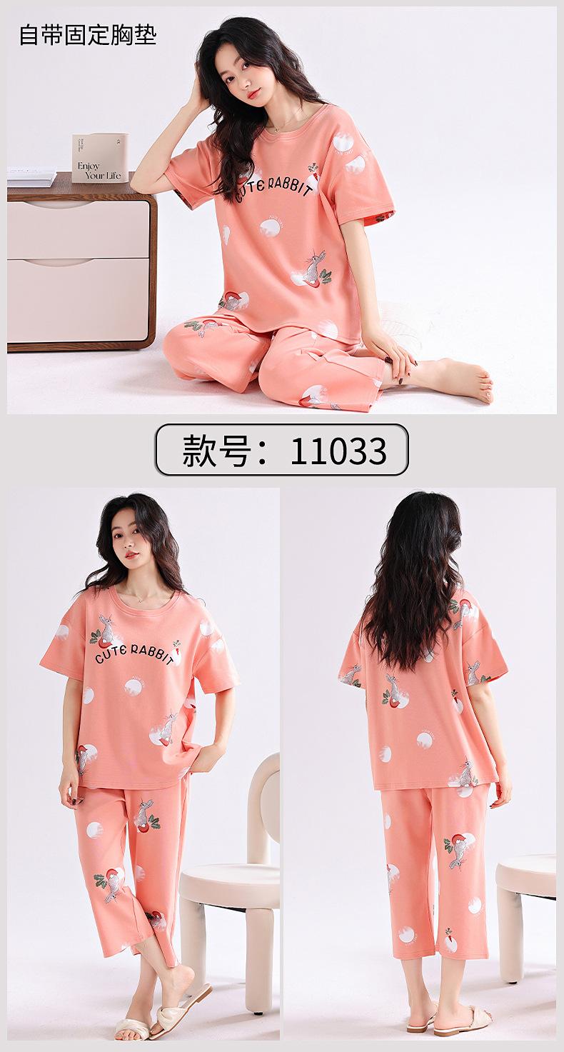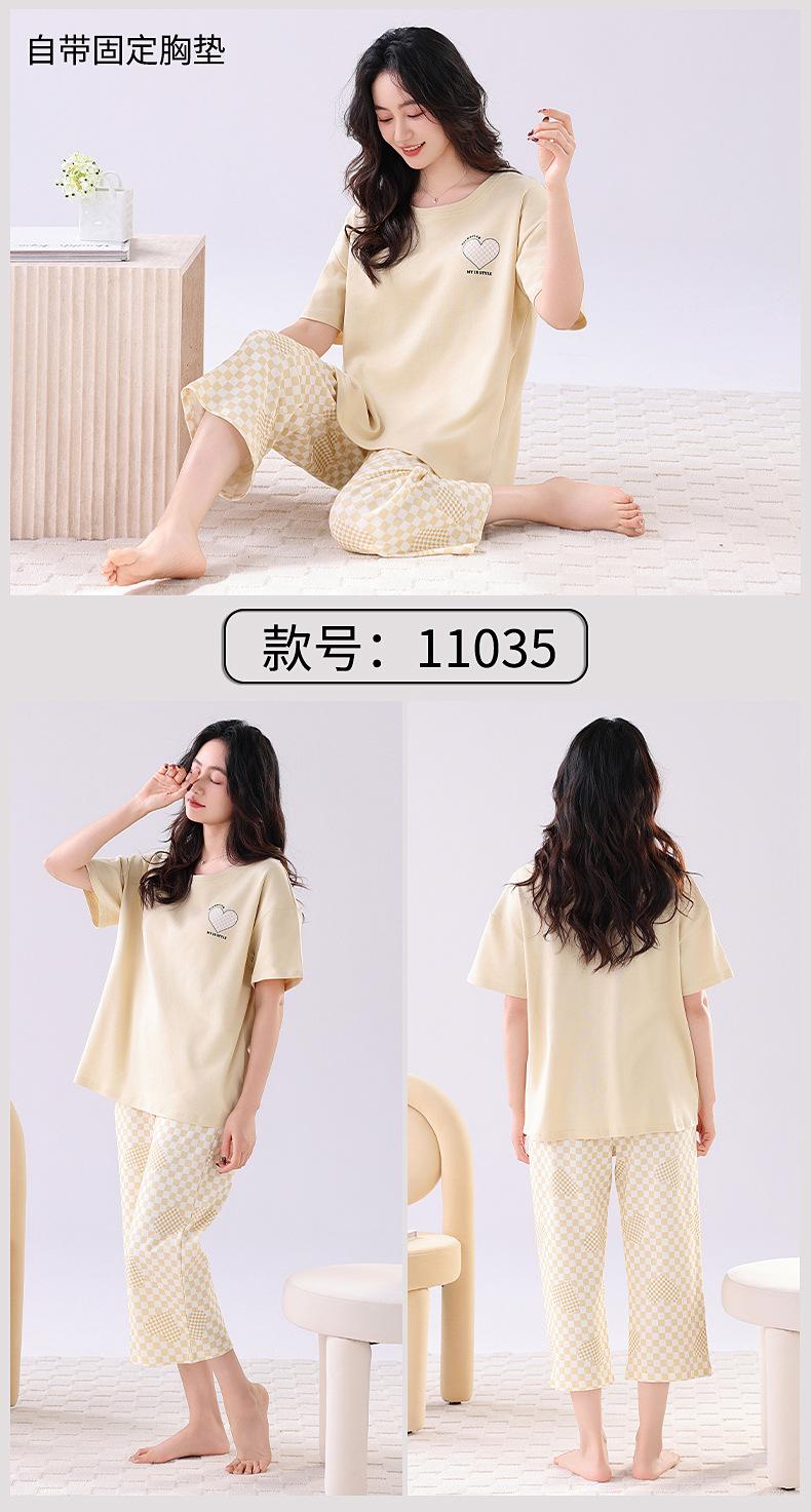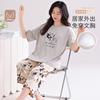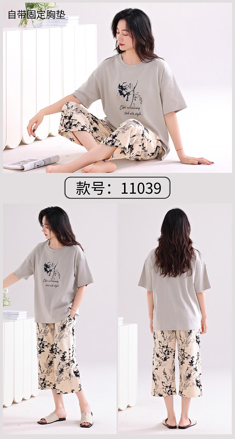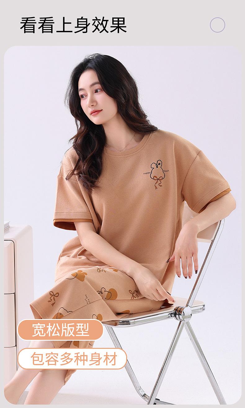 Pijama de Algodón para Mujer Dulce y Cómodo Delgado Suelto Traje Ropa de Casa de Verano Cuello Redondo Manga Corta Pantalones Recortados con Almohadilla en el Pecho