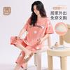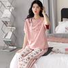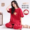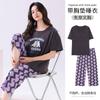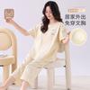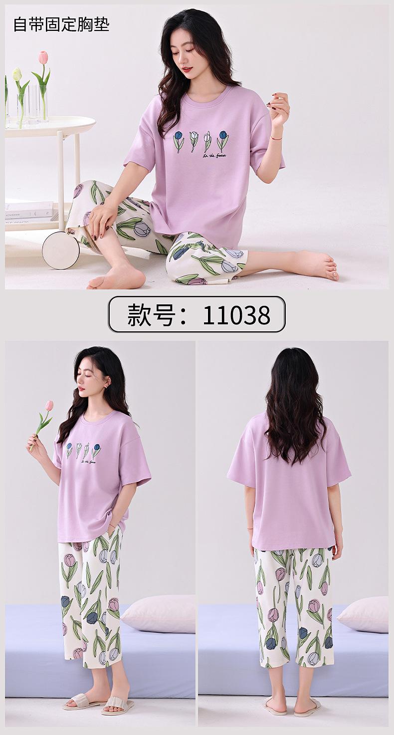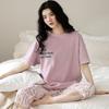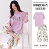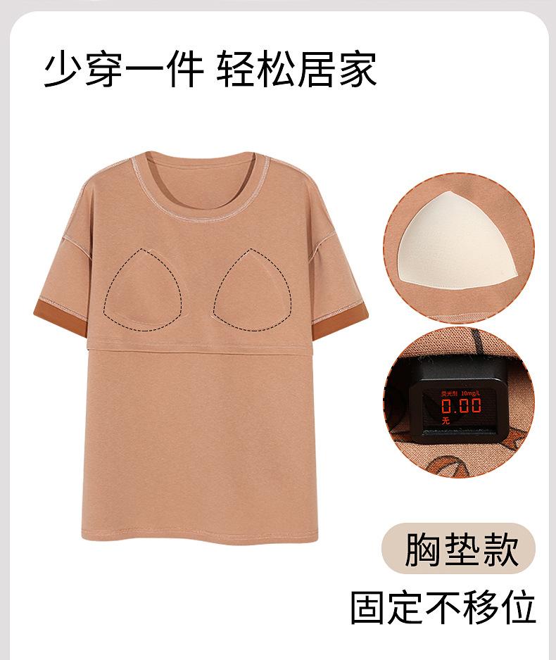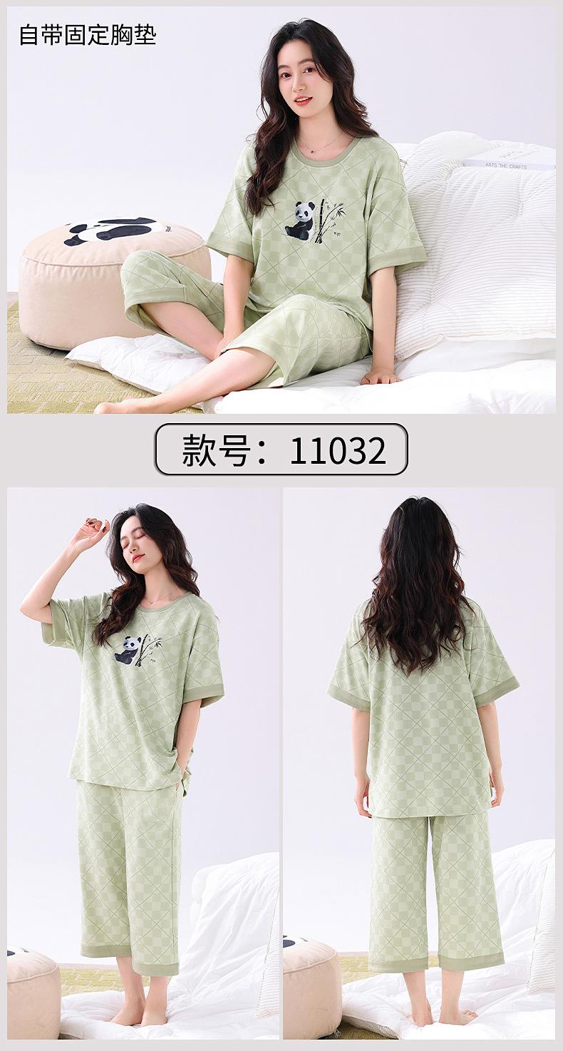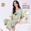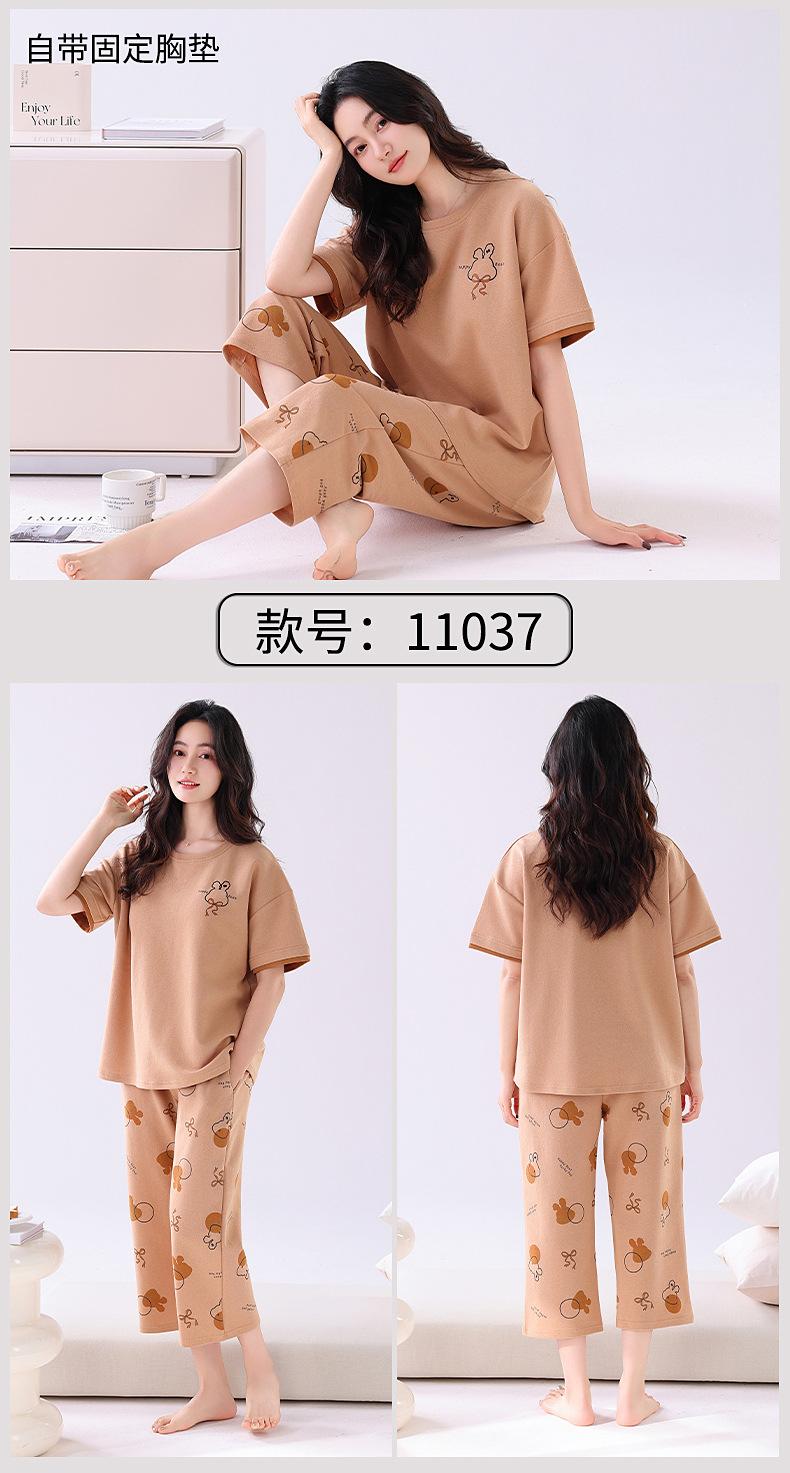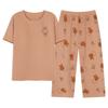 Pijama de Algodón para Mujer Dulce y Cómodo Delgado Suelto Traje Ropa de Casa de Verano Cuello Redondo Manga Corta Pantalones Recortados con Almohadilla en el Pecho