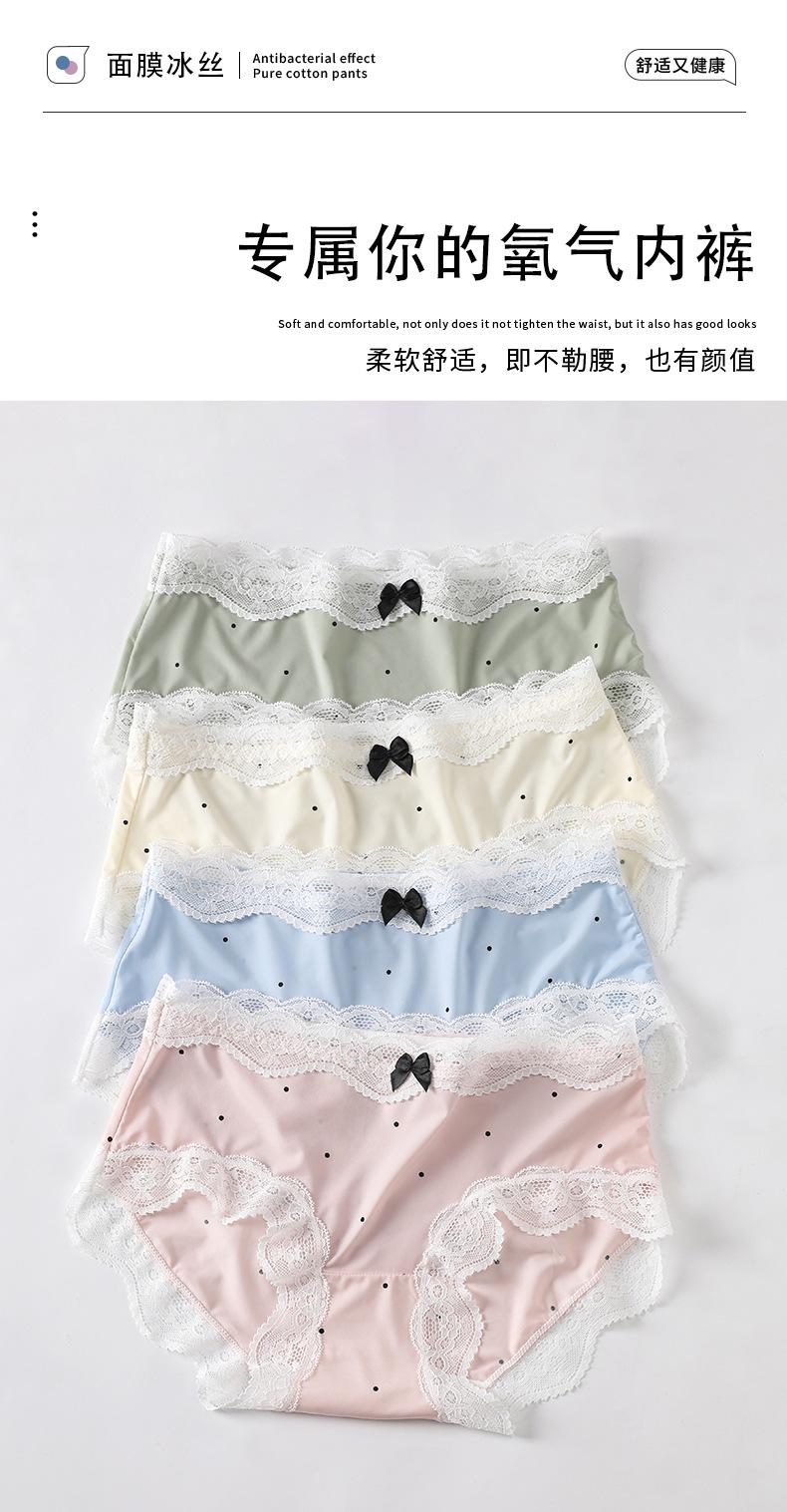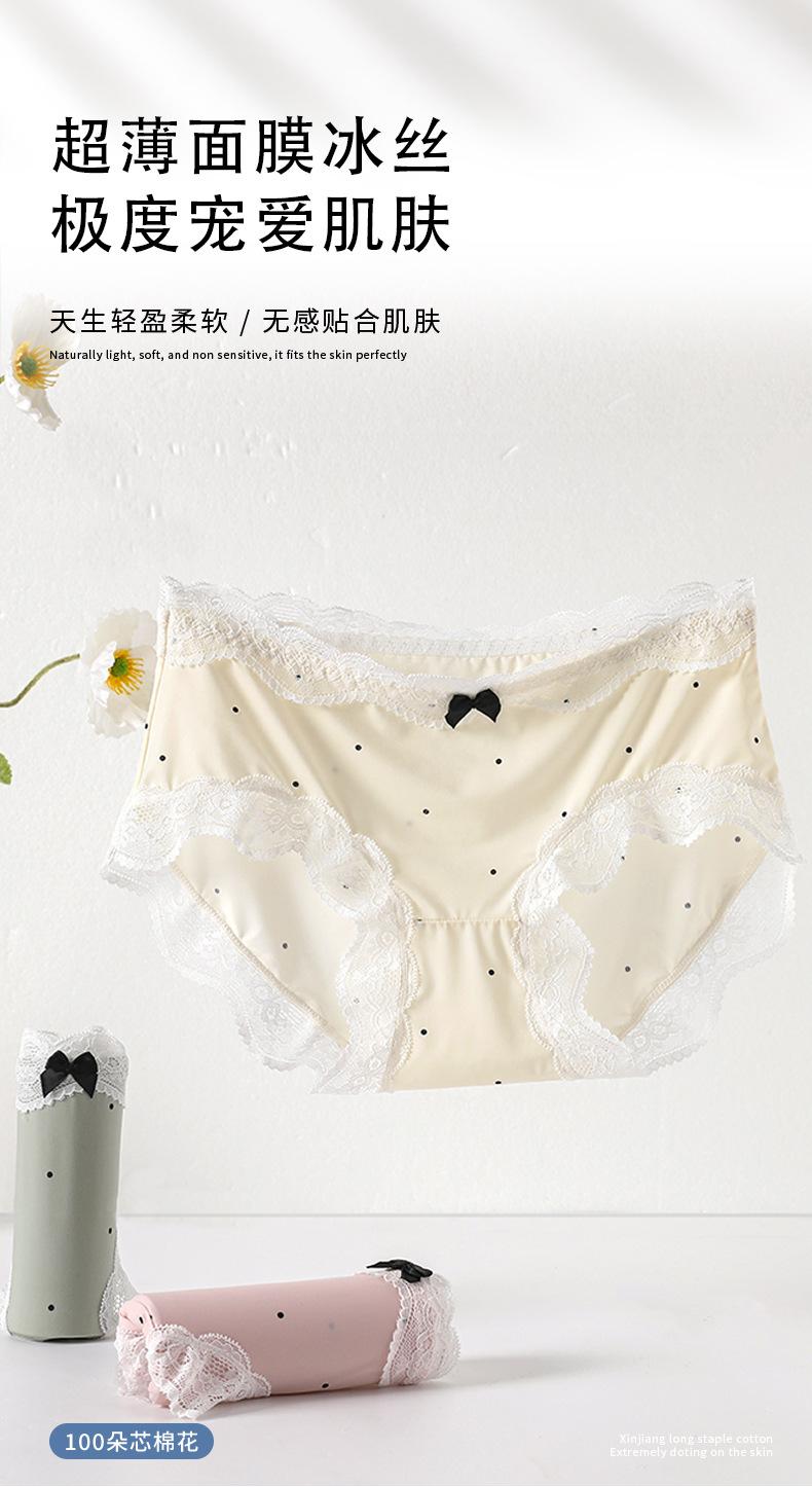 Ropa Interior Nueva de Verano Sin Costuras Pure Desire para Niña para Mujer Delgada Antibacteriana Entrepierna de Algodón Borde de Encaje Cintura Media Fresca de Secado Rápido Hielo