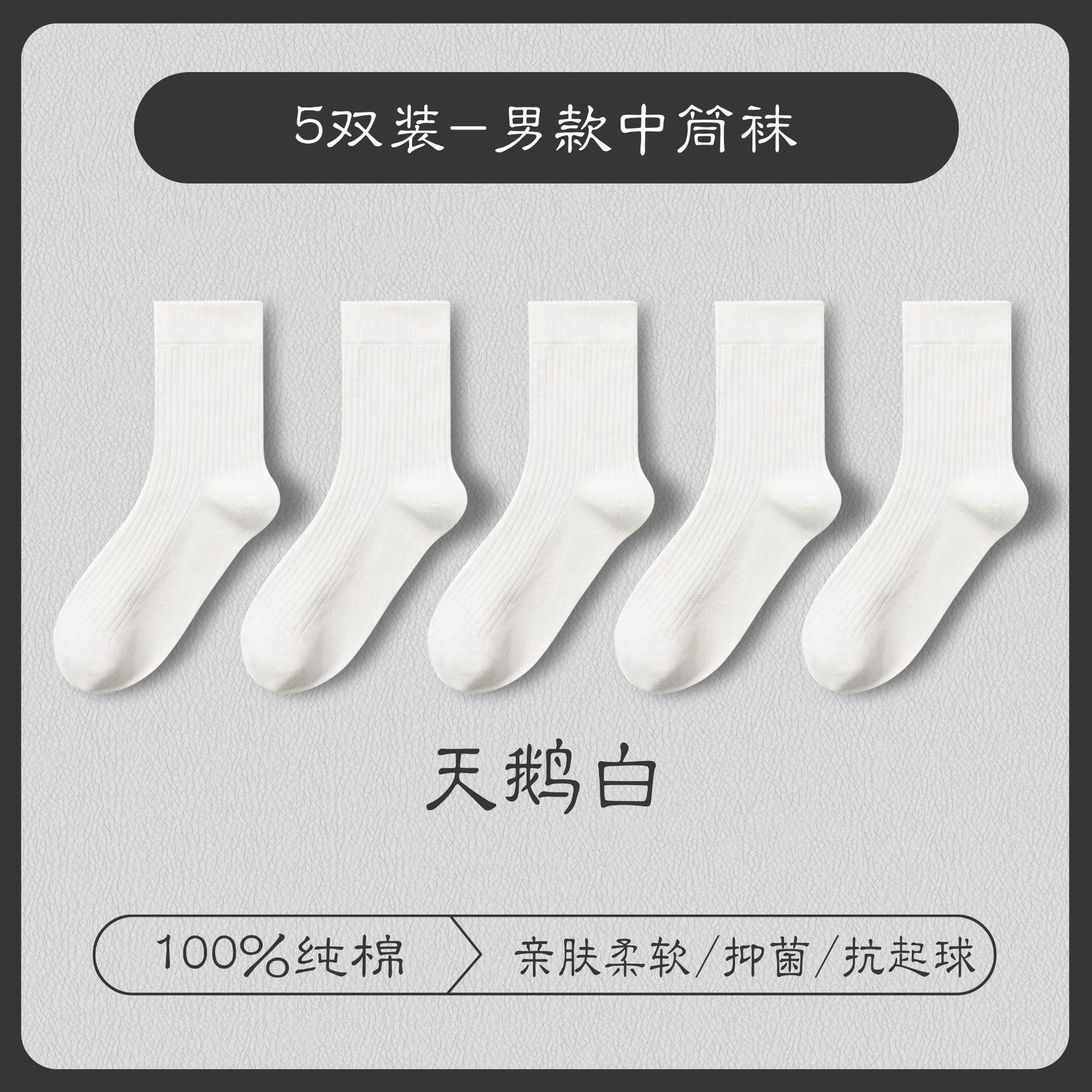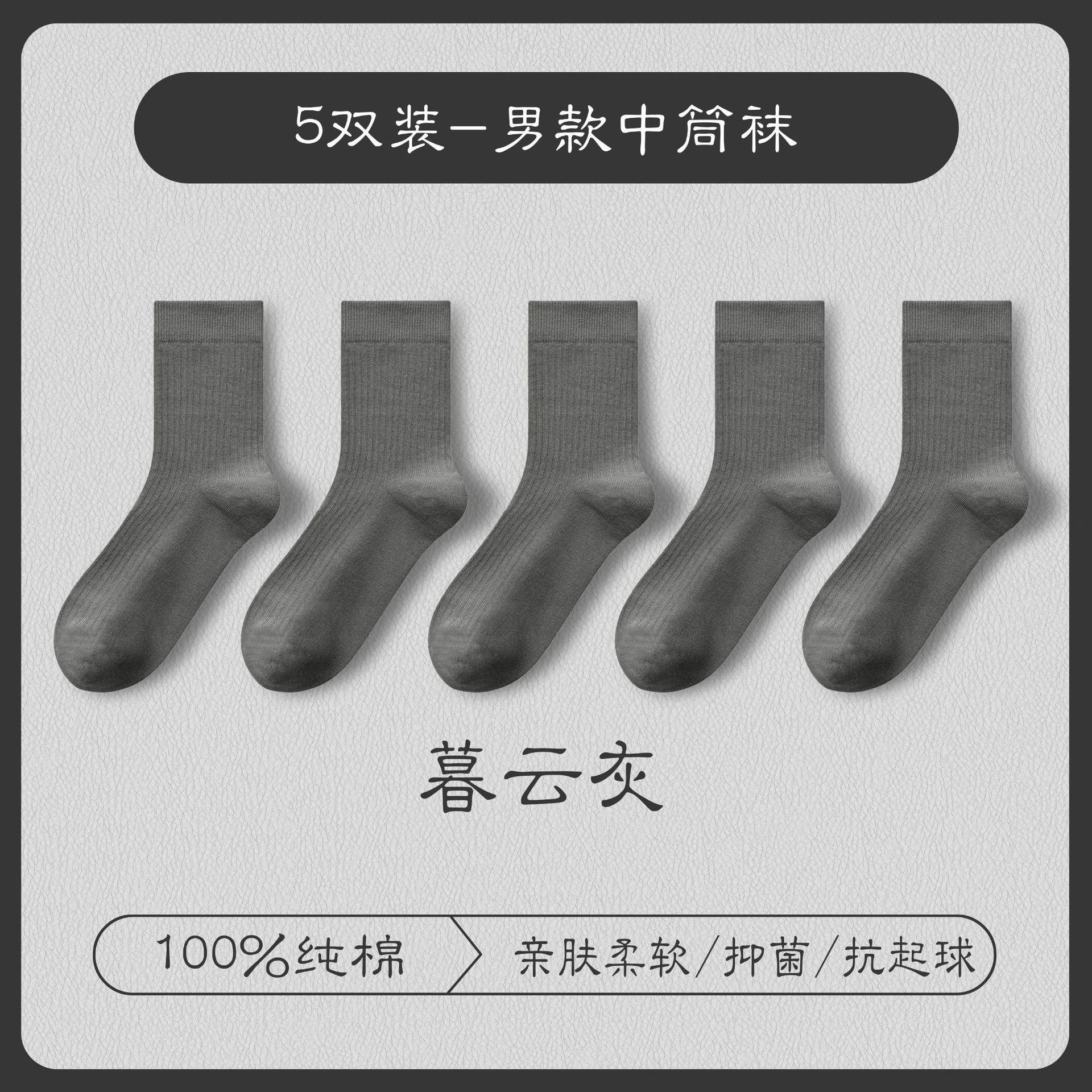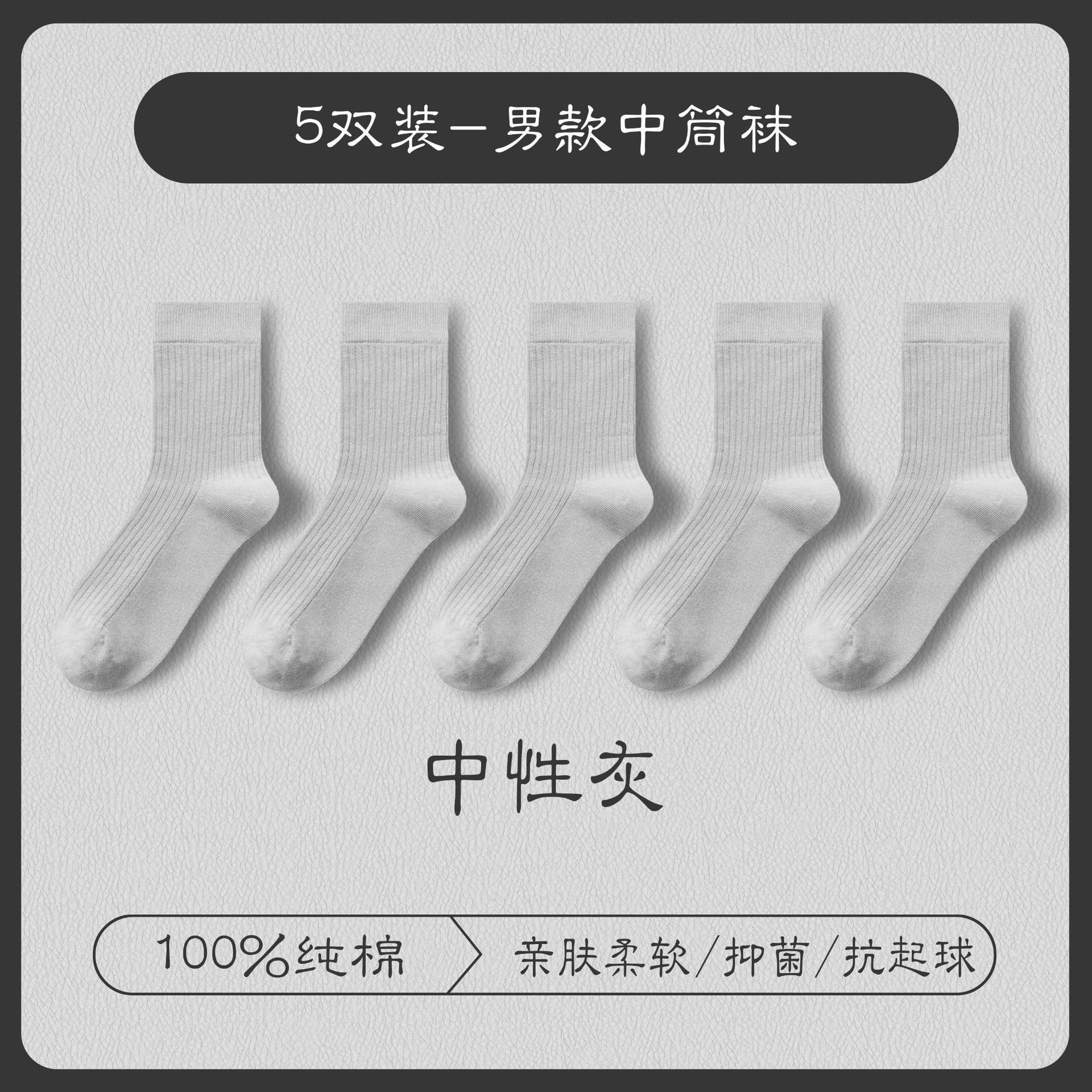Pure cotton drawstring mid-calf men's socks neutral gray 5 pairs
