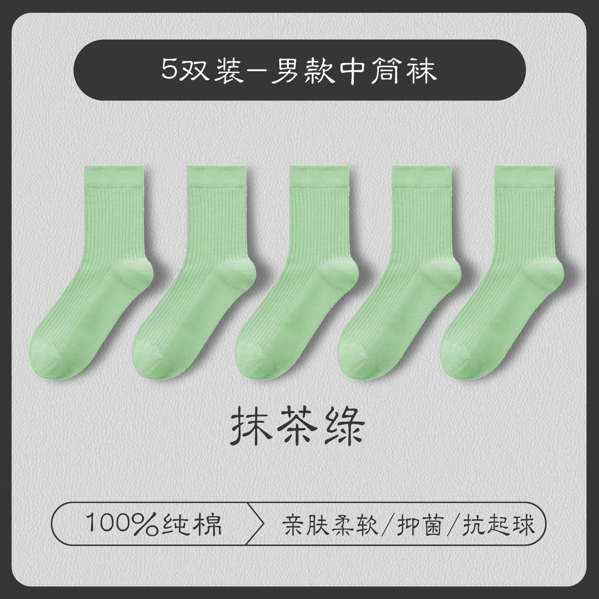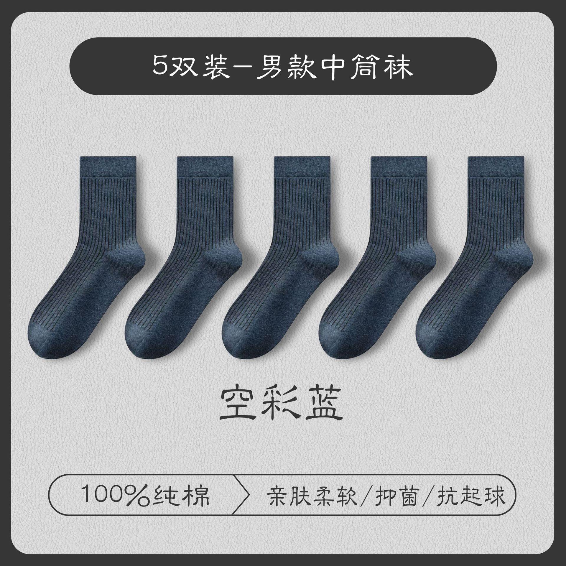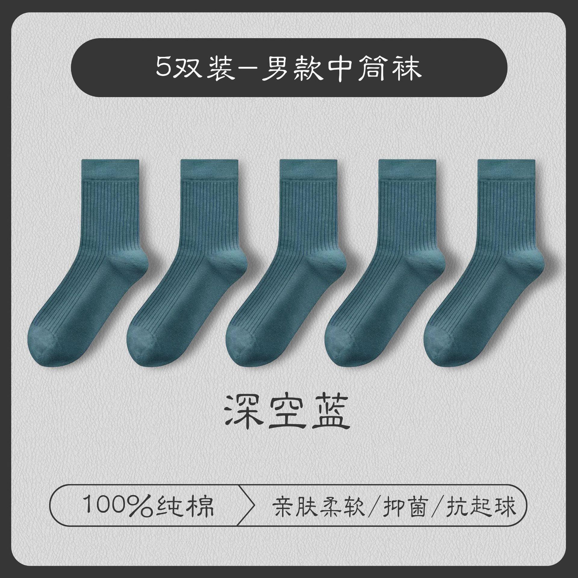 Pure cotton drawstring mid-calf men's socks space blue 5 pairs