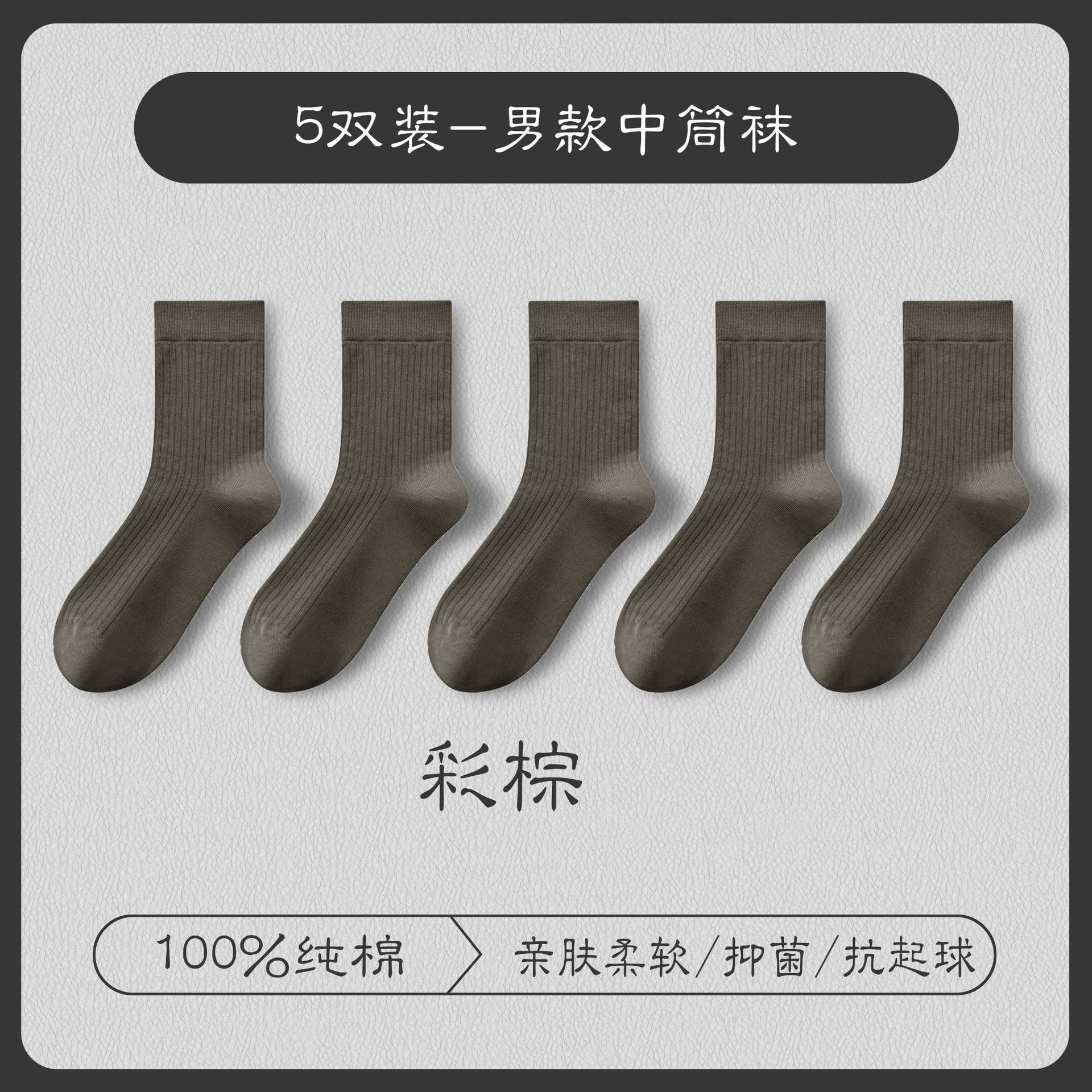 5 pairs of pure cotton drawstring men's socks in colorful brown