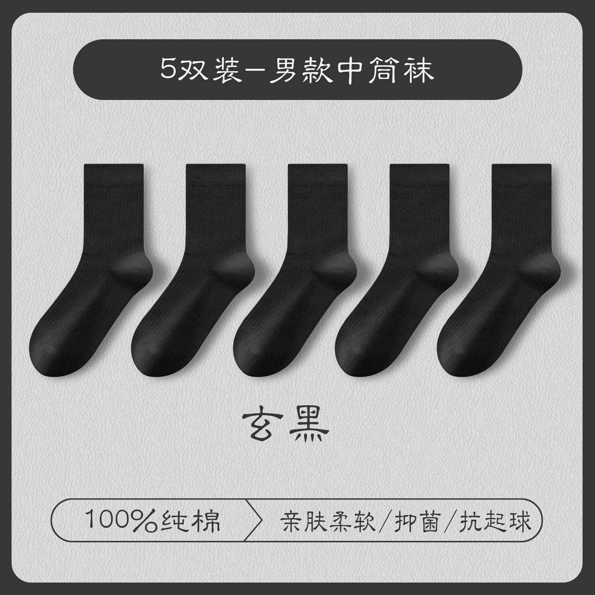 5 pairs of pure cotton drawstring mid-calf men's socks black