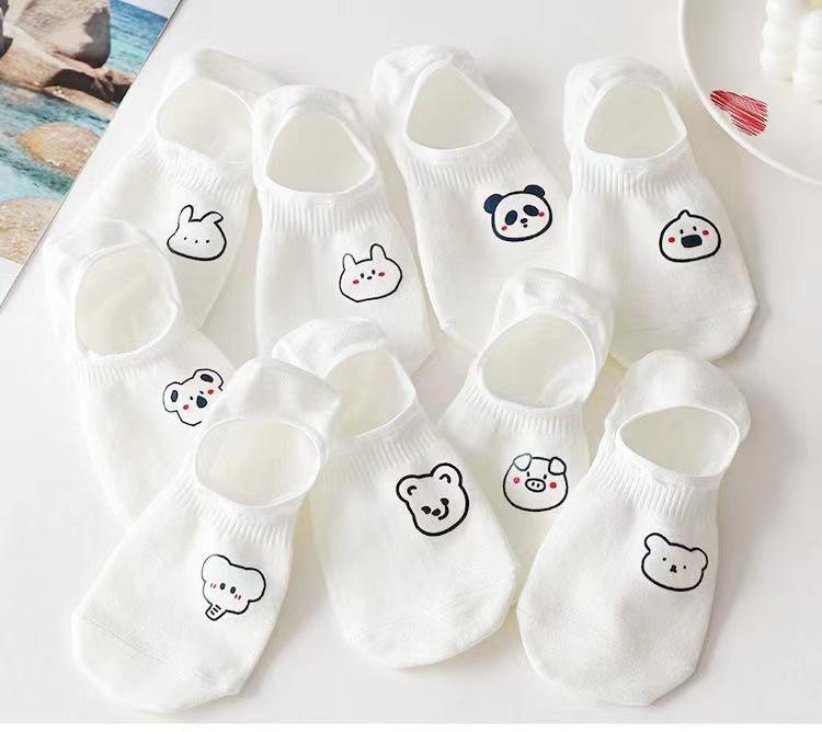 Calcetines Calcetines Cortos para Mujer Calcetines Coreanos Tipo Barco Calcetines de Verano Finos de Boca Baja Invisibles Calcetines de Algodón Transpirables Antideslizantes de Silicona para Estudiante