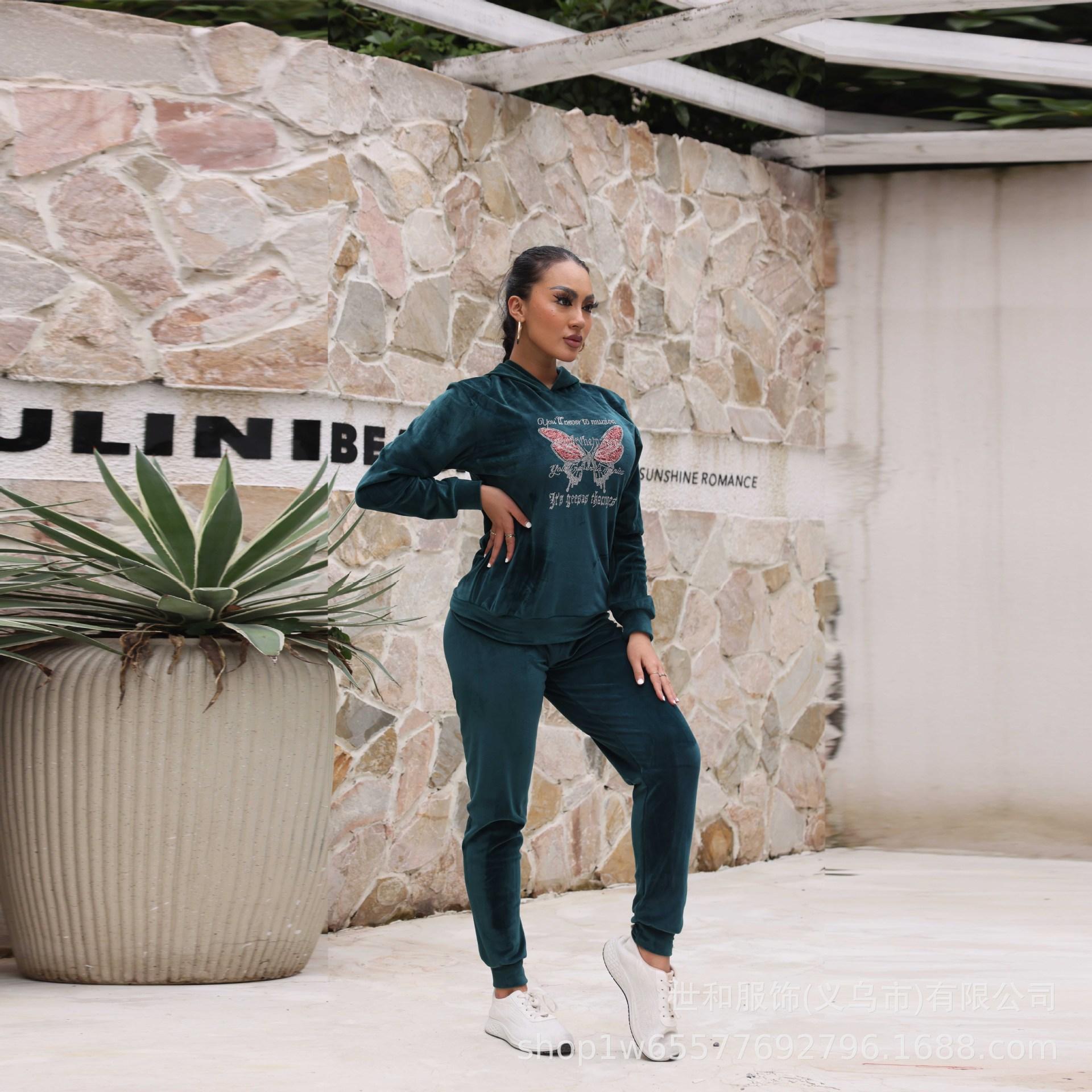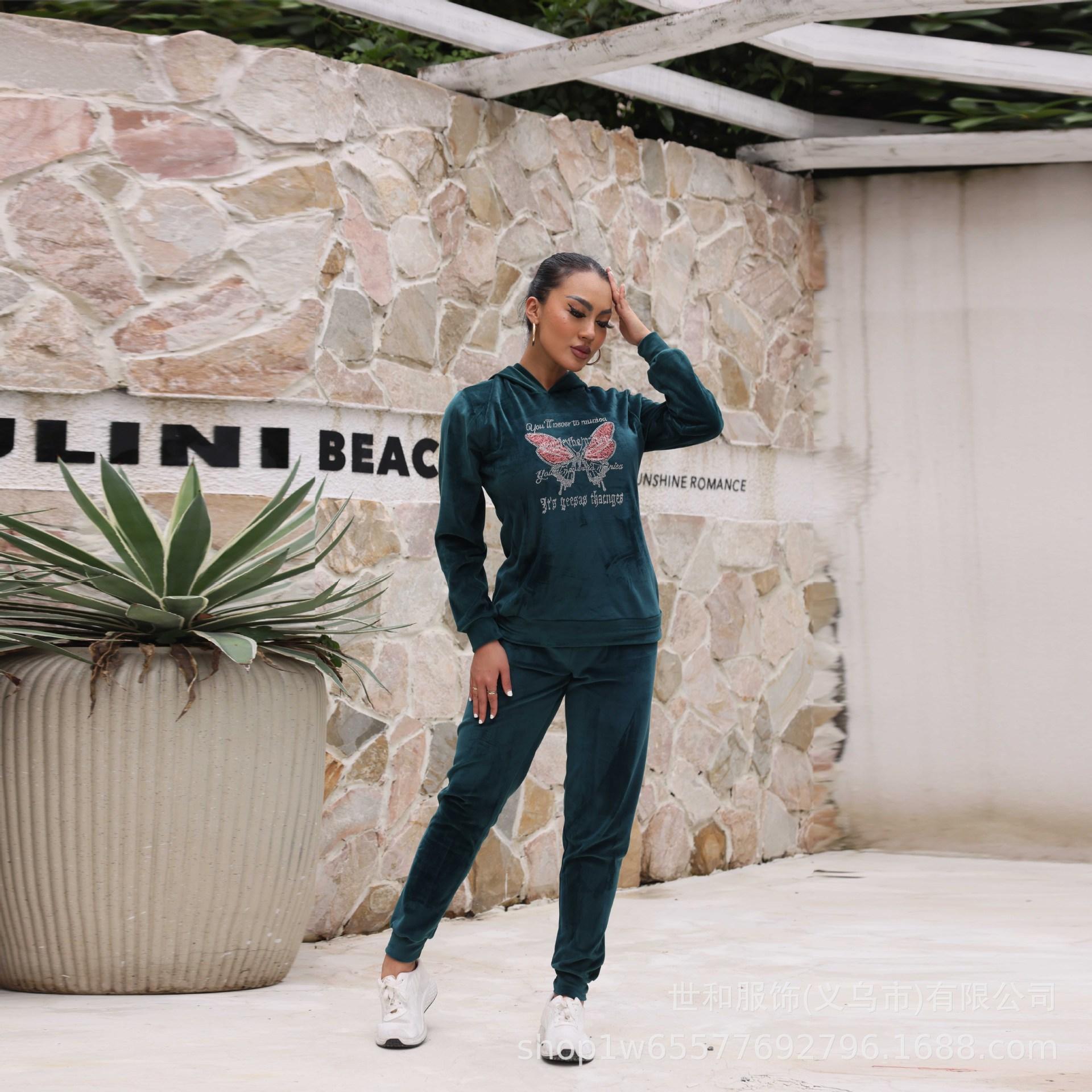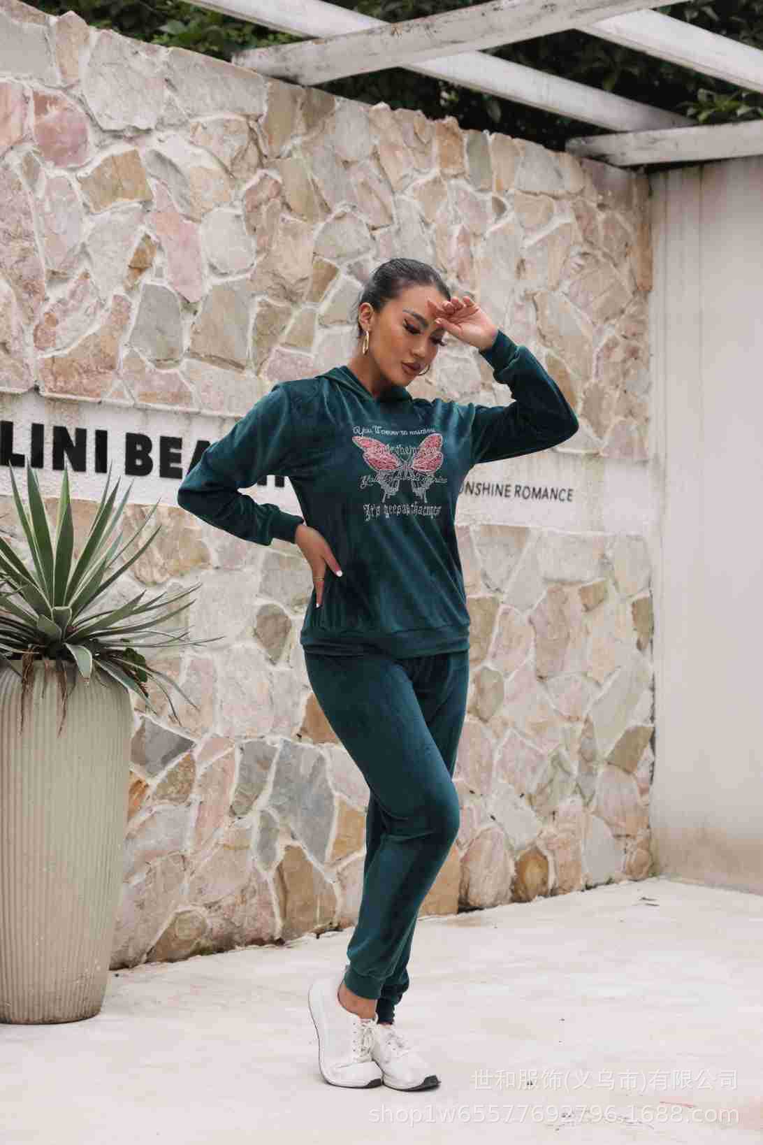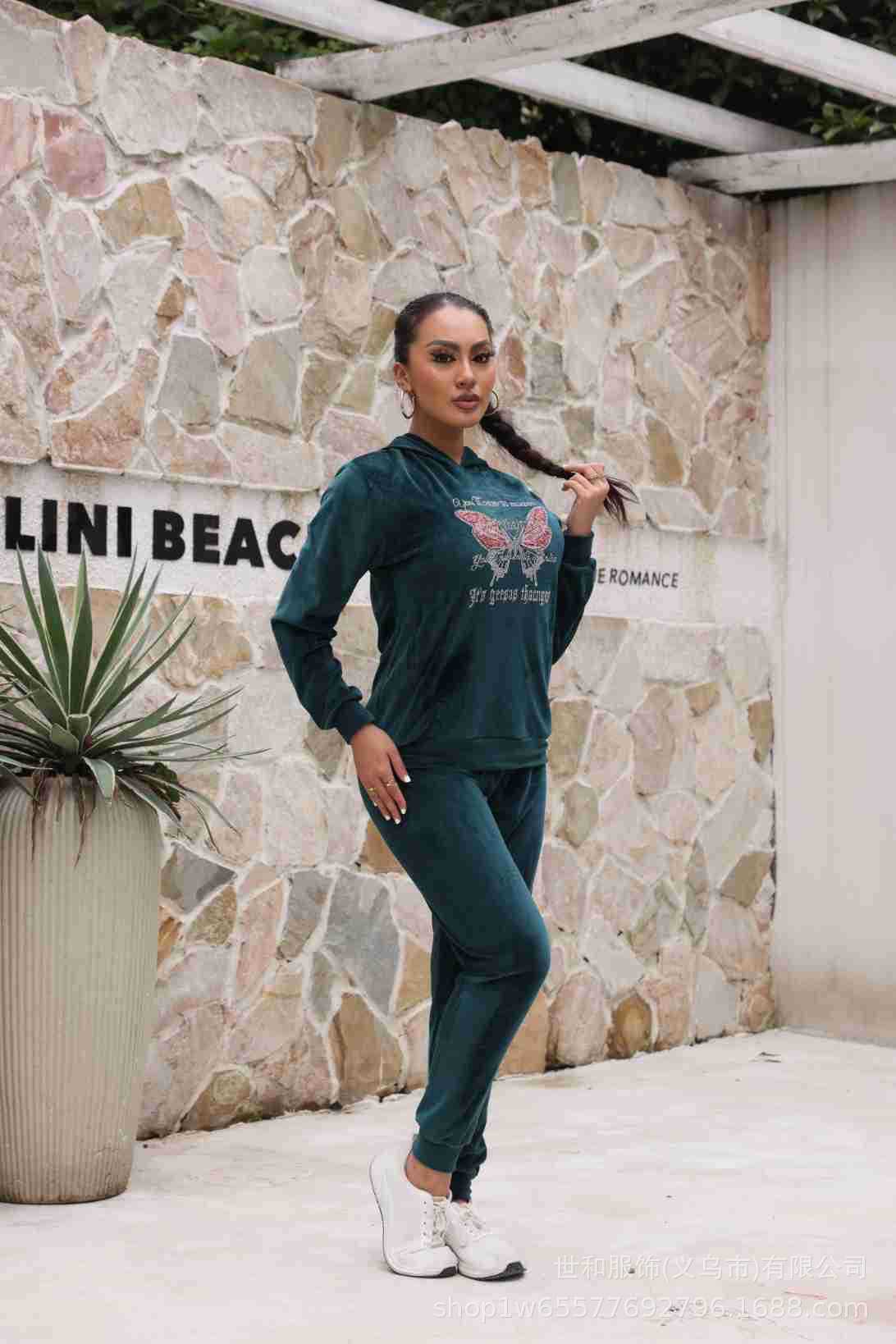 2026 Otoño/Invierno Nuevo Terciopelo de Zorro Plateado para Mujer con Pedrería, Conjunto de Pijama con Capucha para Estar en Casa, Venta al por Mayor Transfronteriza