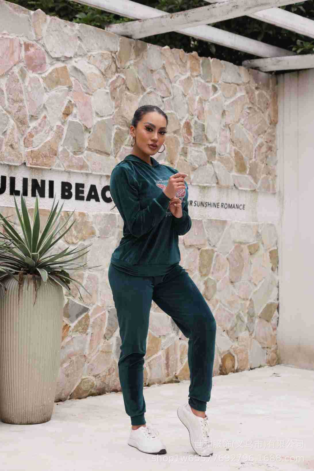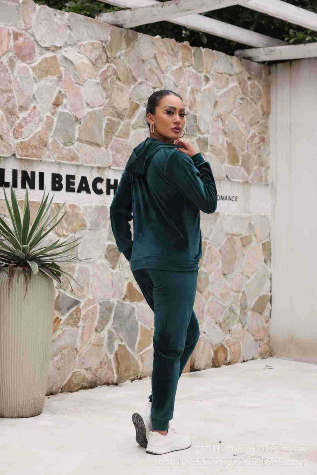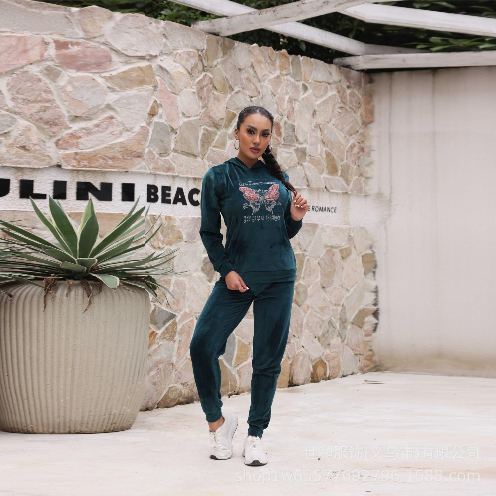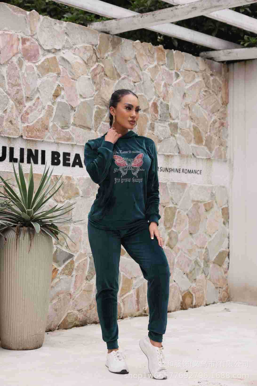 2026 Otoño/Invierno Nuevo Terciopelo de Zorro Plateado para Mujer con Pedrería, Conjunto de Pijama con Capucha para Estar en Casa, Venta al por Mayor Transfronteriza
