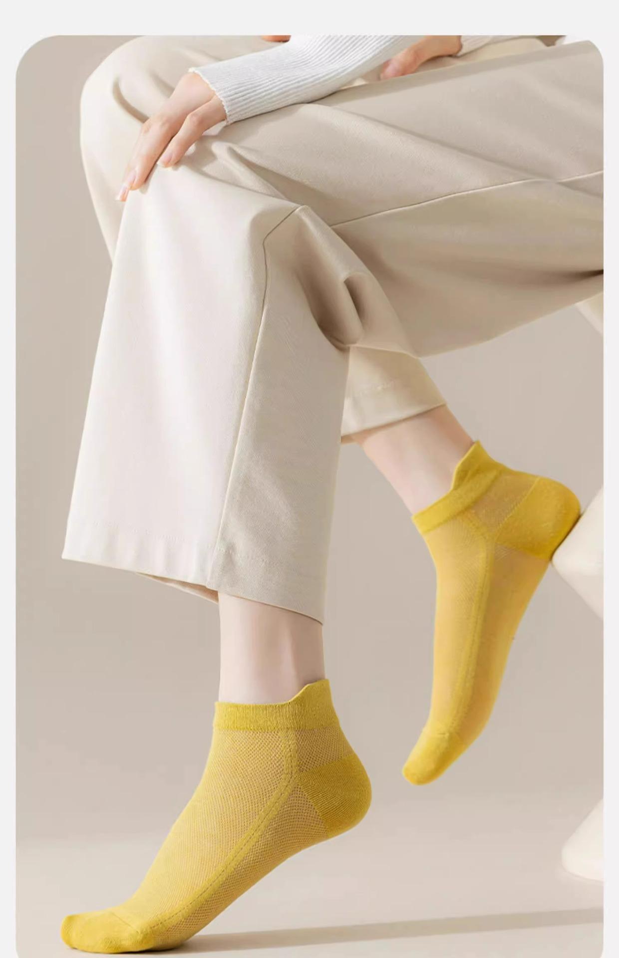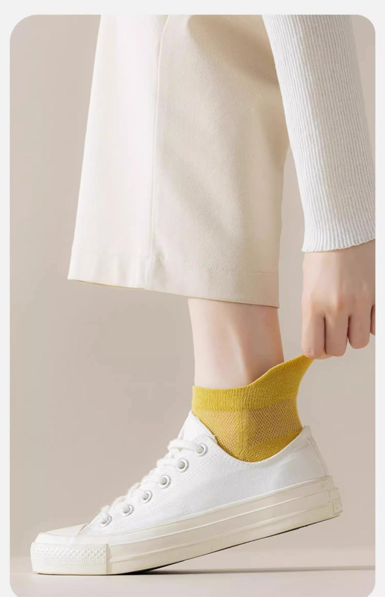 Calcetines Delgados de Primavera y Verano para Mujer, Calcetines de Algodón de Primavera Desodorantes y Absorbentes de Sudor, Calcetines de Barco de Malla Baja de Verano para Mujer, Calcetines Invisibles