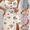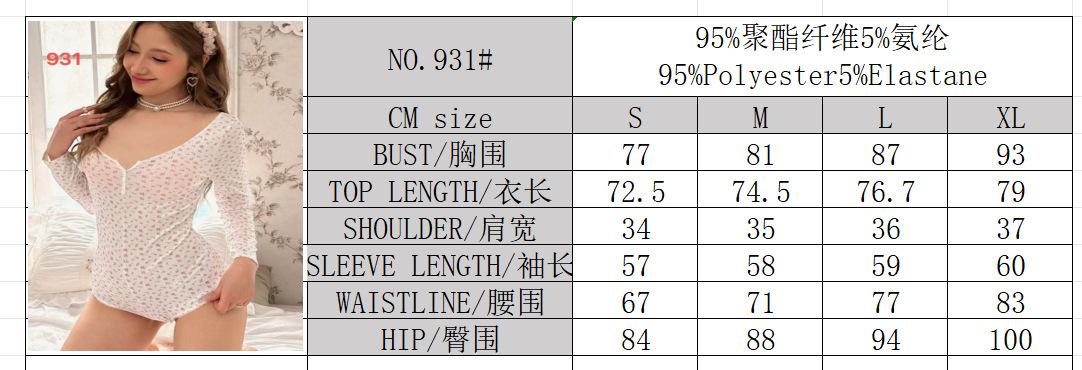 Pijama Sexy para Mujer Europea y Americana Transfronteriza de Manga Larga Estampado con Botones Delanteros Encaje Floral Camisón de Una Pieza Ropa para el Hogar