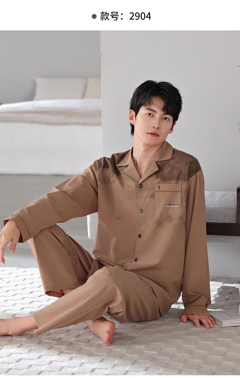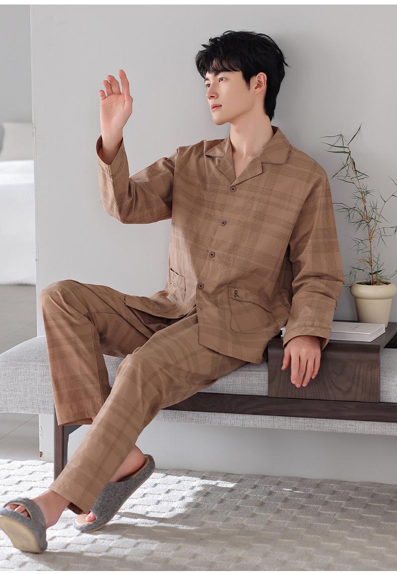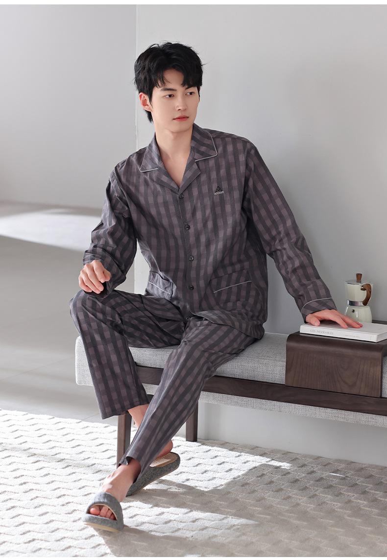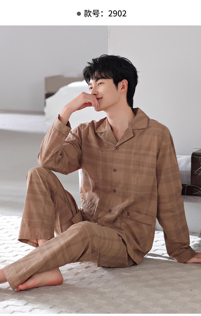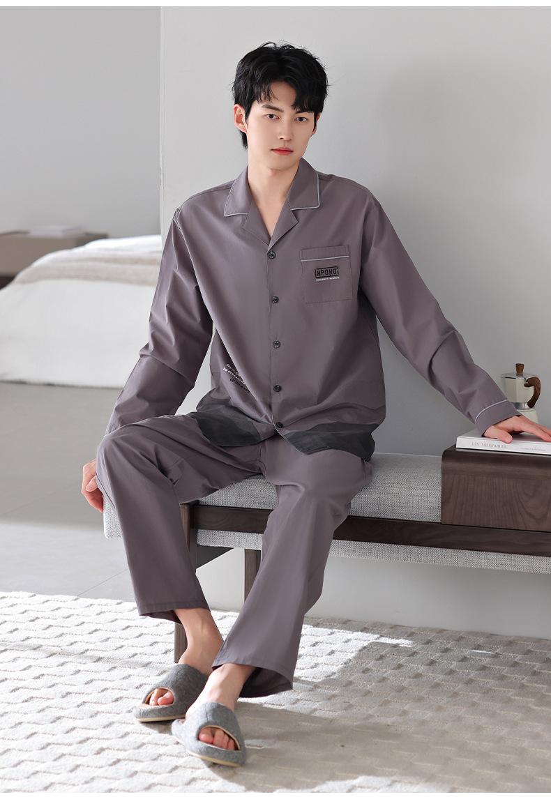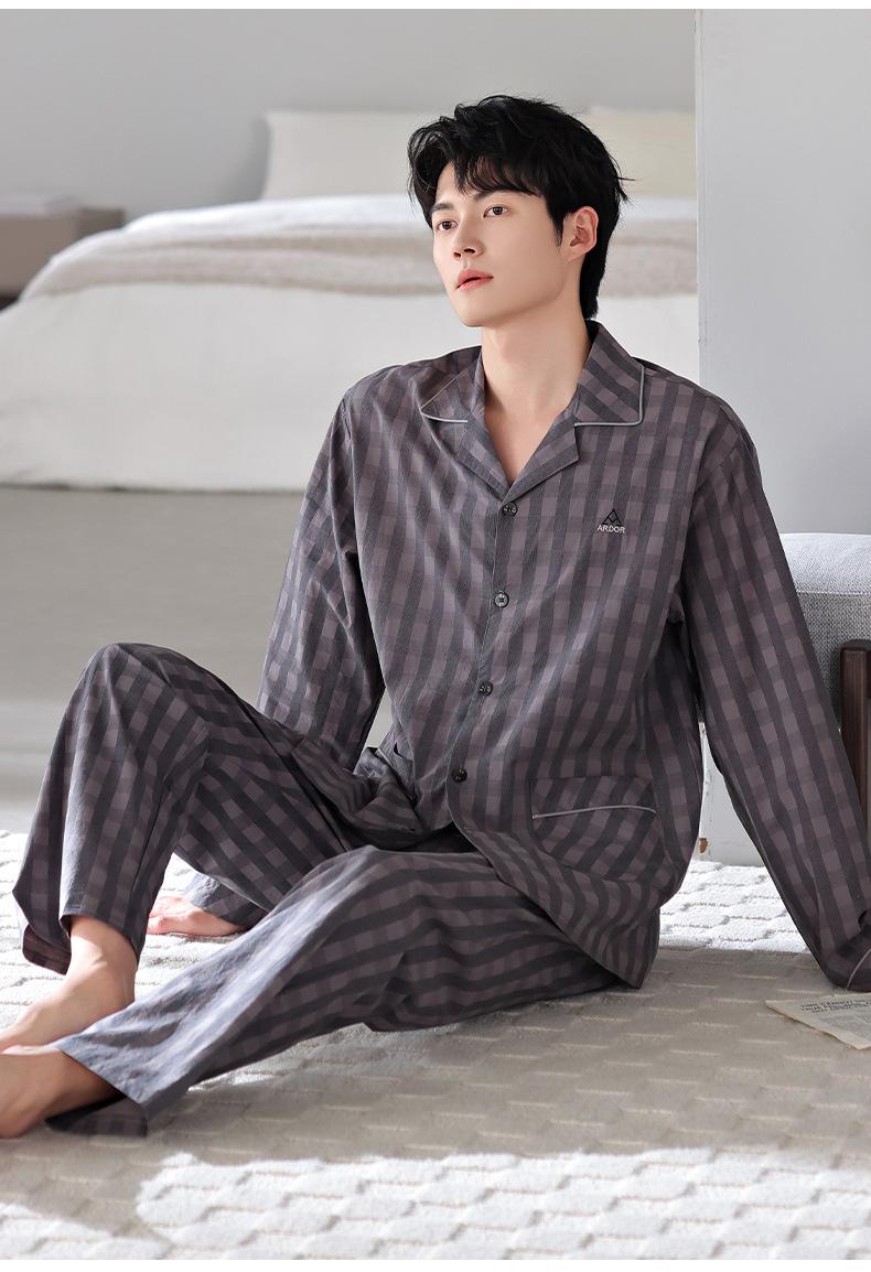 Compra Pijama de Algodón Tejido para Hombre Primavera y Otoño Pantalones de Manga Larga Ropa para el Hogar Cárdigan Sencillo Holgado Ropa Exterior Traje de Hombre al por mayor en Joom.pro