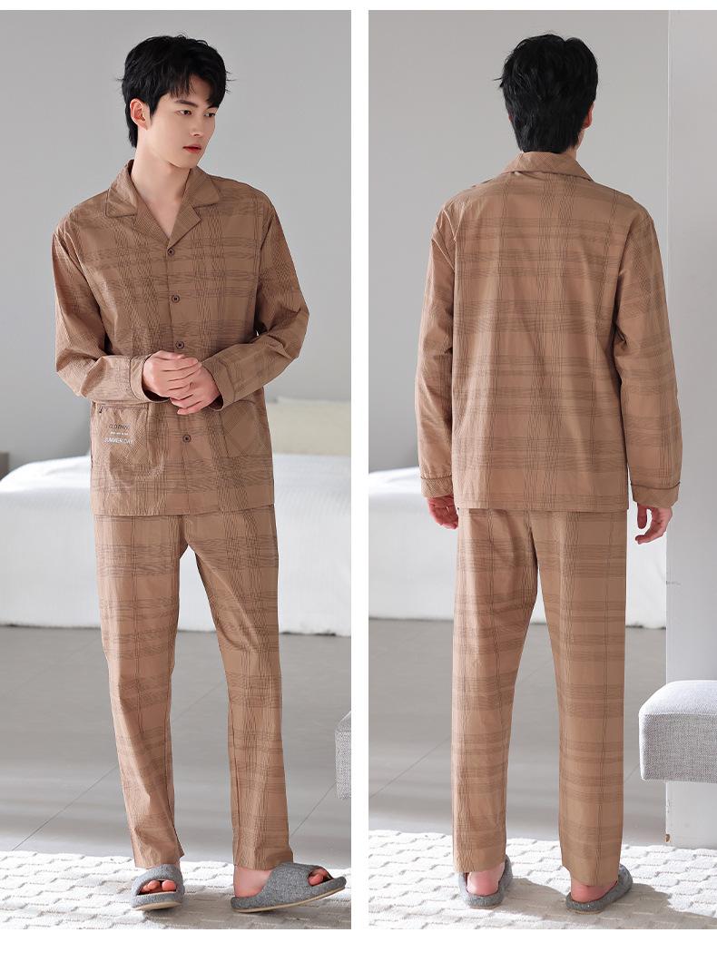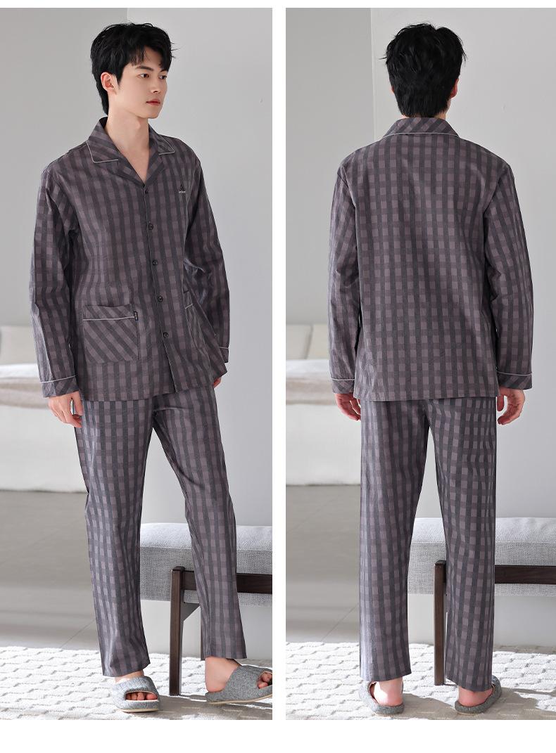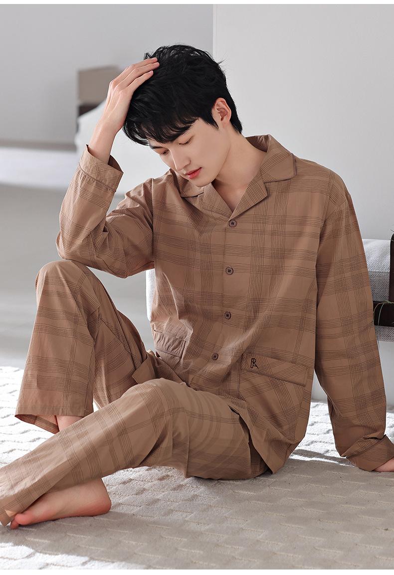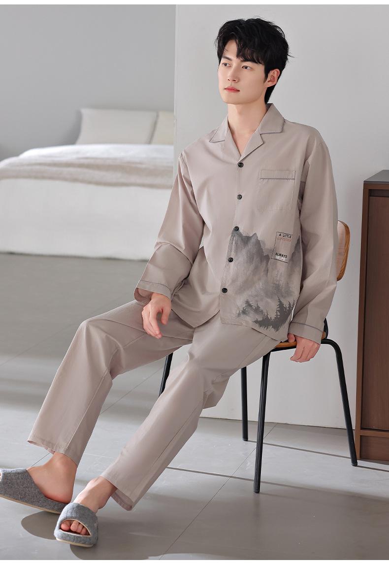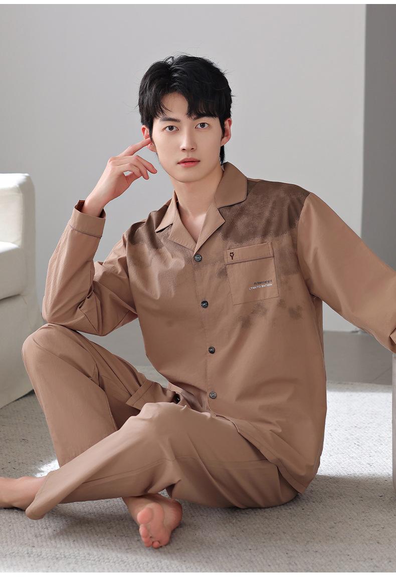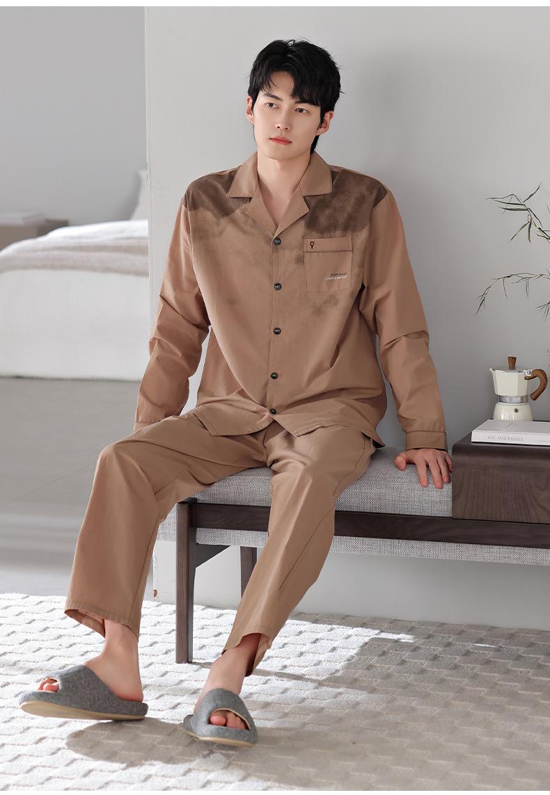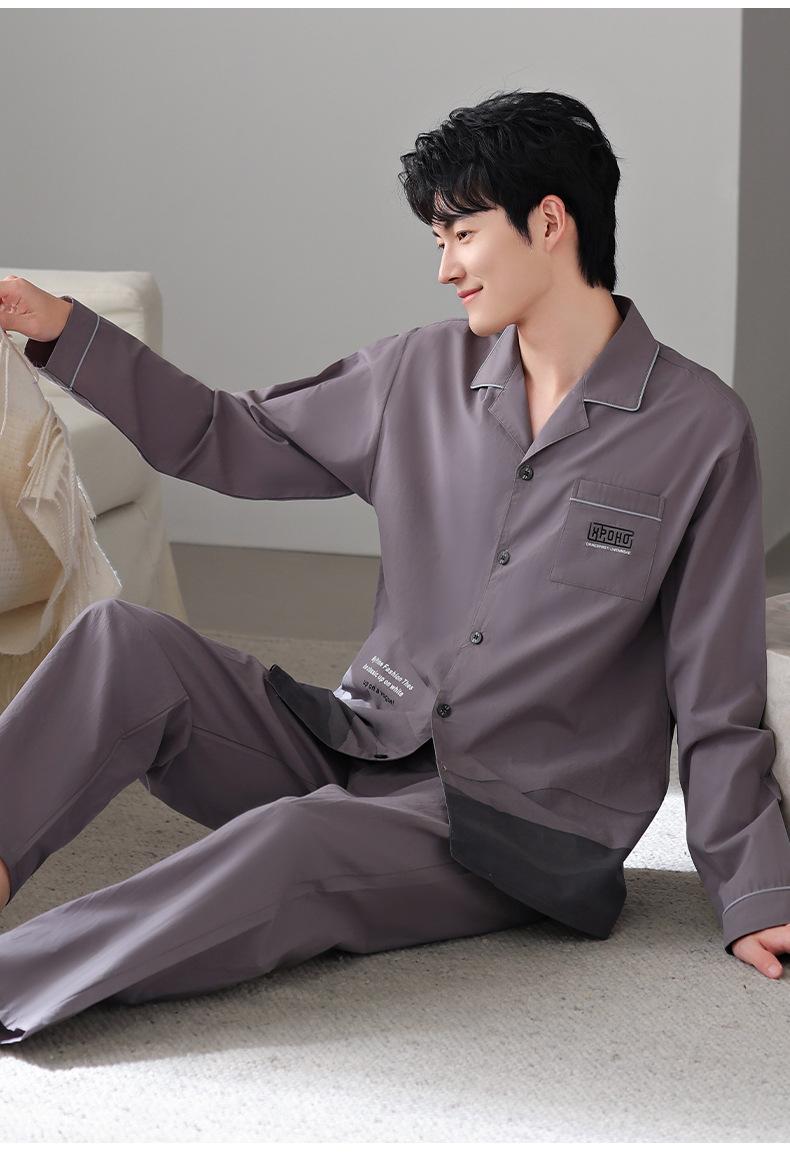 Compra Pijama de Algodón Tejido para Hombre Primavera y Otoño Pantalones de Manga Larga Ropa para el Hogar Cárdigan Sencillo Holgado Ropa Exterior Traje de Hombre al por mayor en Joom.pro