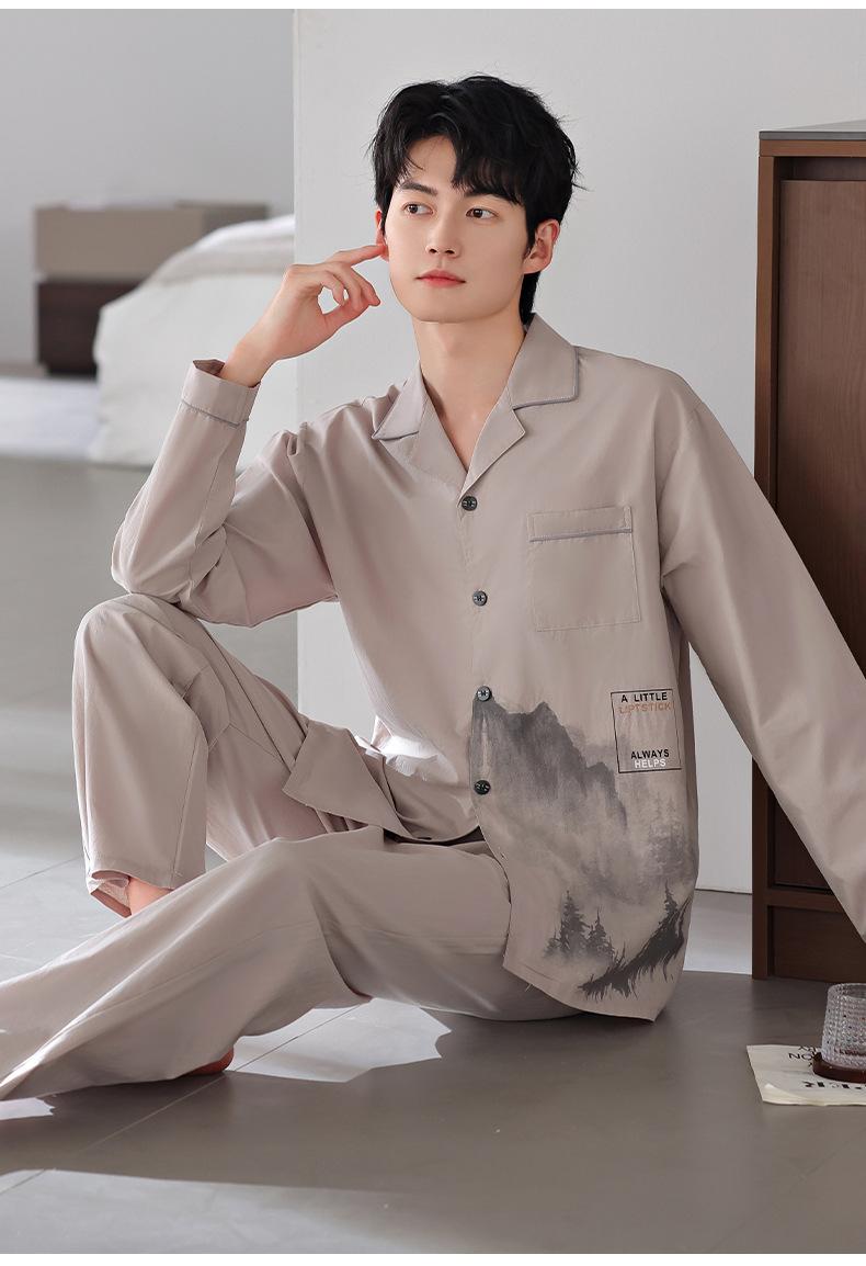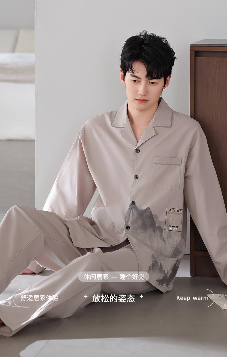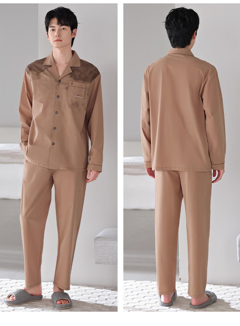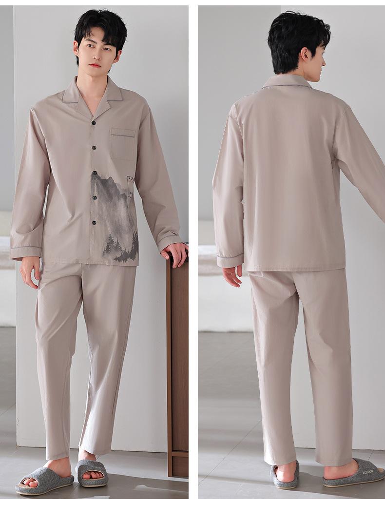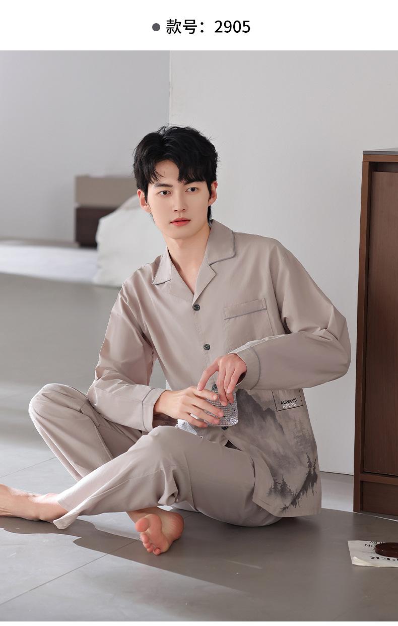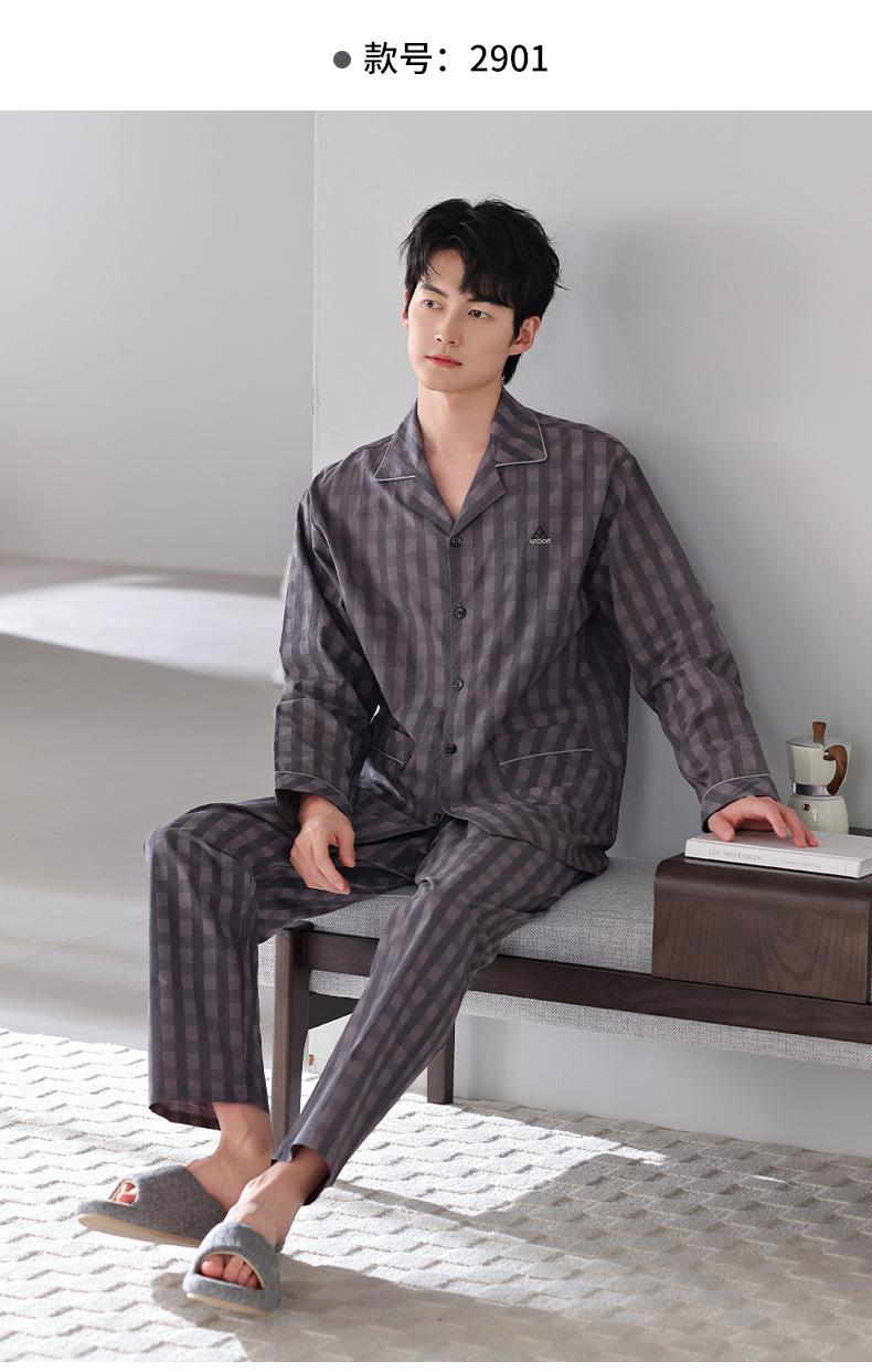 Compra Pijama de Algodón Tejido para Hombre Primavera y Otoño Pantalones de Manga Larga Ropa para el Hogar Cárdigan Sencillo Holgado Ropa Exterior Traje de Hombre al por mayor en Joom.pro