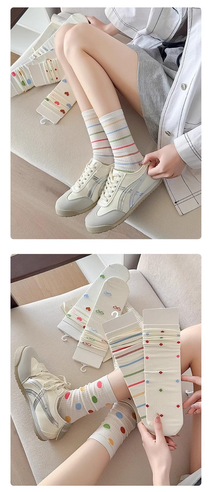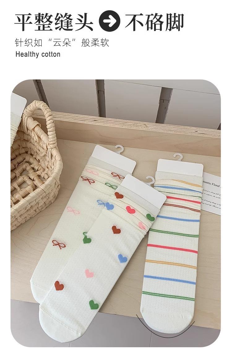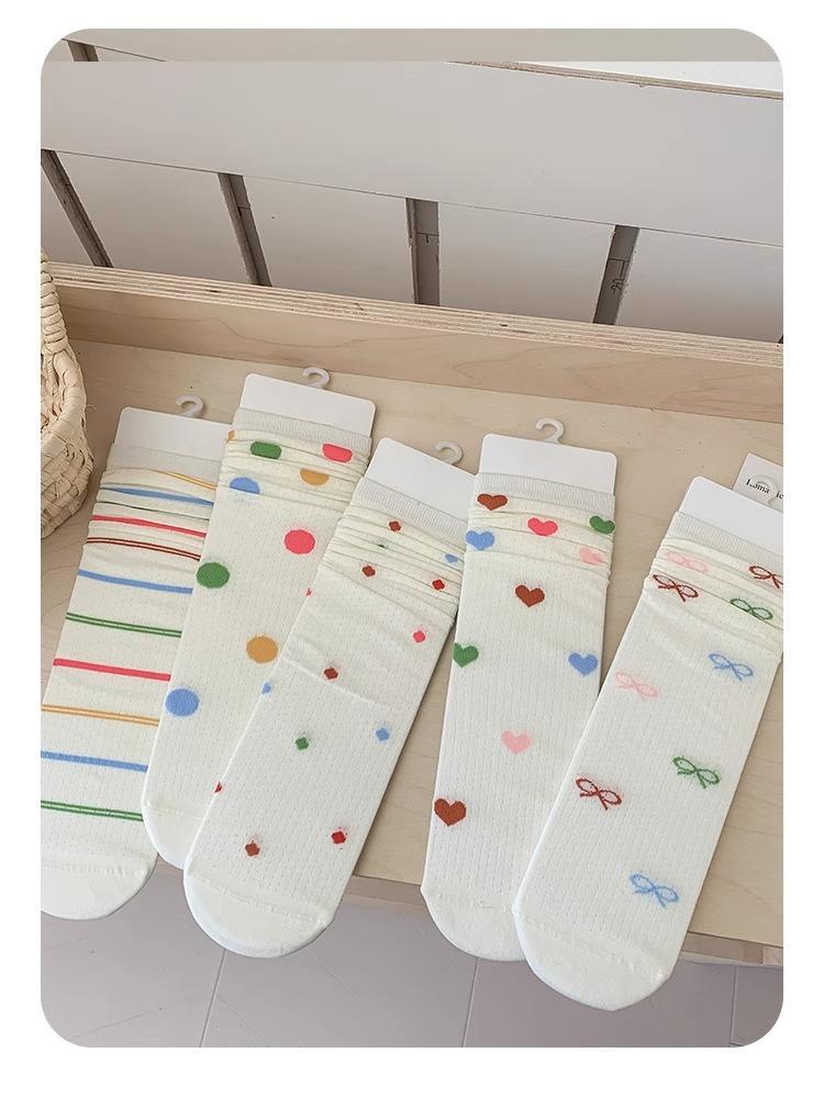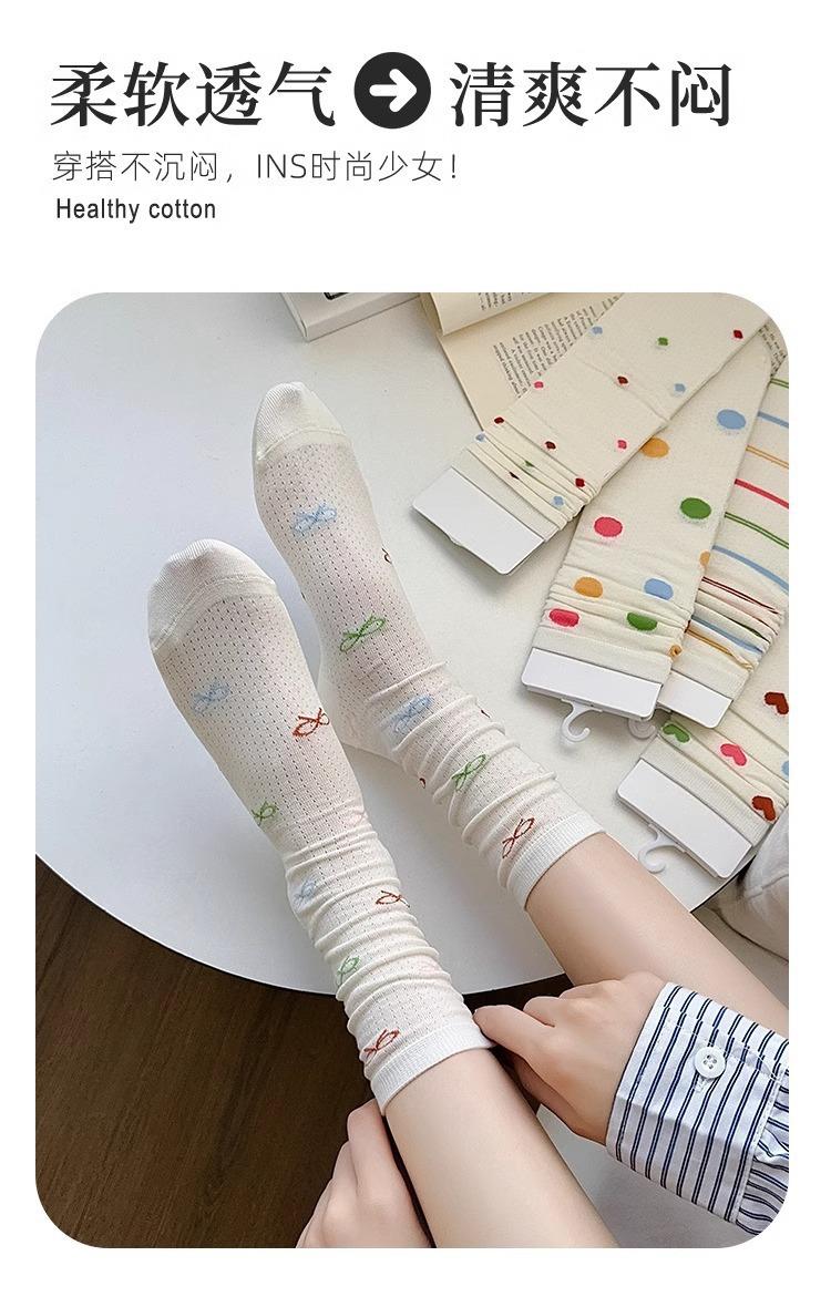 Calcetines Nuevos de Primavera y Verano de Malla con Lunares de Media Caña Finos Transpirables Calcetines de Corazón para Mujer Lindos Versátiles Calcetines para Mujer Ligeros y Delgados