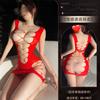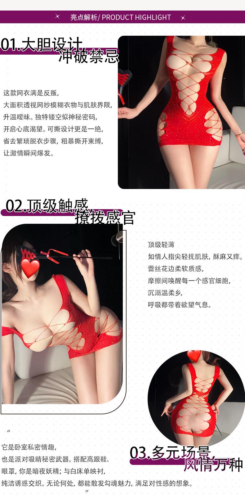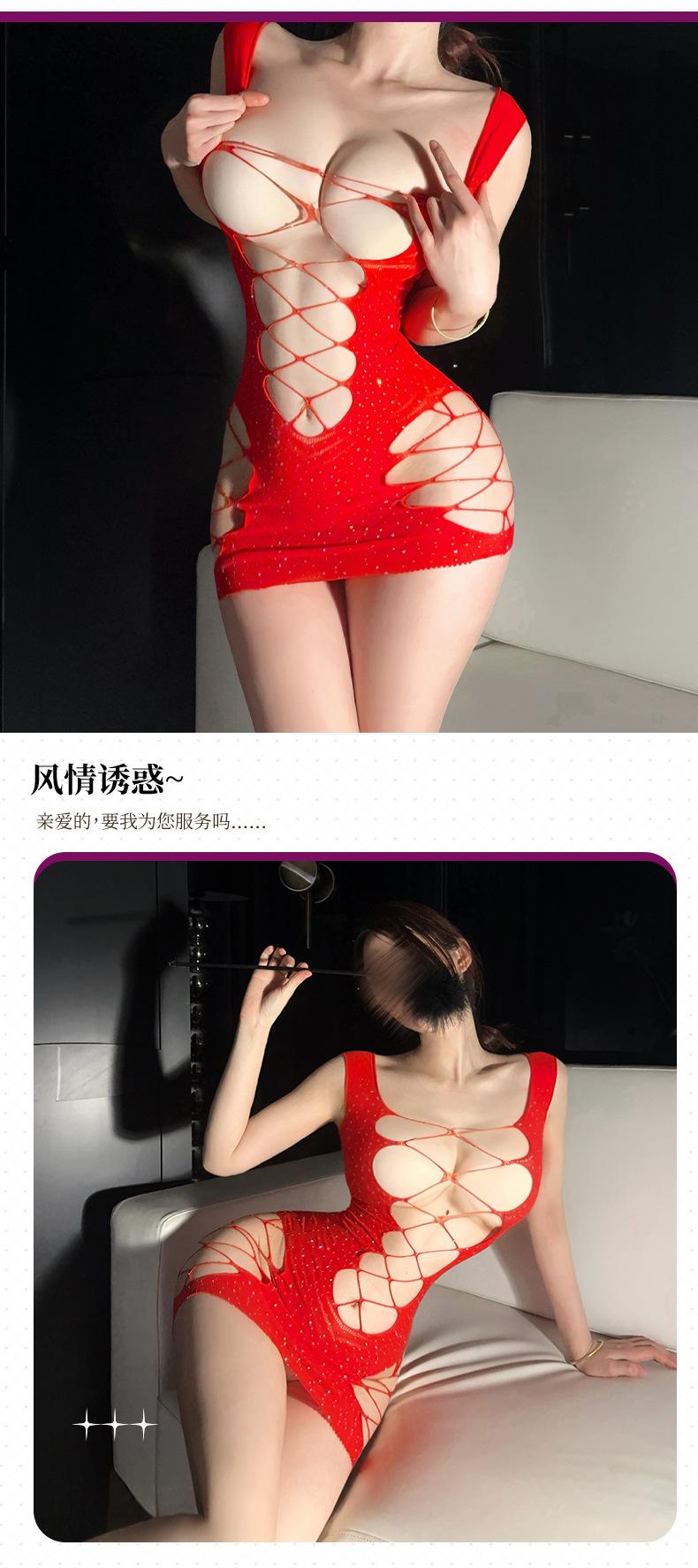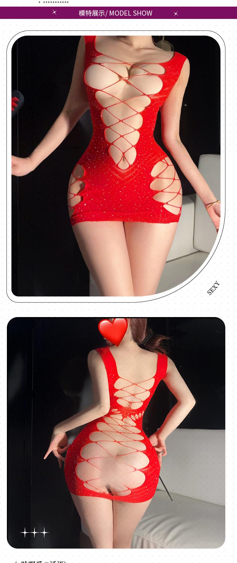 Lencería Sexy Nube Rosa: Sexy Caliente Pedrería Brillante Malla Ahuecada Entrepierna Abierta No Removible Pasión Falda Ajustada a la Cadera Uniforme