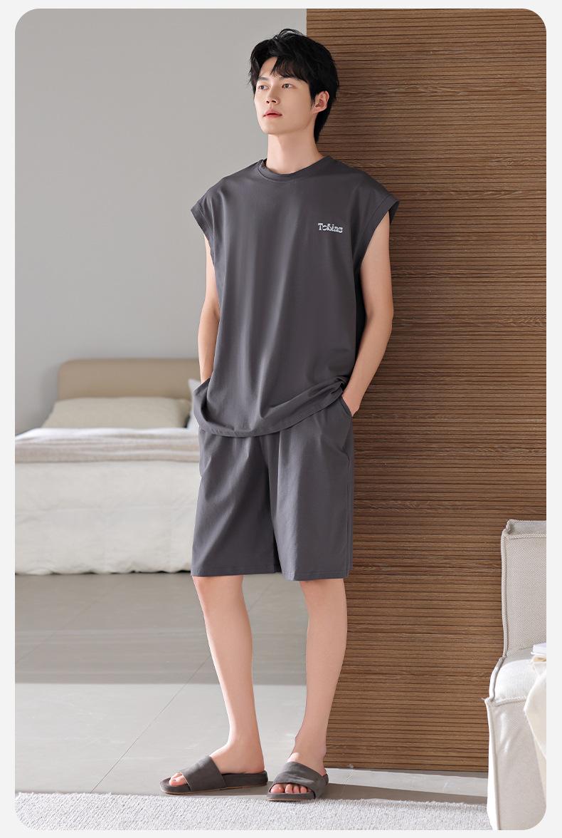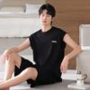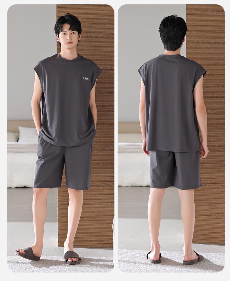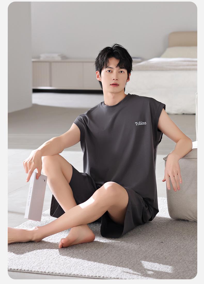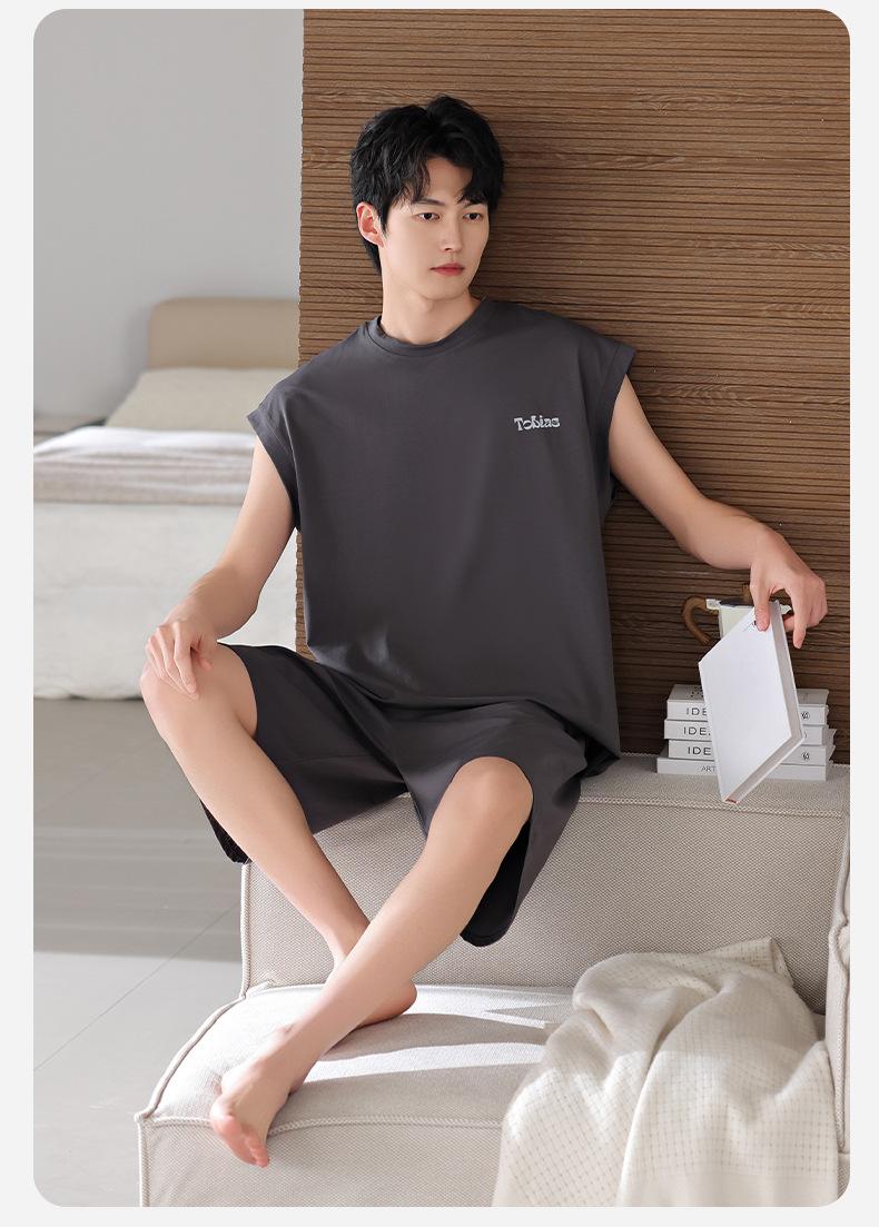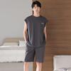Pijama para Hombre Nuevo Verano Fresco Algodón Puro Cuello Redondo Chaleco Shorts Suelto y Sencillo Se Puede Usar Afuera Conjunto de Ropa para el Hogar para Hombre