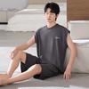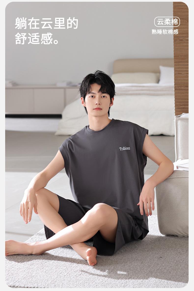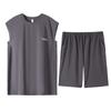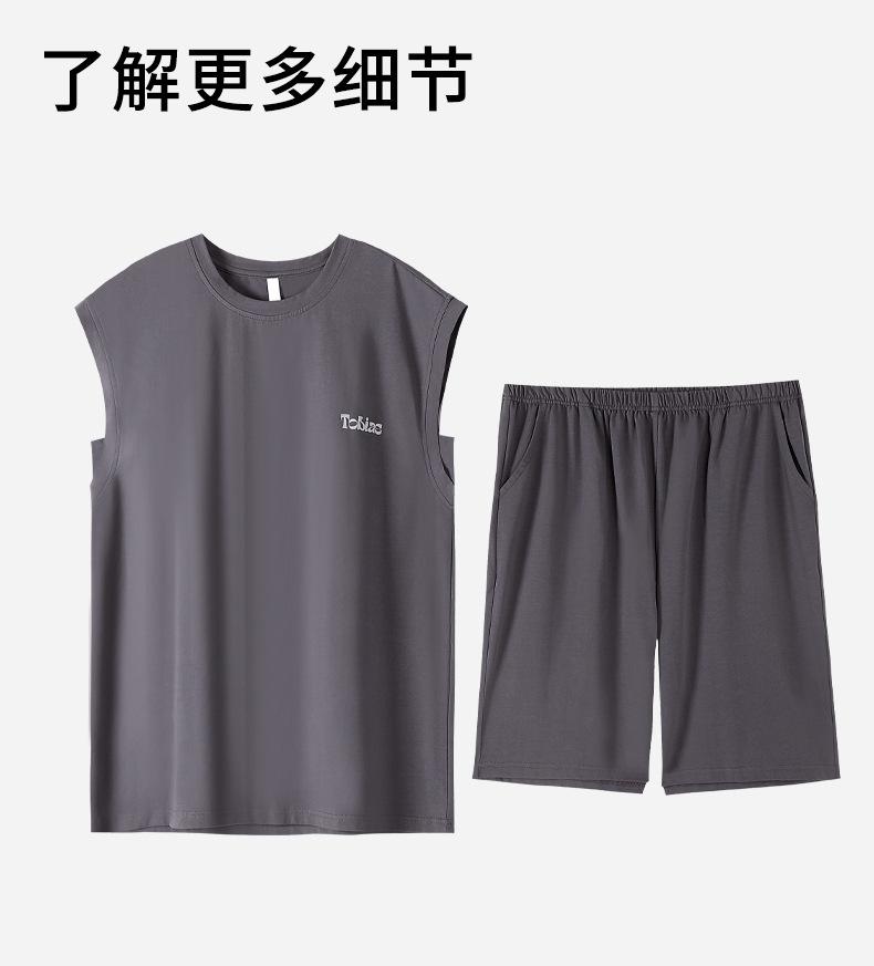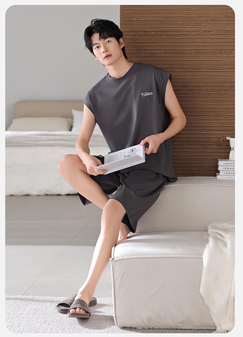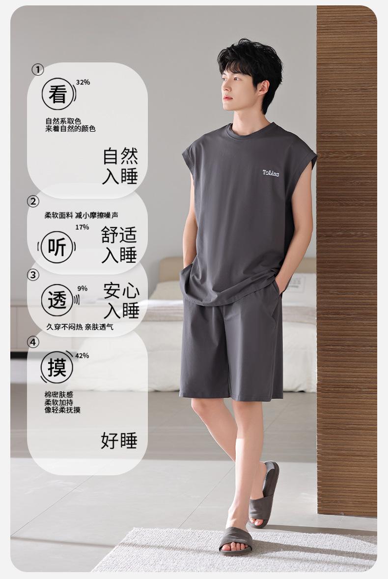 Pijama para Hombre Nuevo Verano Fresco Algodón Puro Cuello Redondo Chaleco Shorts Suelto y Sencillo Se Puede Usar Afuera Conjunto de Ropa para el Hogar para Hombre