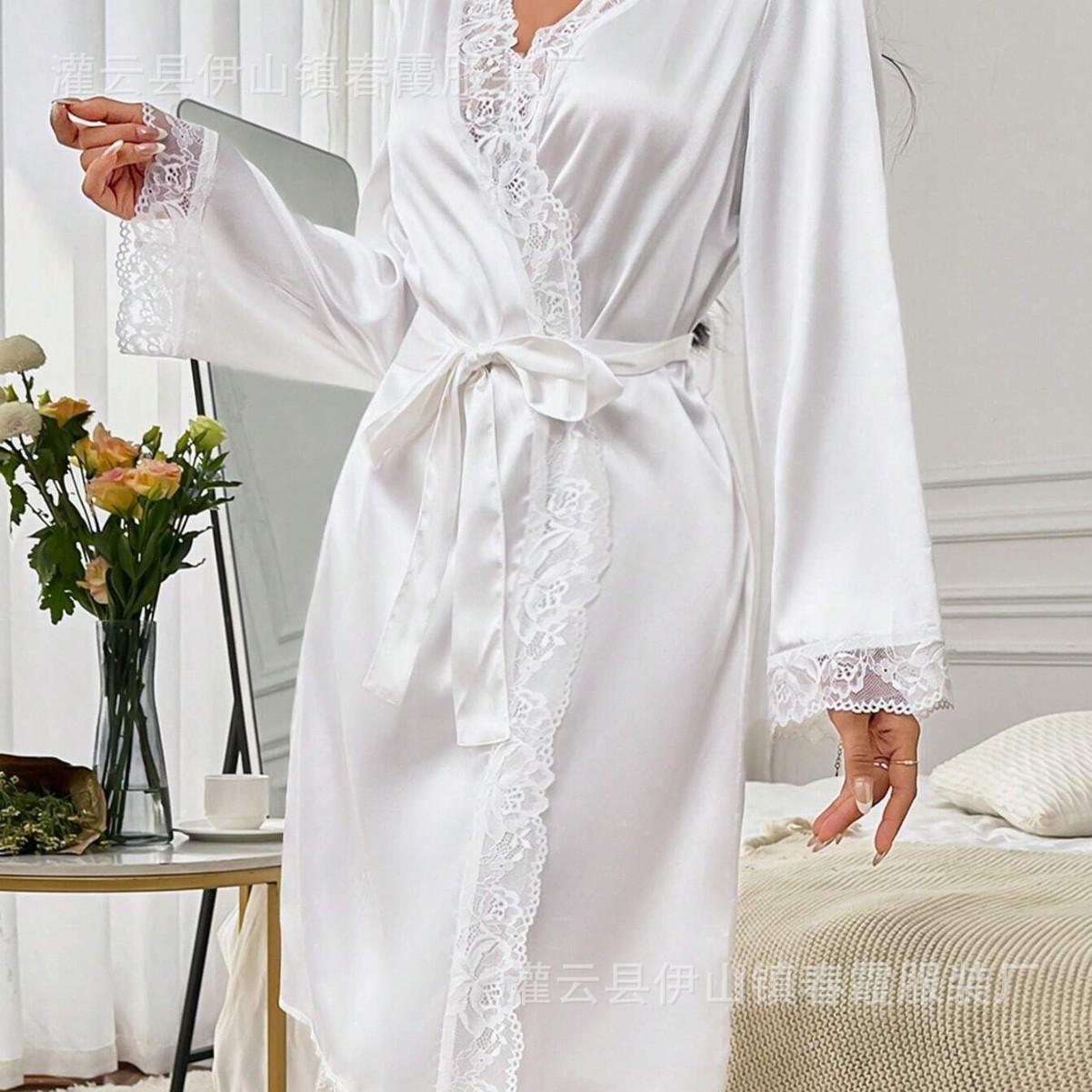 Transfronterizo 2025 Nuevo Estilo Europeo y Americano Sexy Deseo Puro Encaje Ribete Bata de Casa Camisón Bata de Baño para Mujer