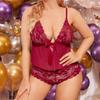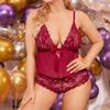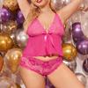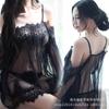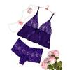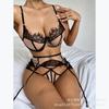 Ropa interior sexy de malla de encaje sexy de comercio exterior europeo y americano para mujer, traje de tres piezas de tentación de pasión dividida 7083