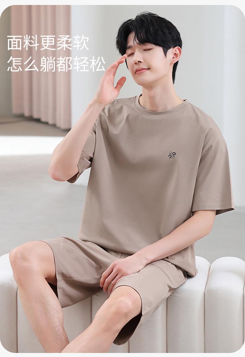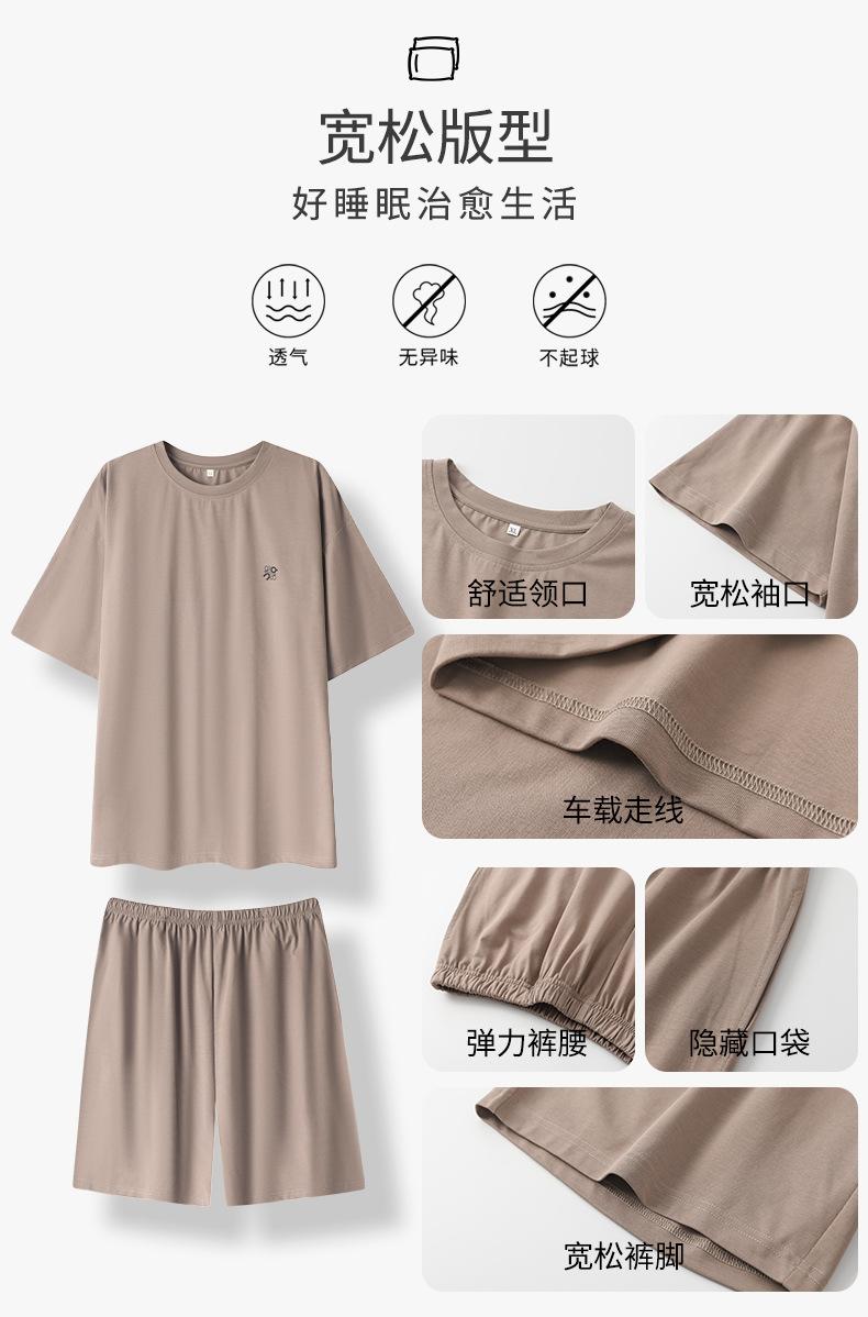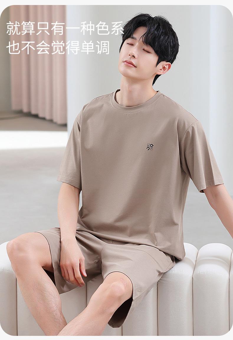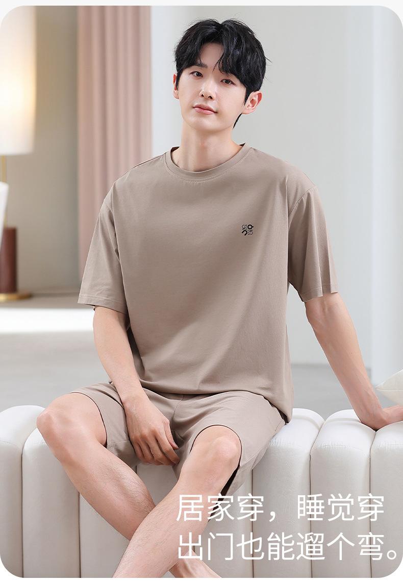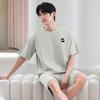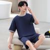 Pijama de Verano de Algodón Puro para Hombre de Manga Corta y Pantalón Corto Estilo Delgado para Usar Afuera Talla Grande Holgado Color Puro Estilo Casual Conjunto para Estar en Casa