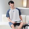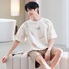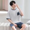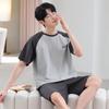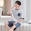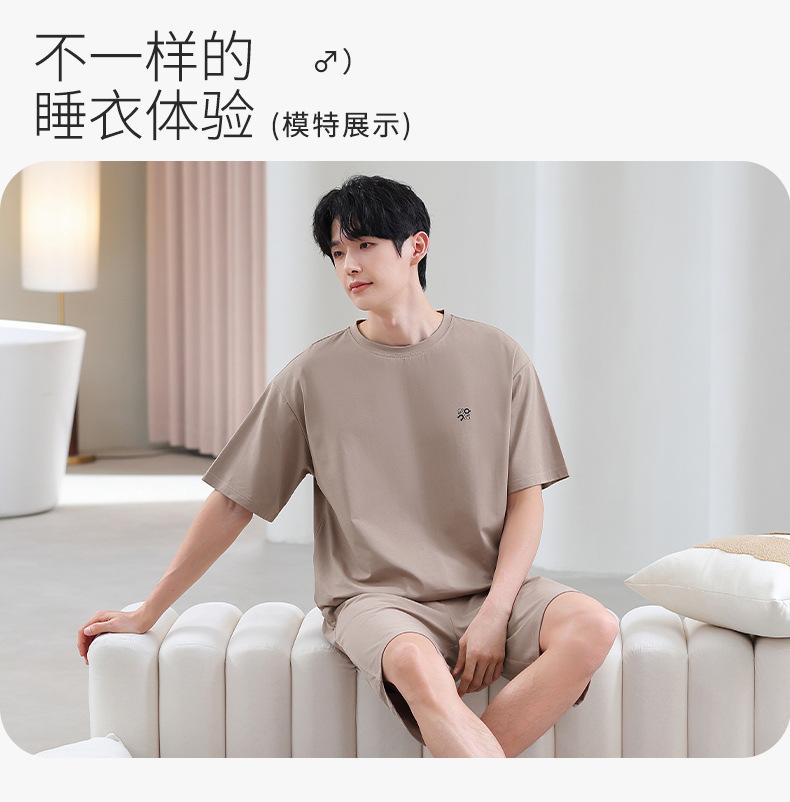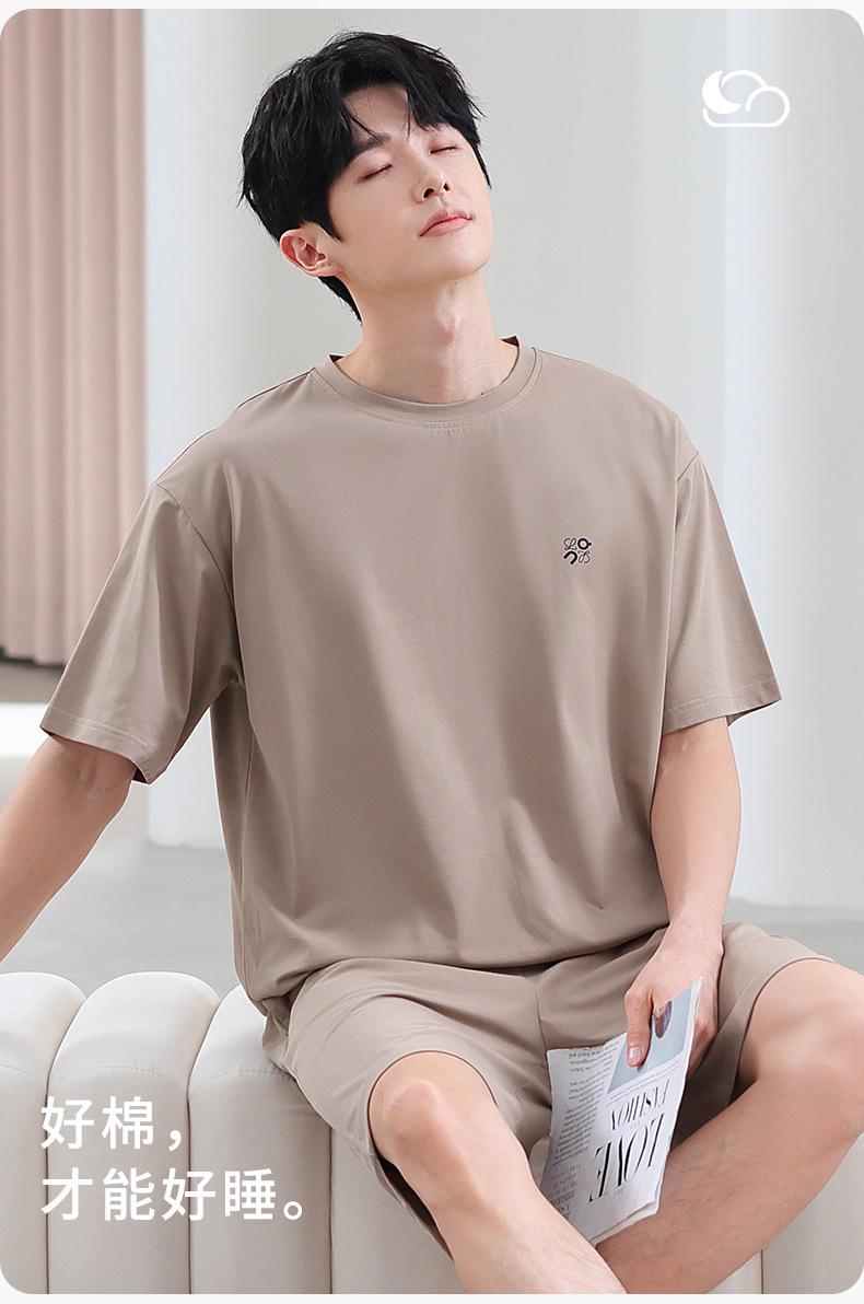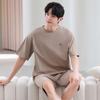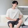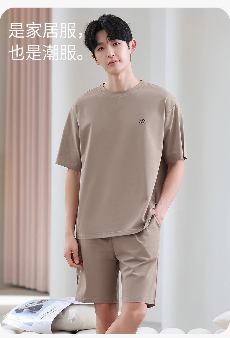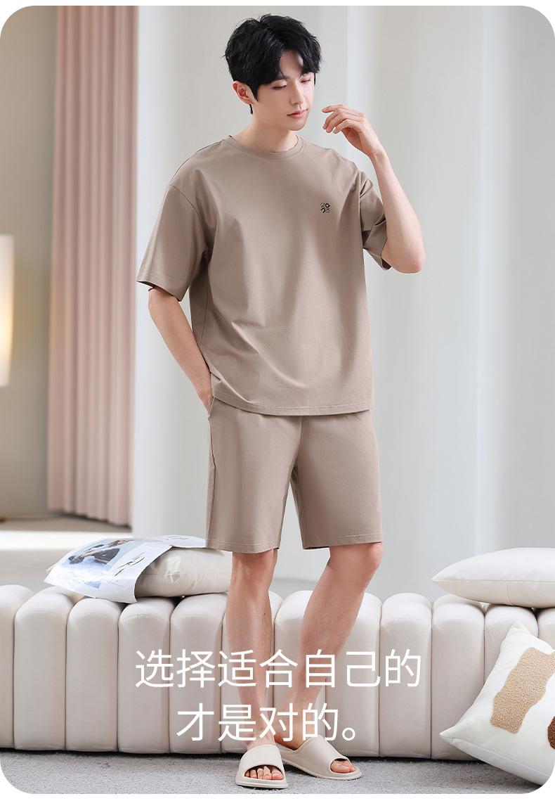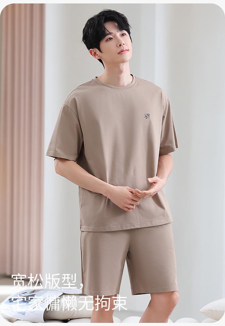 Pijama de Verano de Algodón Puro para Hombre de Manga Corta y Pantalón Corto Estilo Delgado para Usar Afuera Talla Grande Holgado Color Puro Estilo Casual Conjunto para Estar en Casa