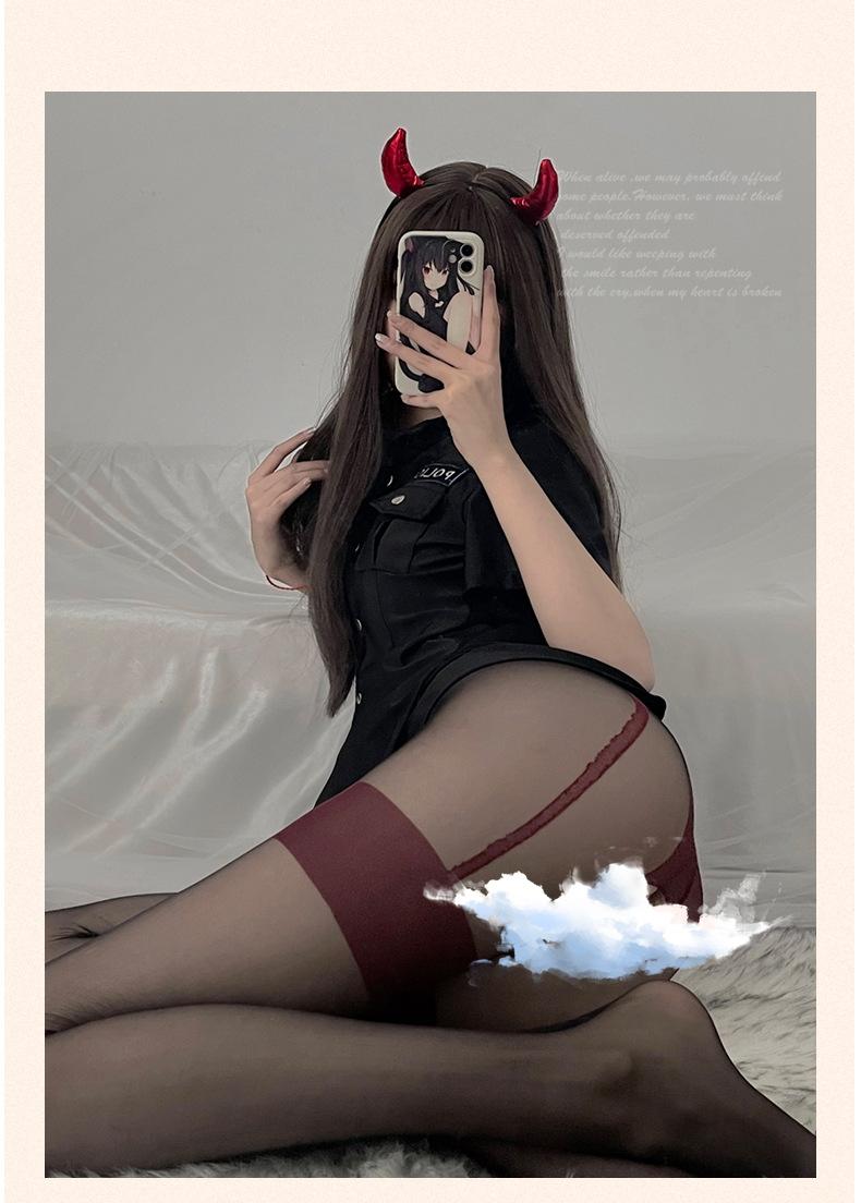 Medias de Lencería Sexy para Mujer Sexy de Entrepierna Abierta Tentación Gratis Off Erótico Medias de Seda Negra Medias con Liguero Falso Ropa A37
