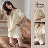 Pijamas de Algodón para Mujer Verano Estilo Dulce de Princesa Suelto Casual Sencillo Lindo Verano Delgadas Conjunto para Estar en Casa