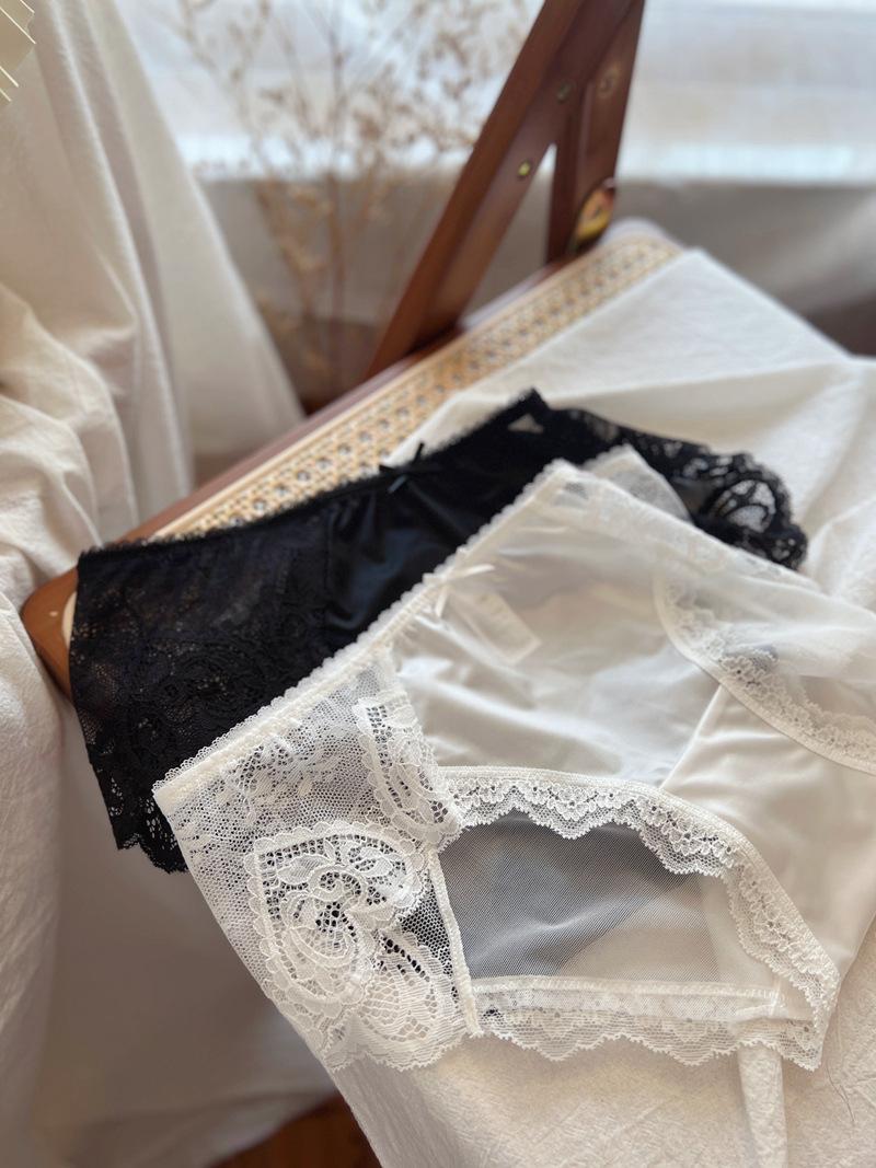 Diosa de malla sexy pura Fan encaje de alta calidad ropa interior para niña/color sólido blanco y negro damas transpirable entrepierna de algodón fino