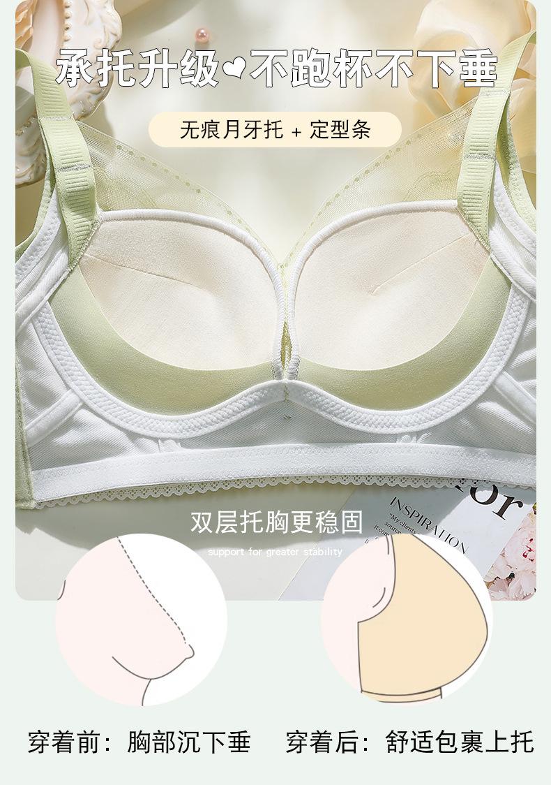 Ropa Interior Modal para Mujer Encaje Sin Aro de Acero Recolección Sujetador Ajustable Transpirable Ropa Interior de Mantenimiento Sujetador Cero Ataduras