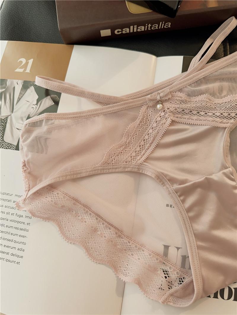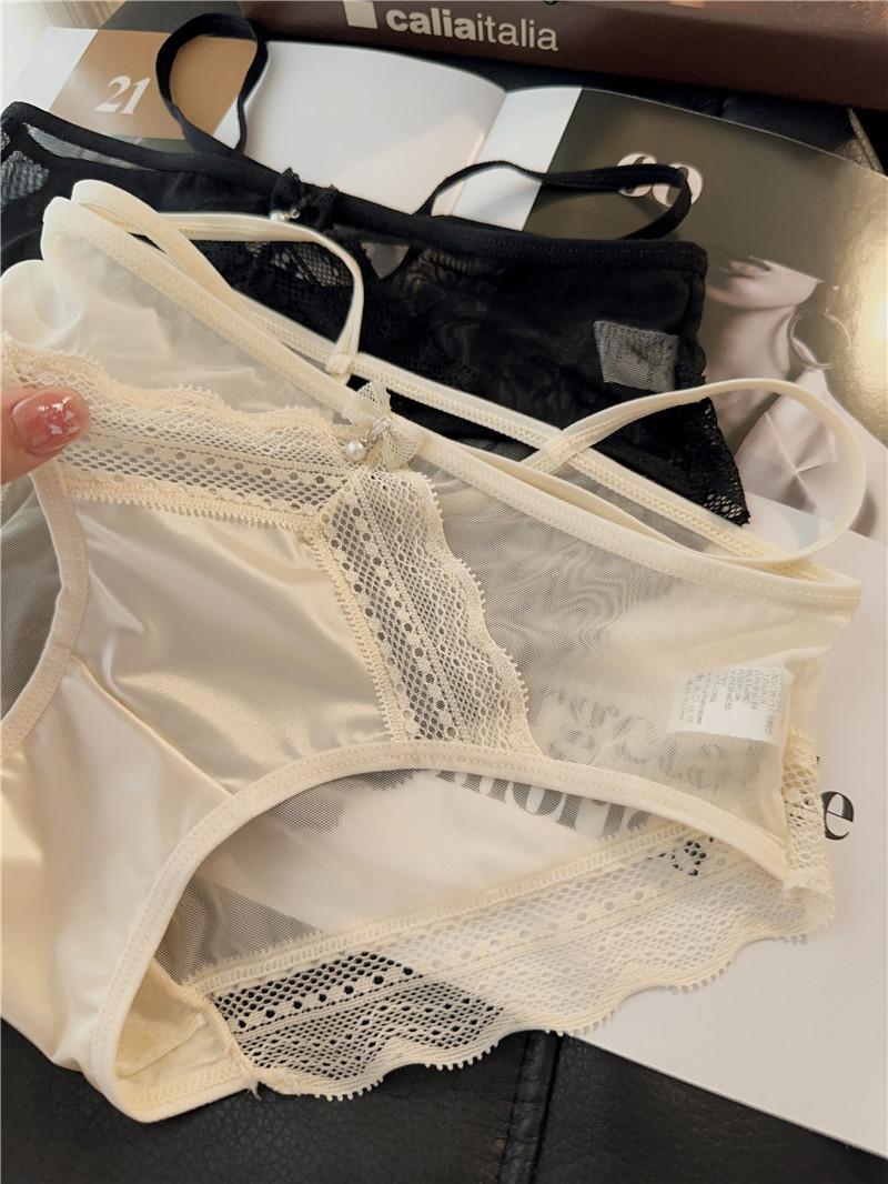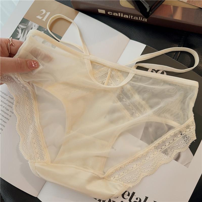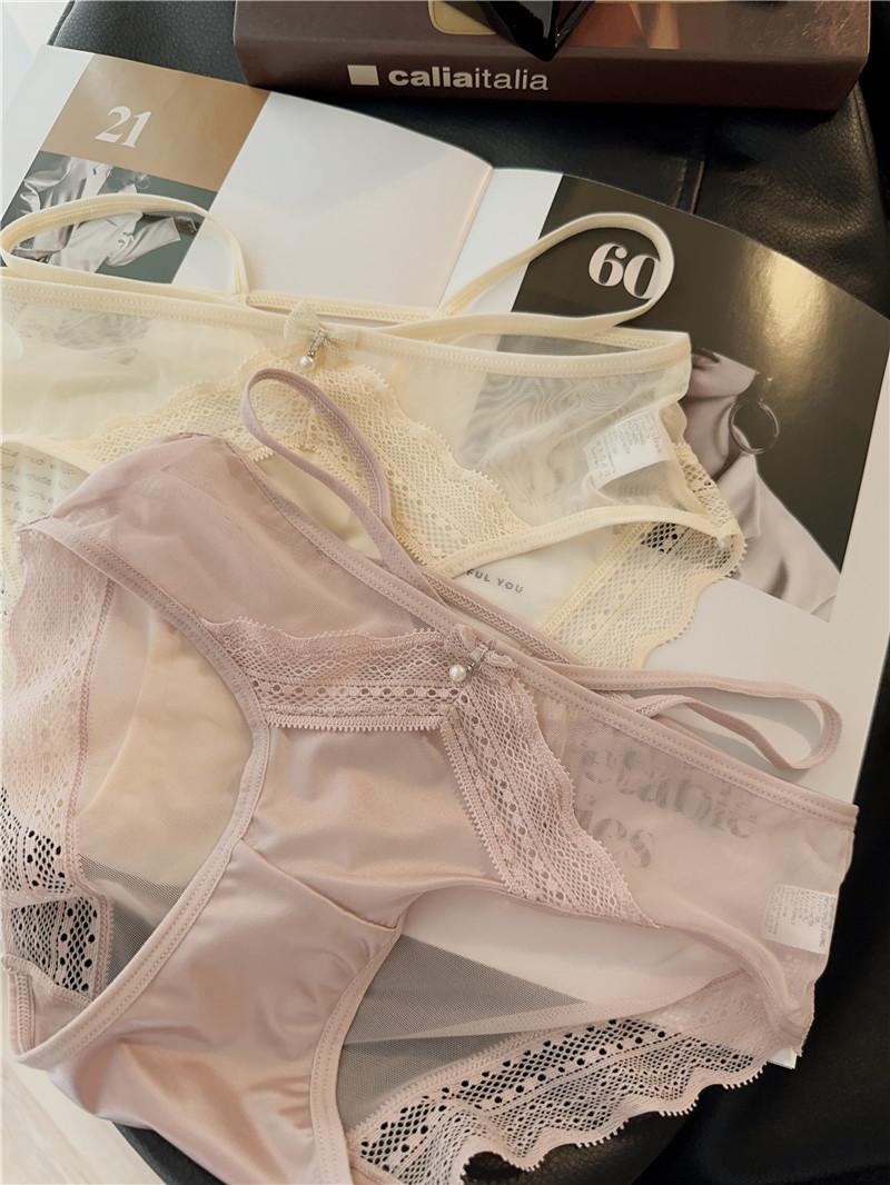 Ropa interior femenina estilo Pure Desire, transpirable, sexy, sin marcas, de cintura media, estilo japonés, con realce de cadera y encaje.