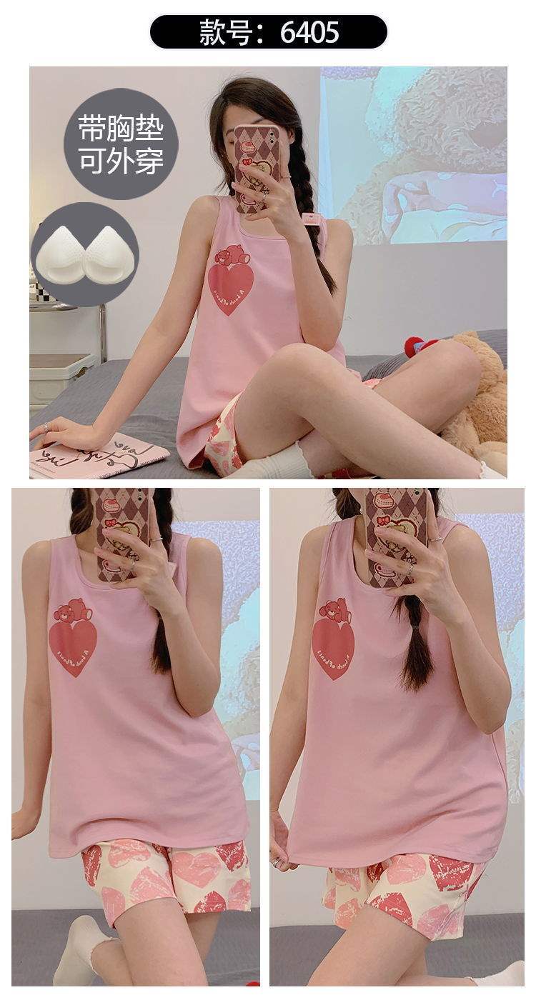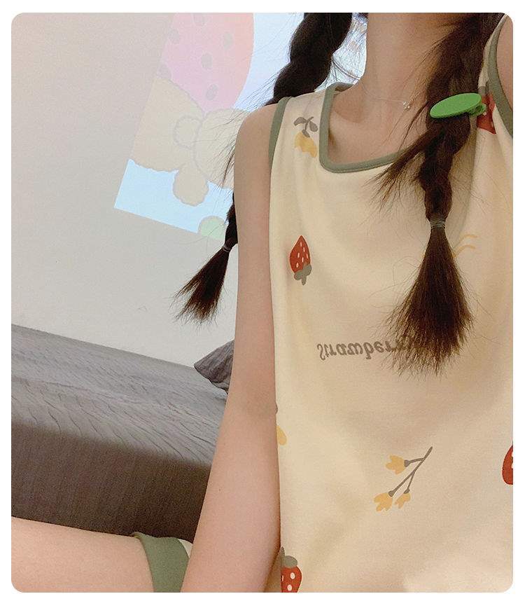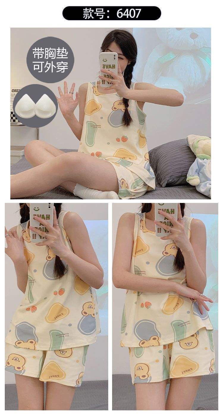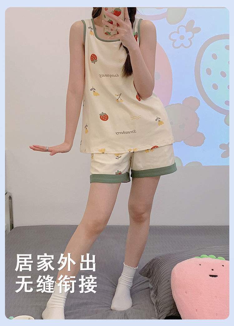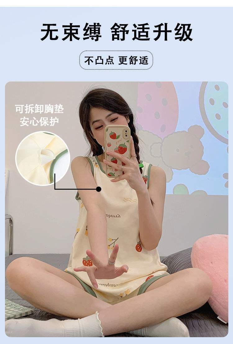 Pijama de Verano para Mujer Algodón Puro Fino Chaleco sin Mangas Shorts con Almohadilla en el Pecho Estilo Coreano Holgado Ropa para el Hogar Conjunto de Dos Piezas