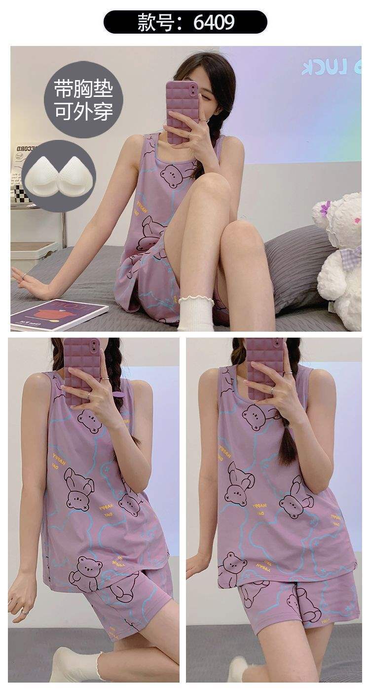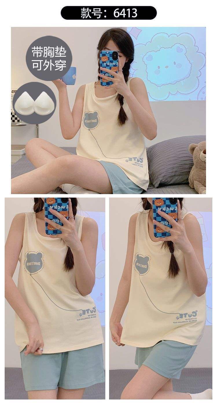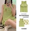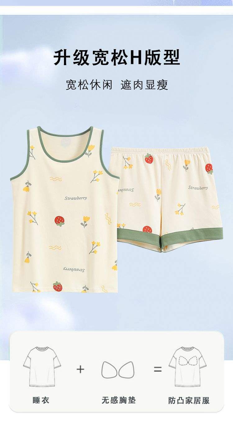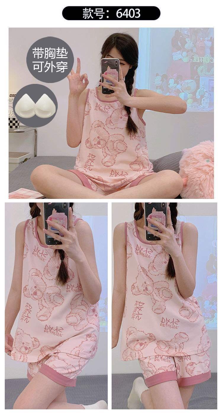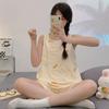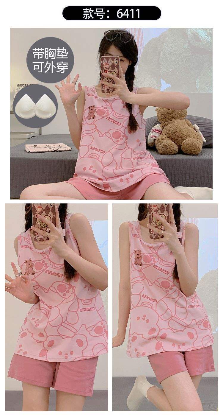 Pijama de Verano para Mujer Algodón Puro Fino Chaleco sin Mangas Shorts con Almohadilla en el Pecho Estilo Coreano Holgado Ropa para el Hogar Conjunto de Dos Piezas