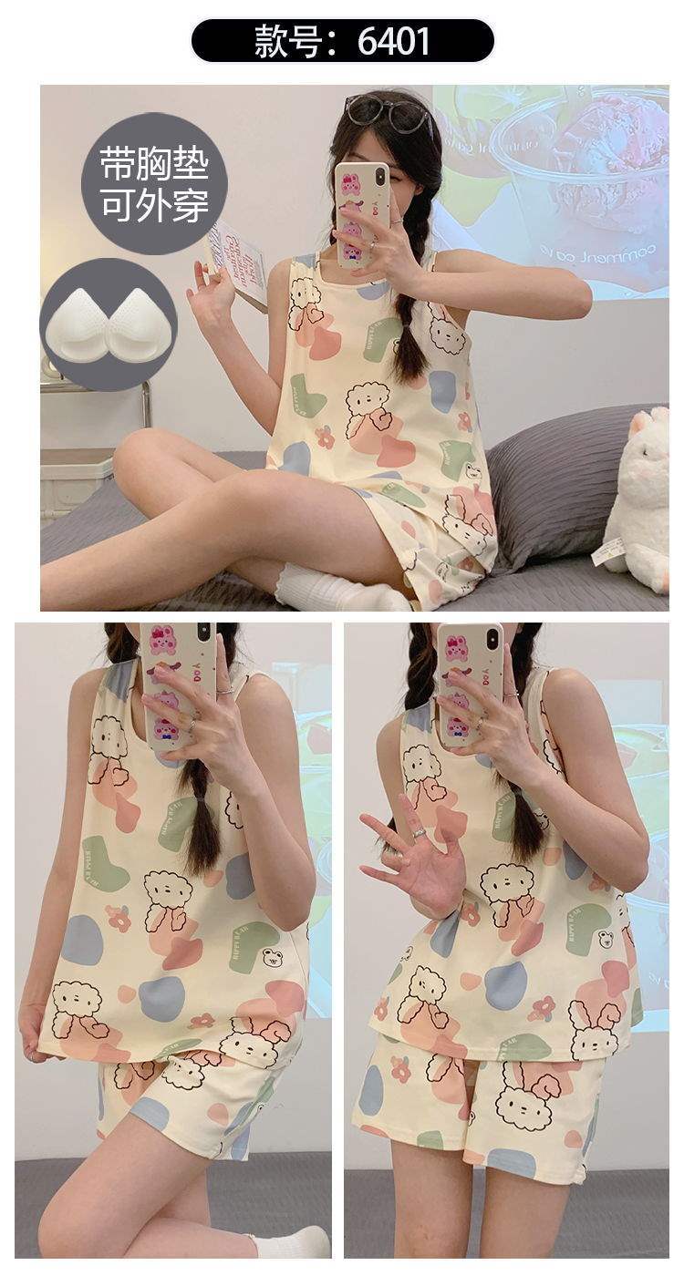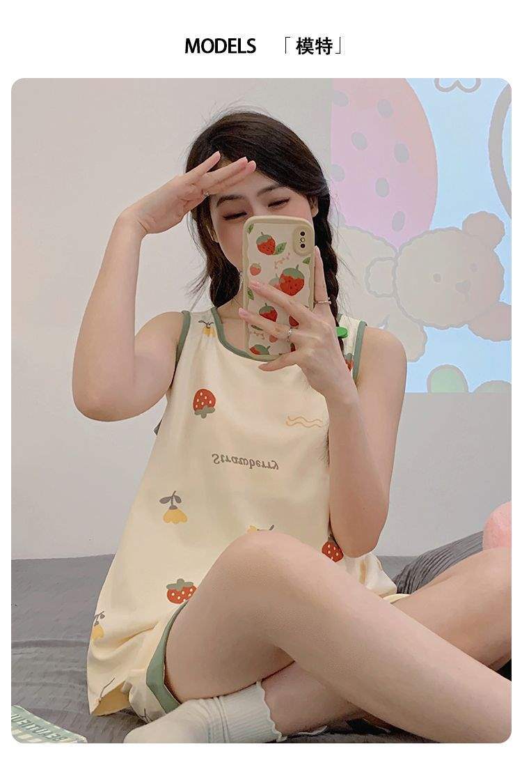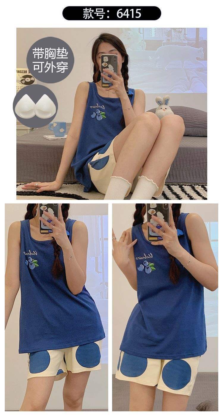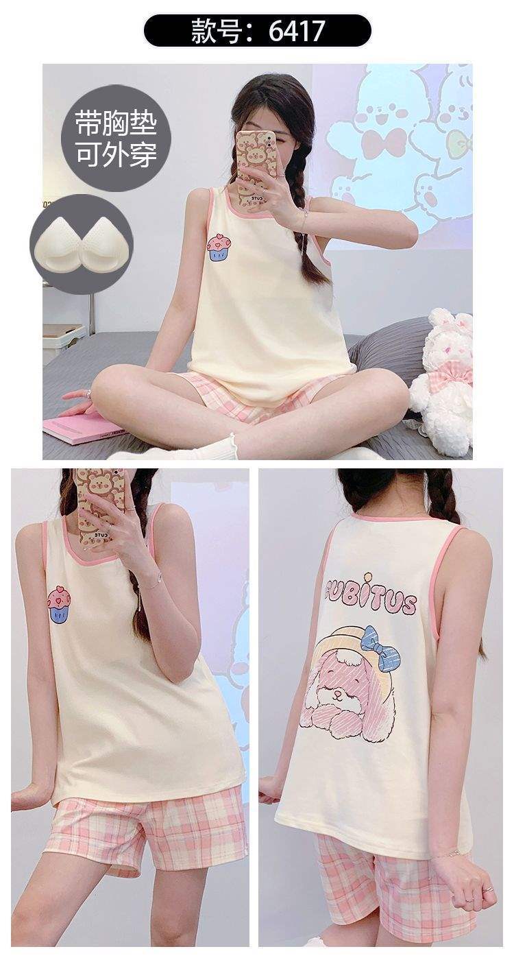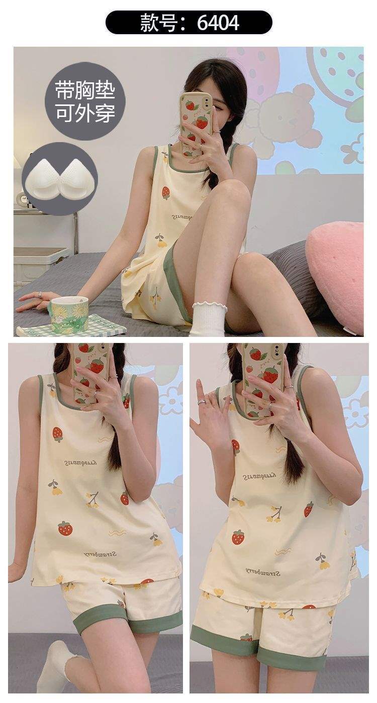 Pijama de Verano para Mujer Algodón Puro Fino Chaleco sin Mangas Shorts con Almohadilla en el Pecho Estilo Coreano Holgado Ropa para el Hogar Conjunto de Dos Piezas