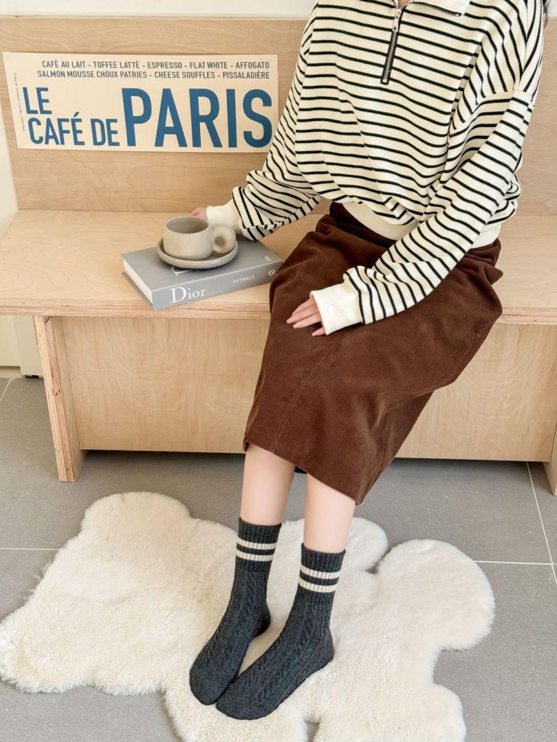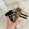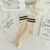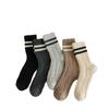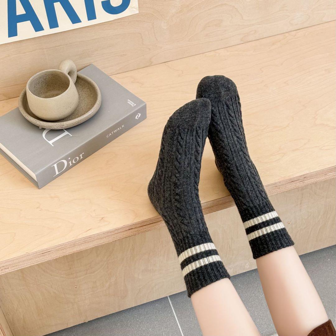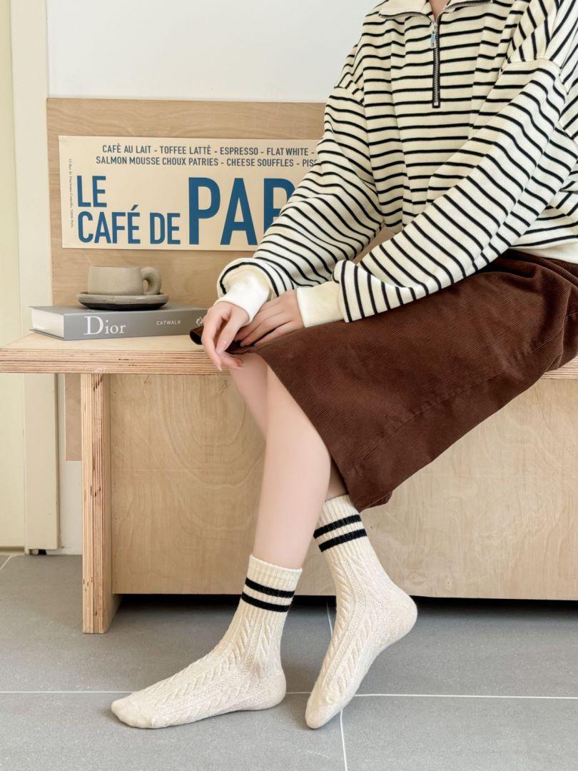 Calcetines de lana trenzada para mujer otoño e invierno gruesos cálidos japoneses a rayas barras paralelas calcetines de largo medio pantorrilla vintage cachemira calcetines de felpa