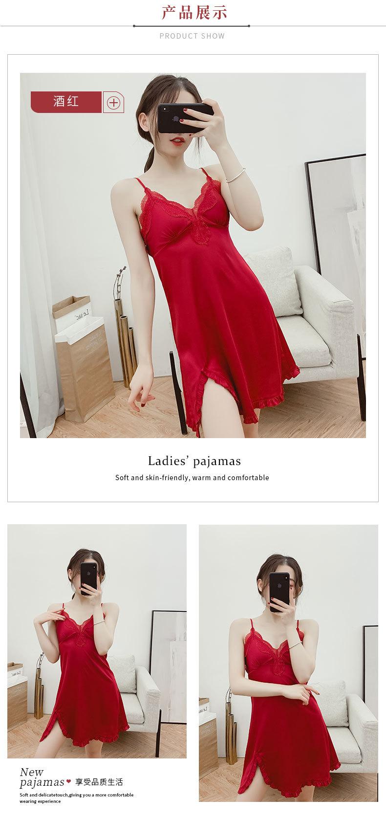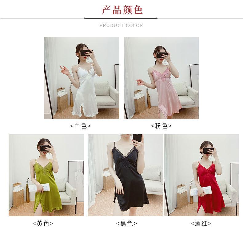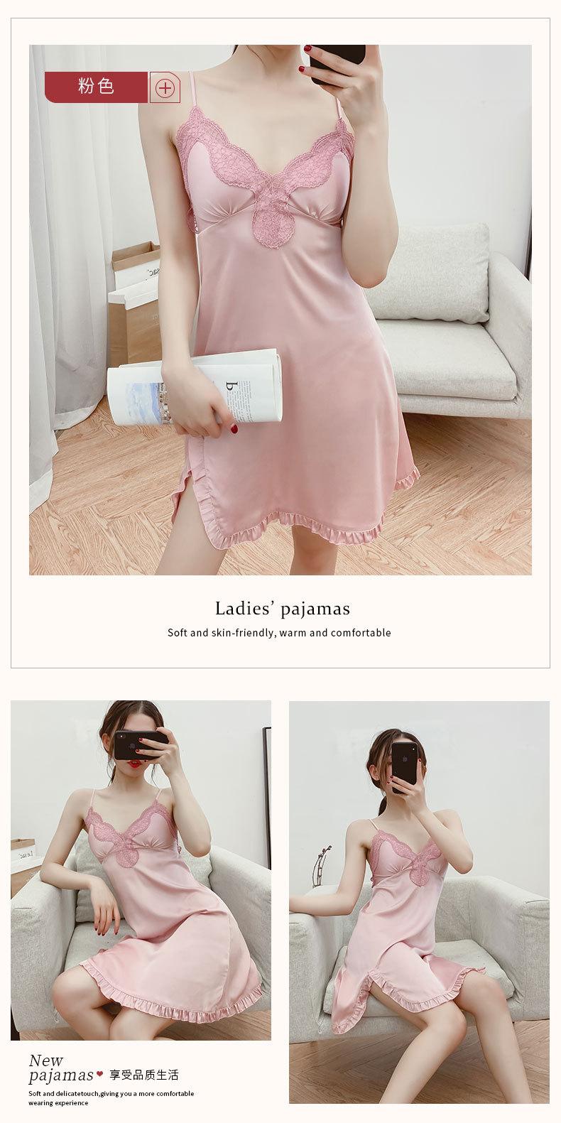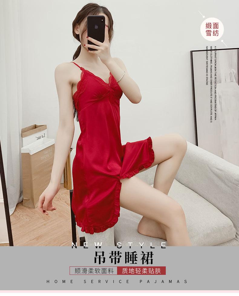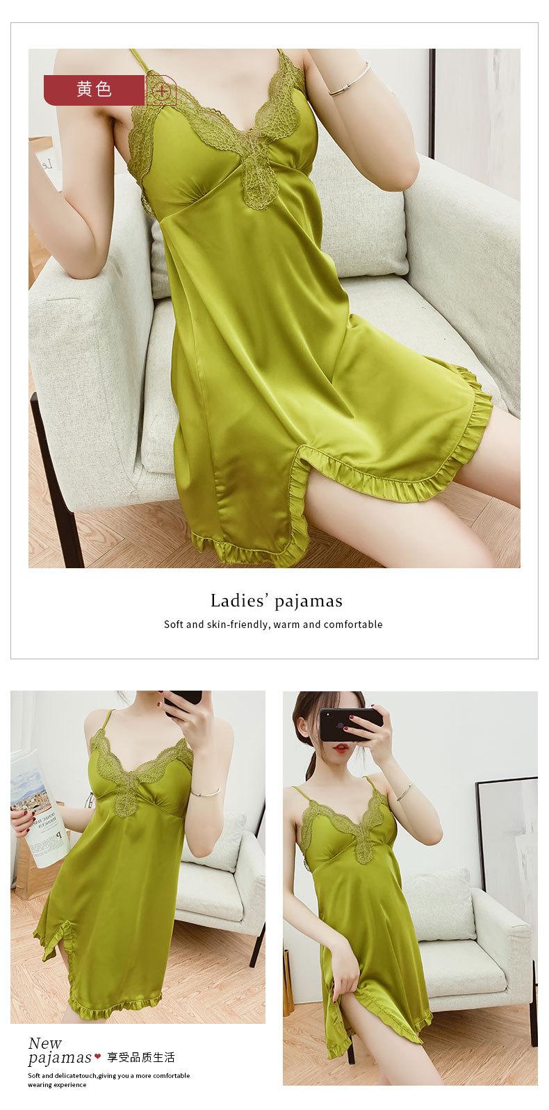 Nuevo Ropa de Casa Sexy con Tirantes de Satén Chifón para Mujer, Varios Colores Disponibles, Sencillo, Fresco y Transpirable Falda con Tirantes de Manga Larga